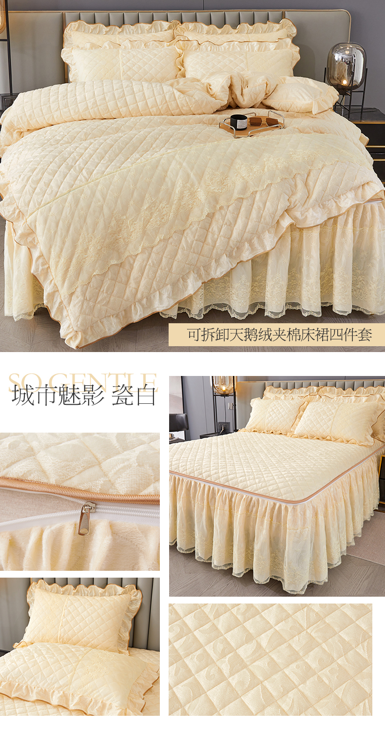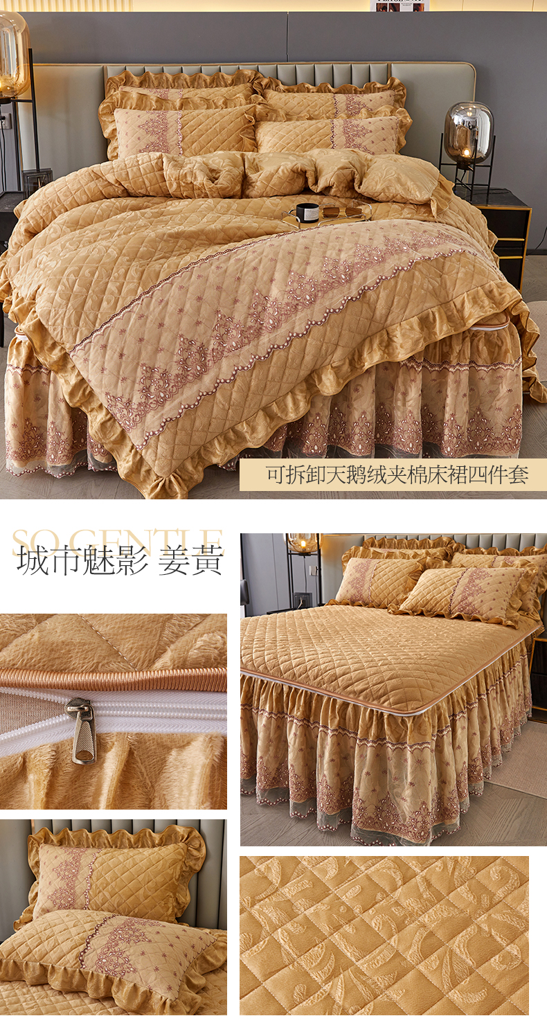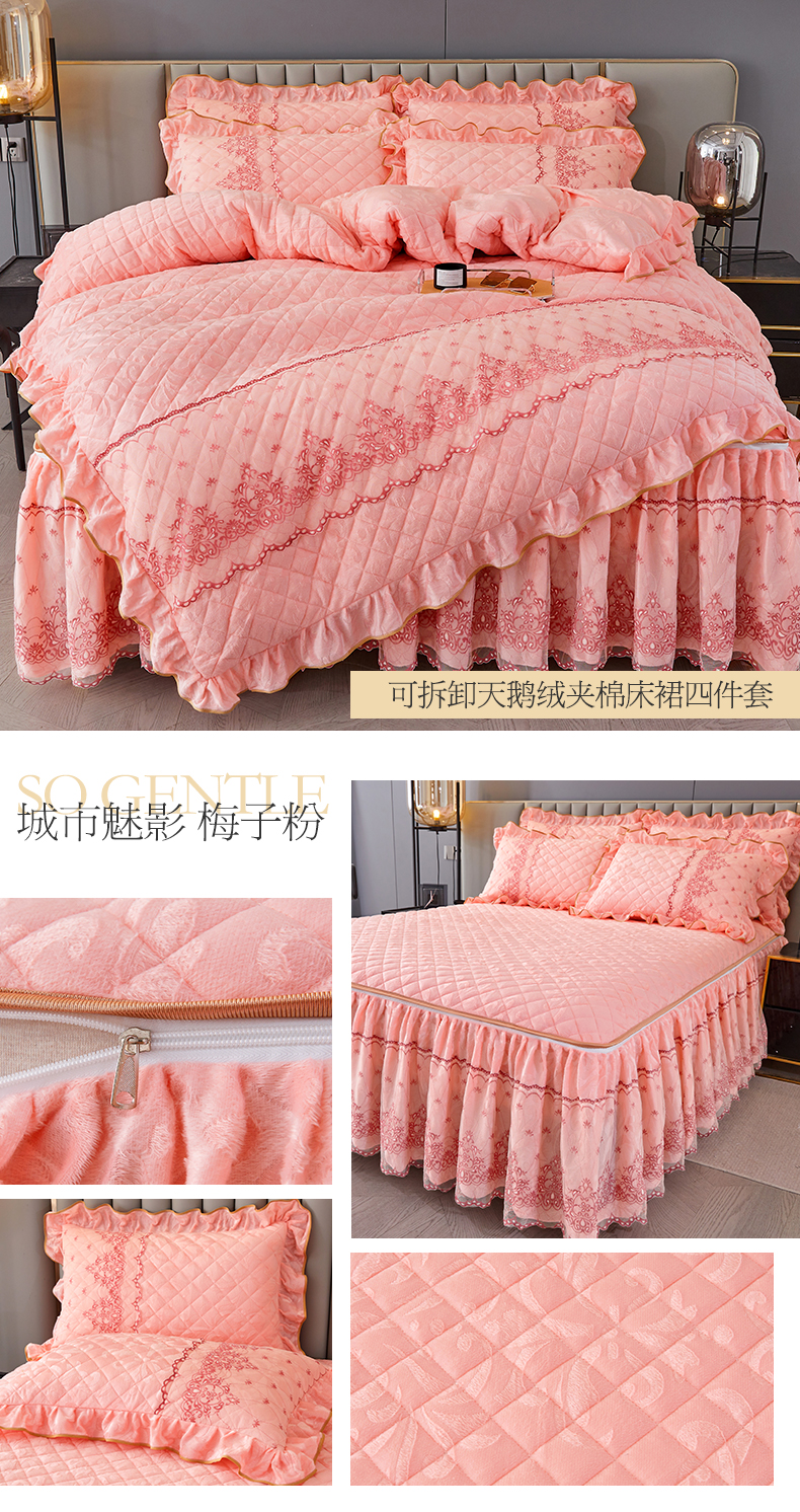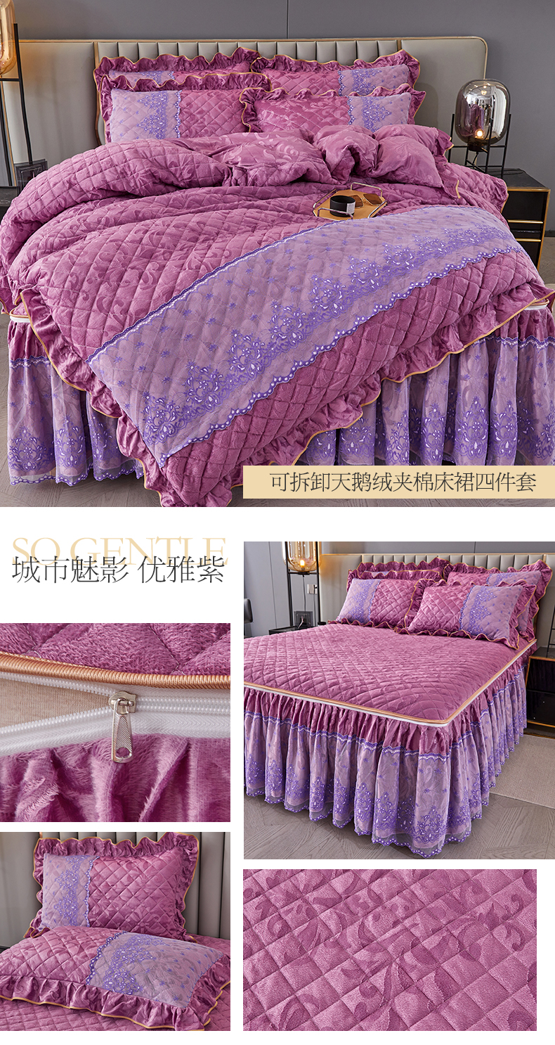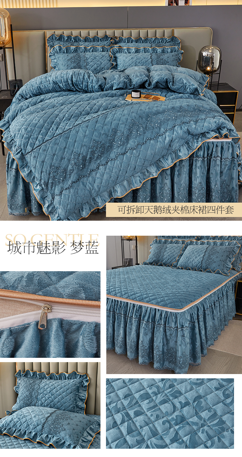 (总)网红馆 2025新款可拆卸天鹅绒夹棉床裙四件套-城市魅影