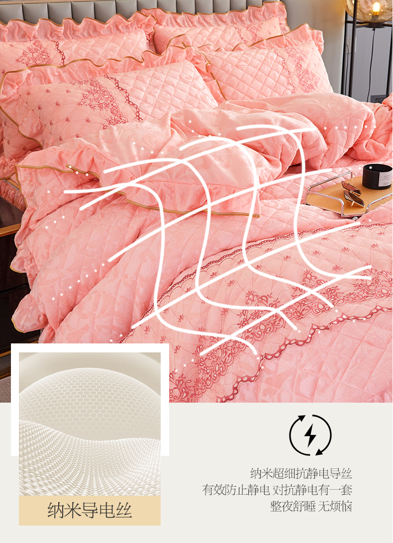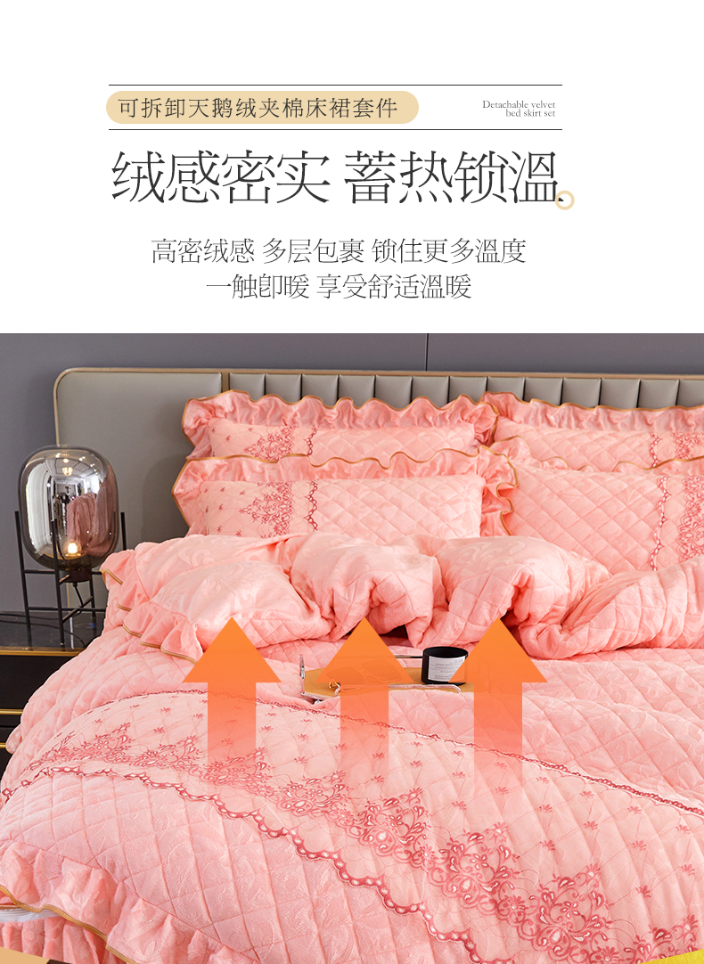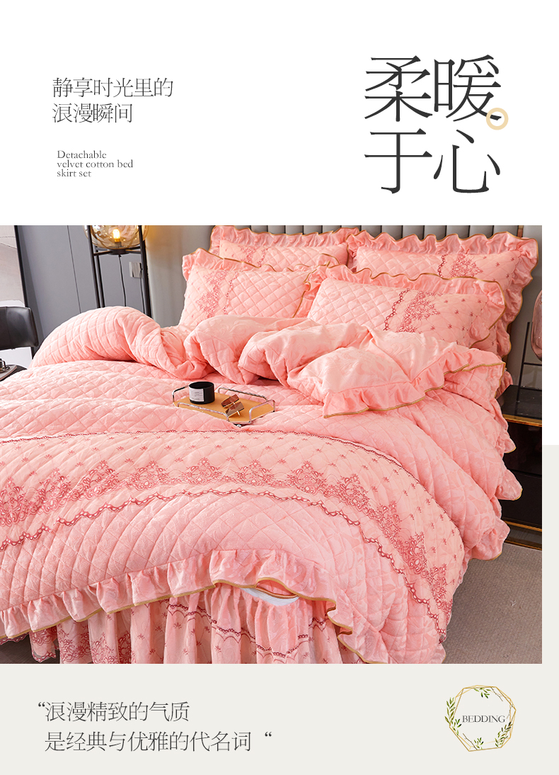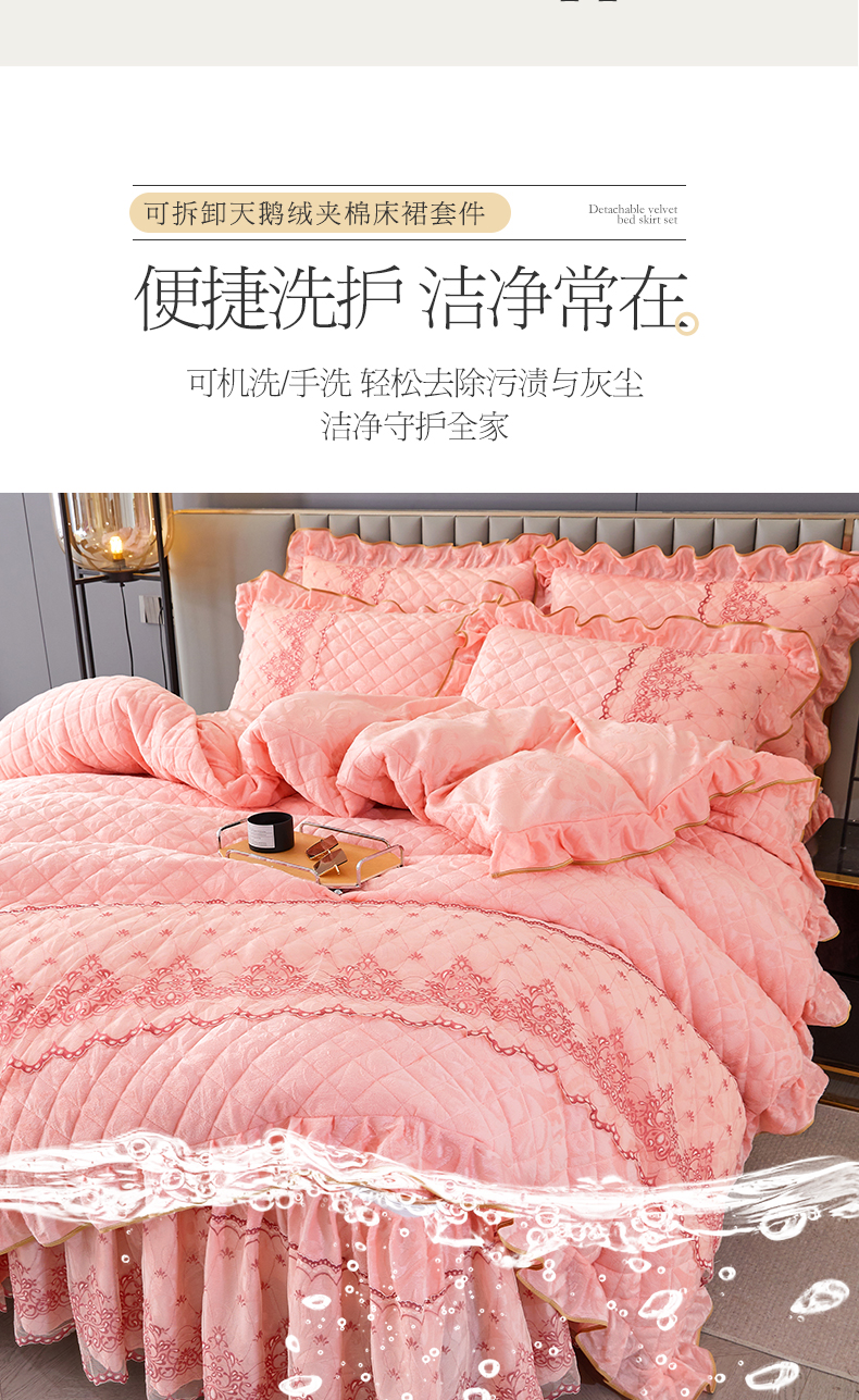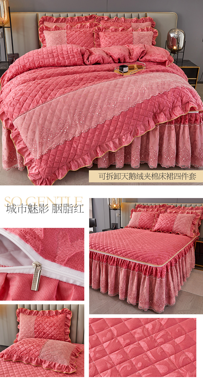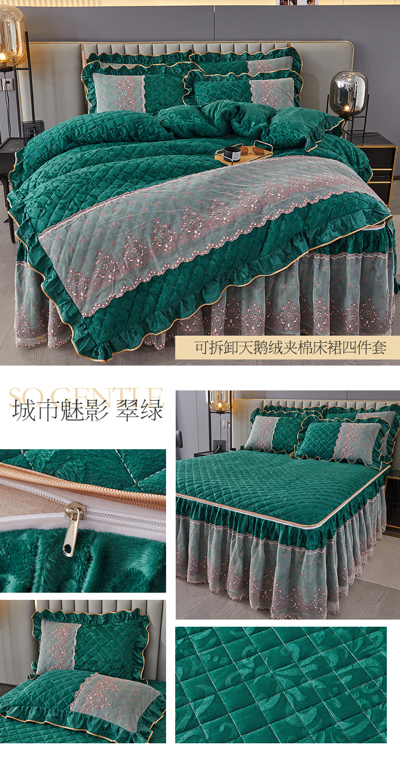 (总)网红馆 2025新款可拆卸天鹅绒夹棉床裙四件套-城市魅影
