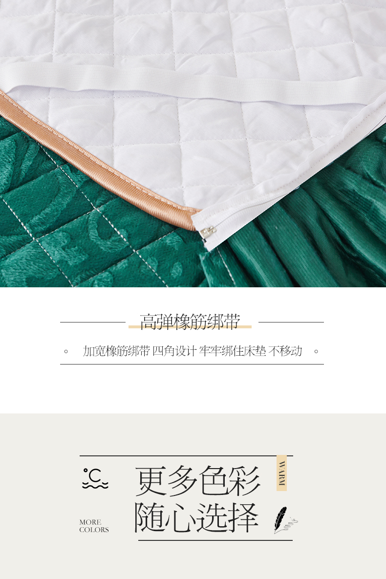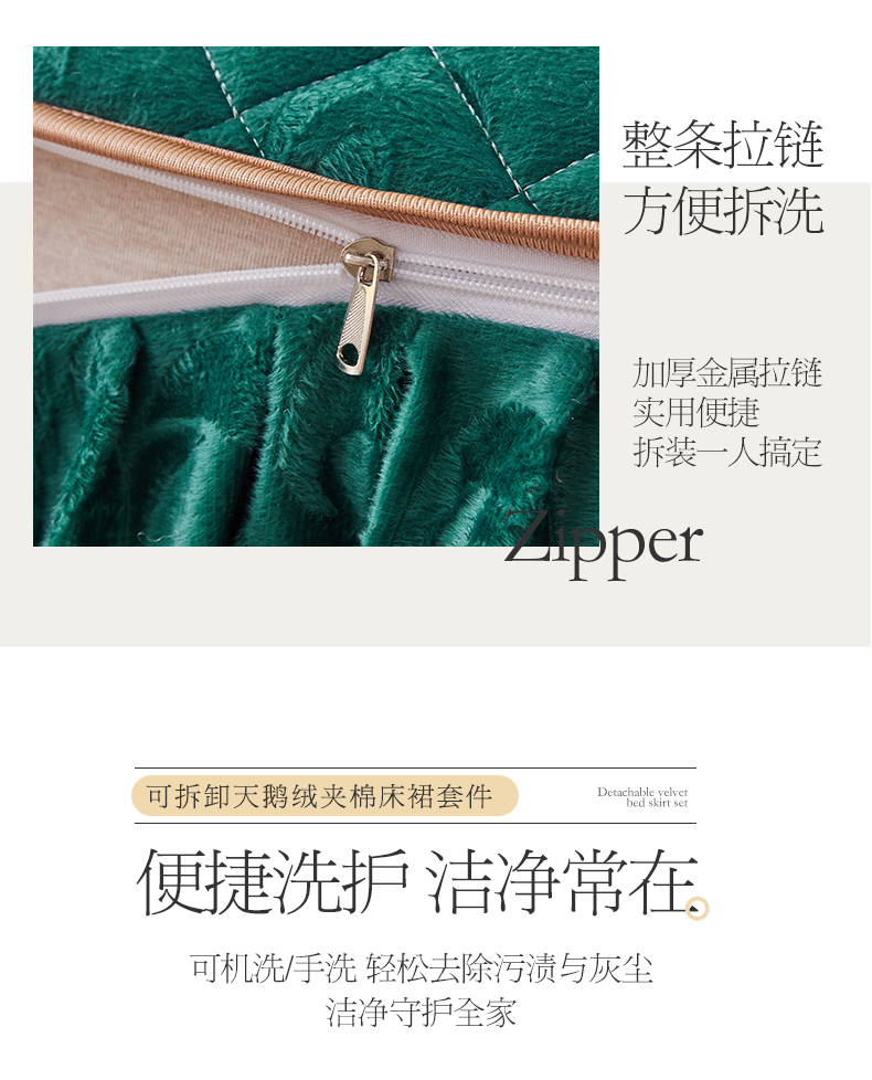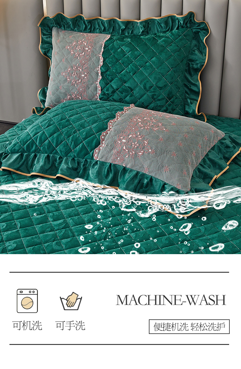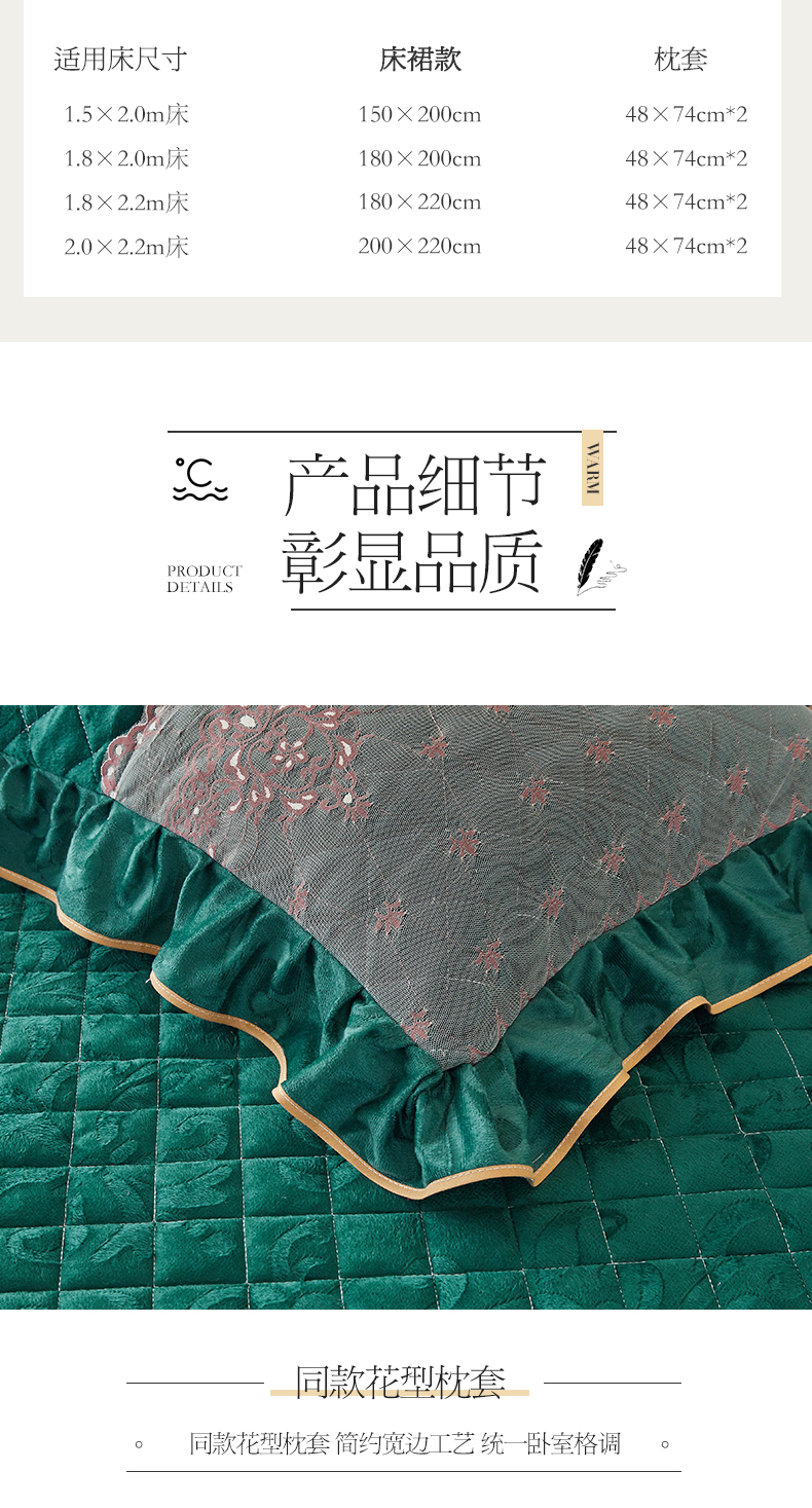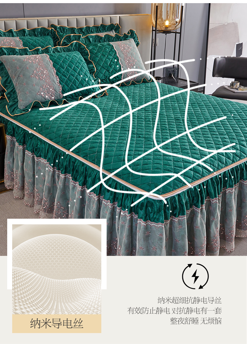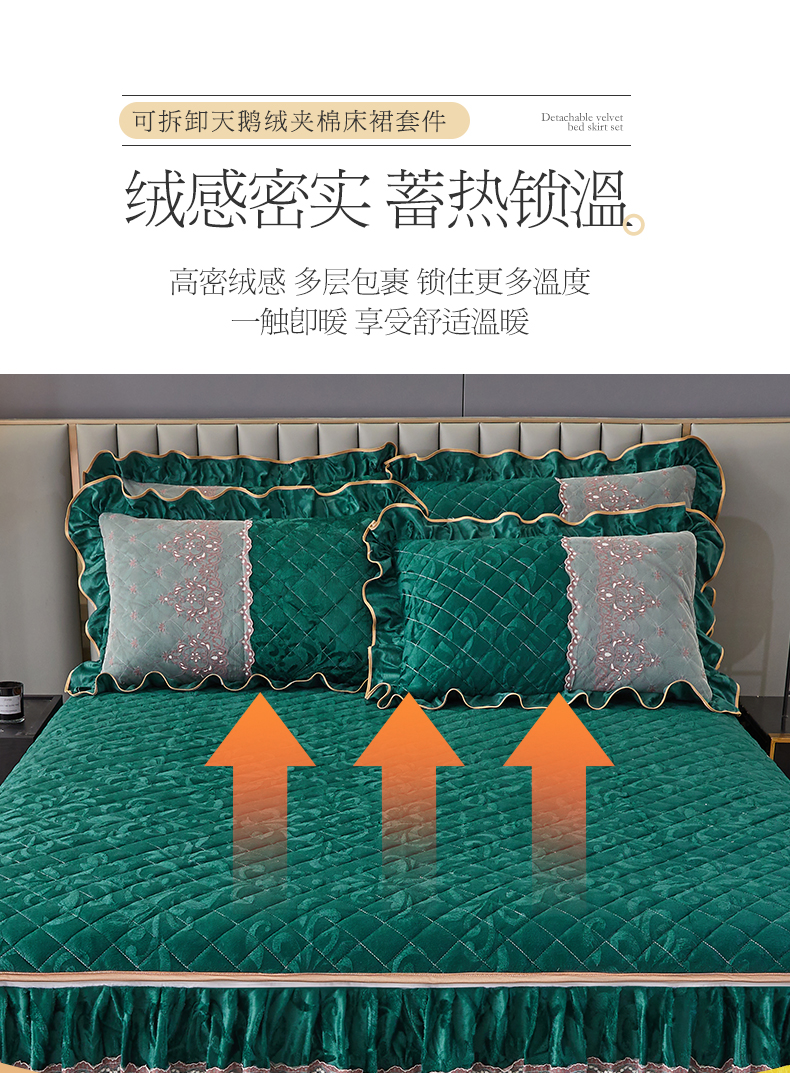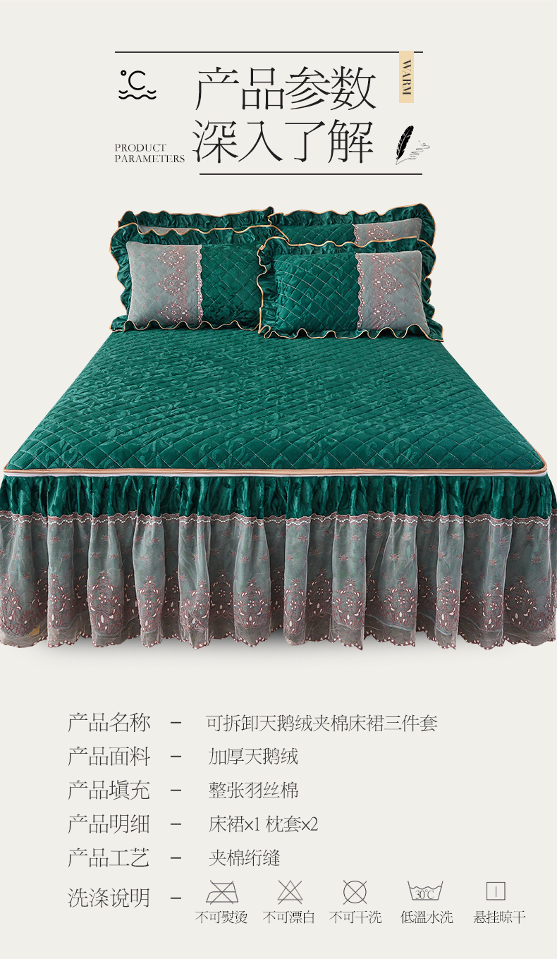 商品名称:网红馆 2025新款可拆卸天鹅绒夹棉床裙三件套-城市魅影 城市魅影 翠绿