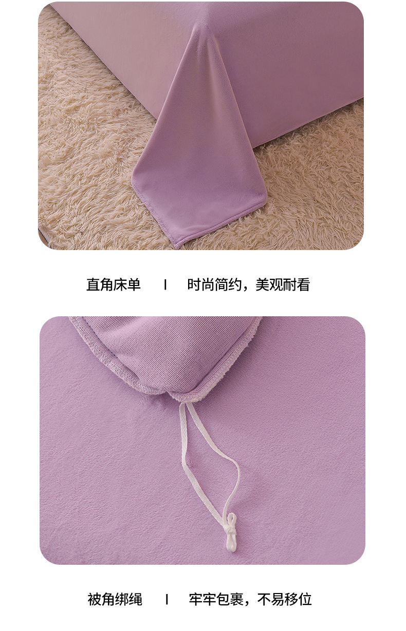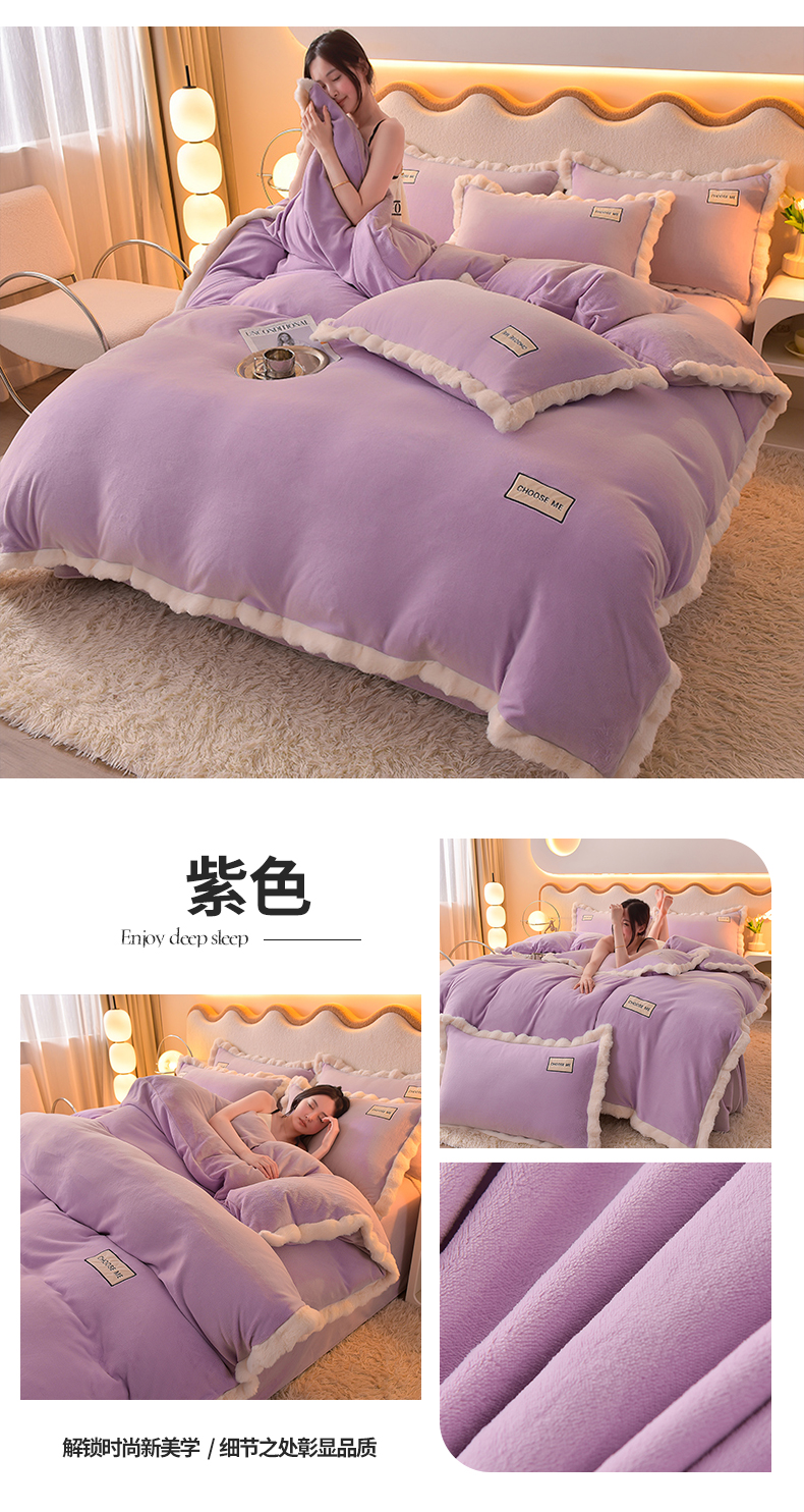 商品名称:米奈家居 2025新款A类高克重牛奶绒四件套-卡洛琳 丁香紫