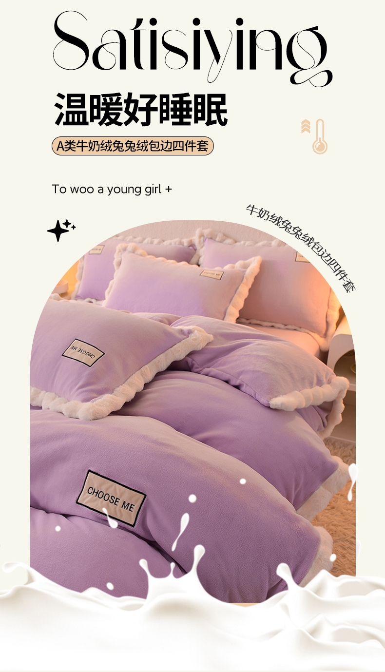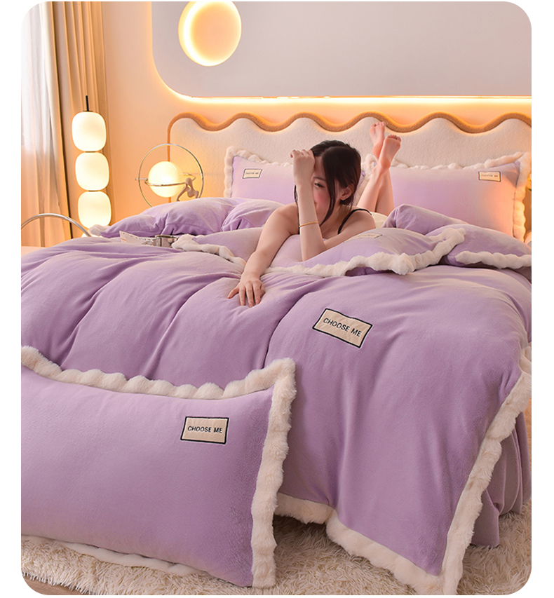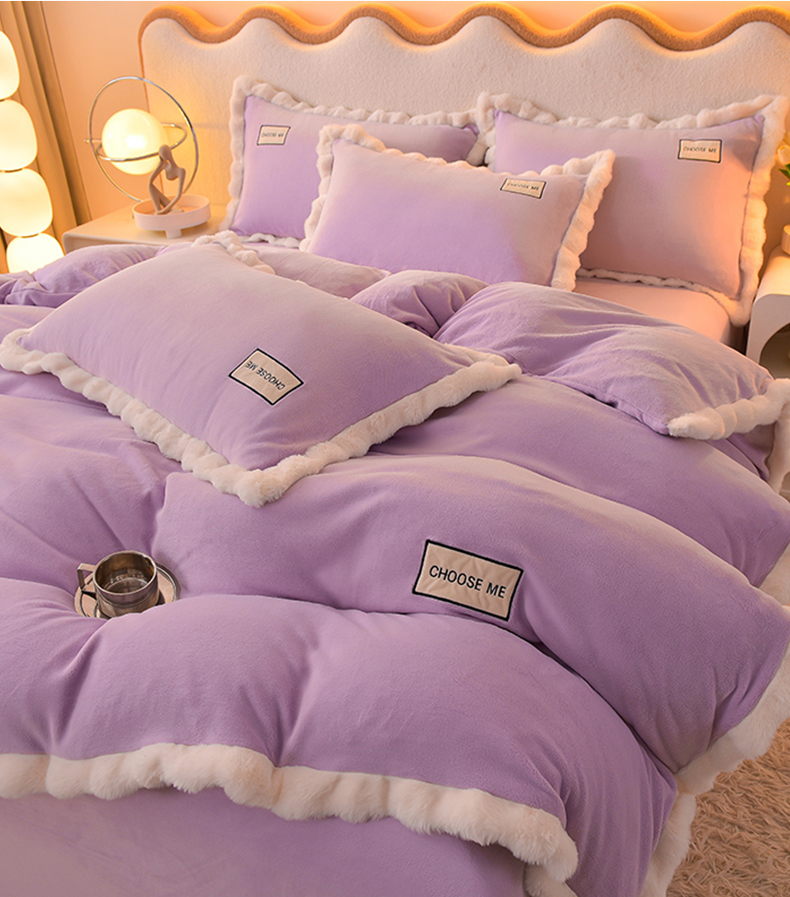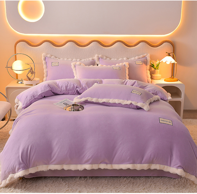 米奈家居 2025新款A类高克重牛奶绒四件套-卡洛琳 丁香紫