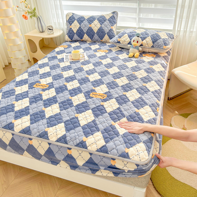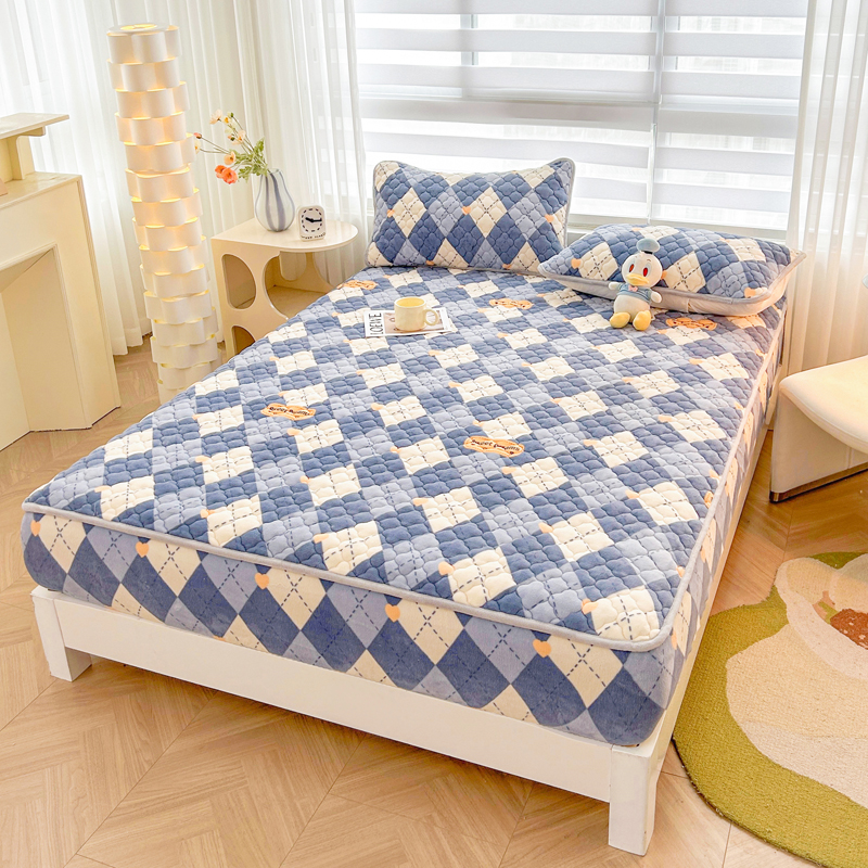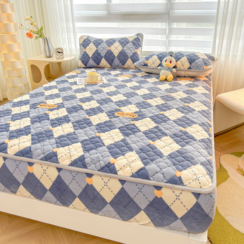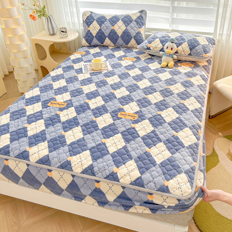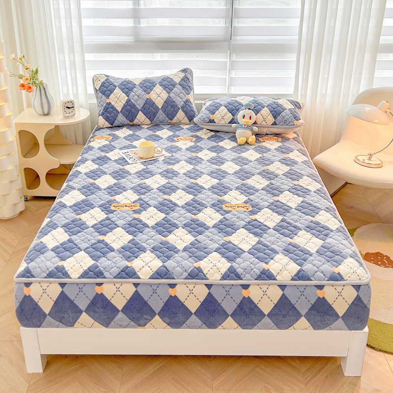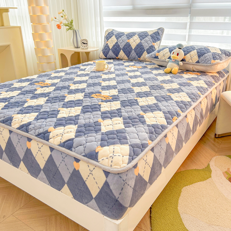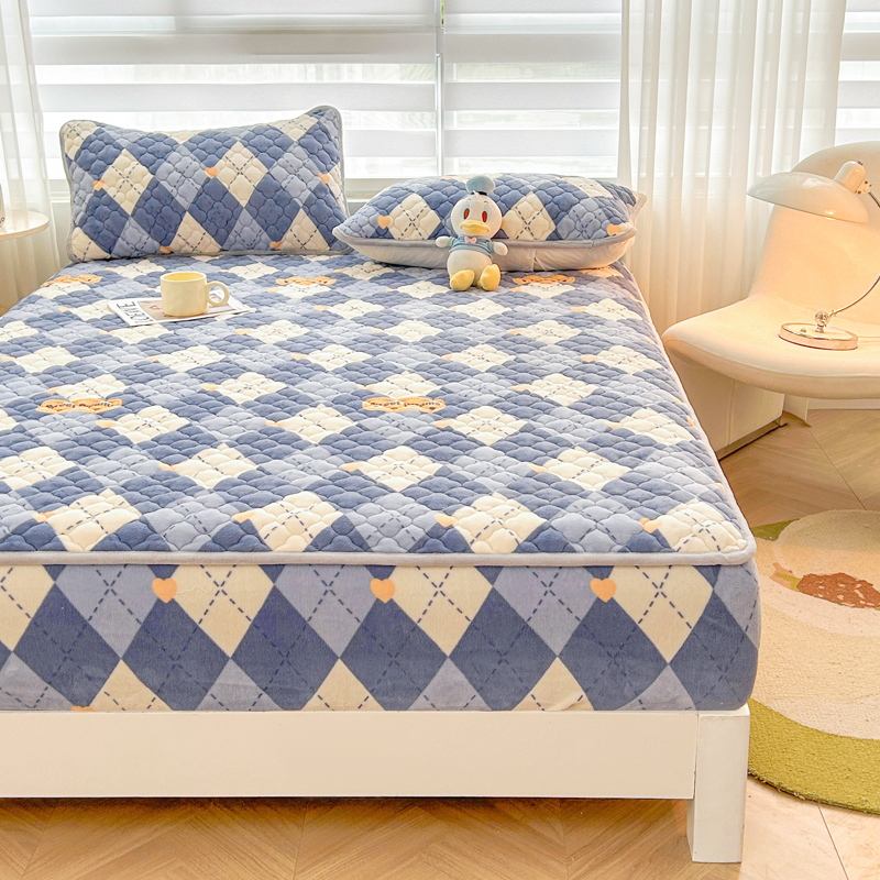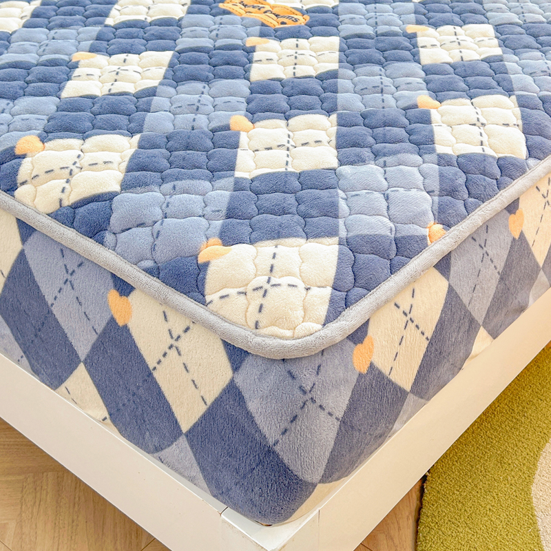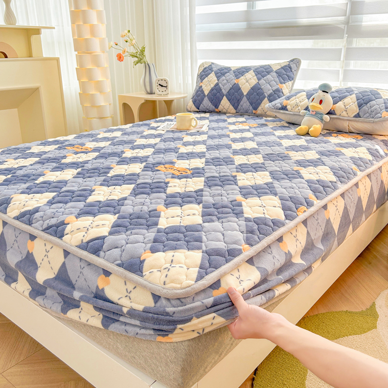 商品名称:梵朴 2023新款牛奶绒夹棉床笠 英伦时光