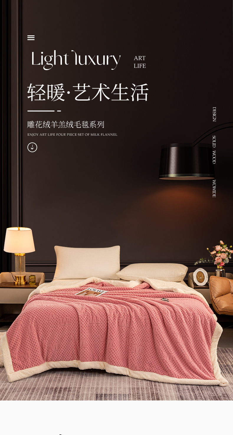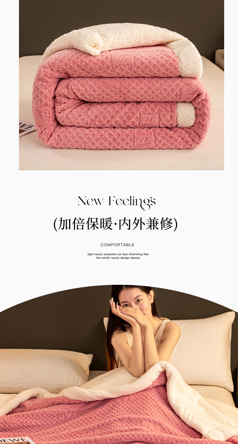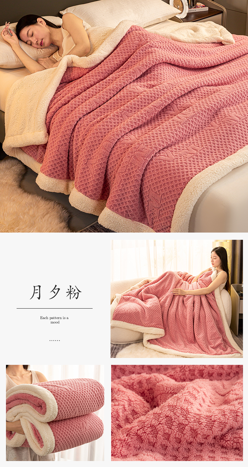 商品名称:慕木家纺 2025新款爆款加厚AB版提花雕花绒羊羔绒毛毯 豆沙粉