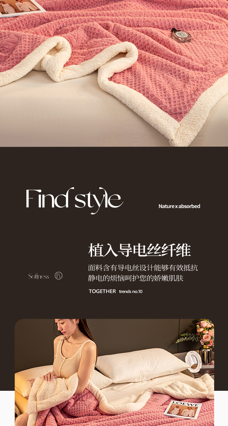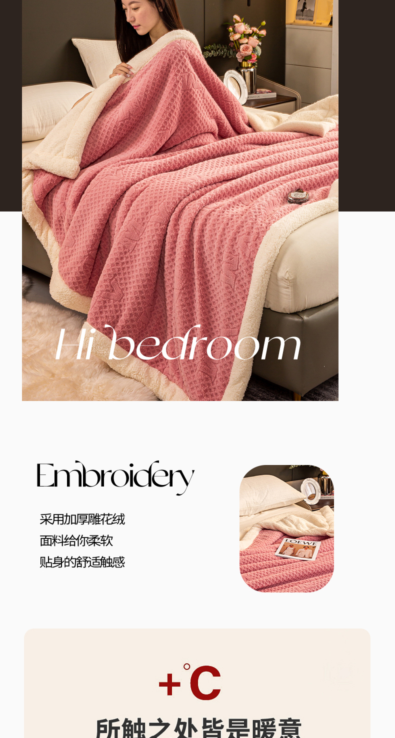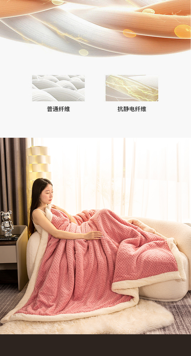 商品名称:慕木家纺 2025新款爆款加厚AB版提花雕花绒羊羔绒毛毯 豆沙粉