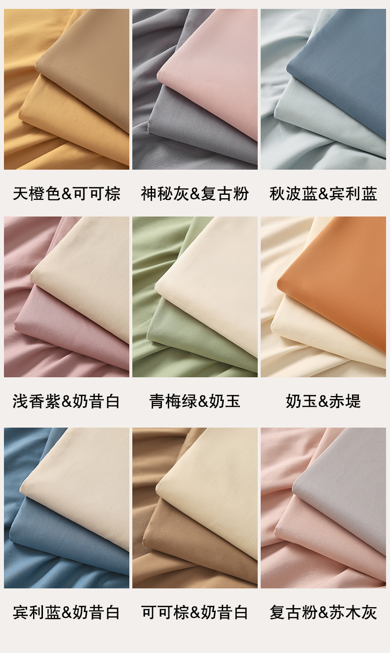 (总)云栖家居 2023A类长绒棉纯色单床单,黑加仑,鲸鱼蓝,落日橙,落叶黄,棉花糖色,莫兰迪粉,青灰色,赛琳绿,天空灰,威尼斯蓝