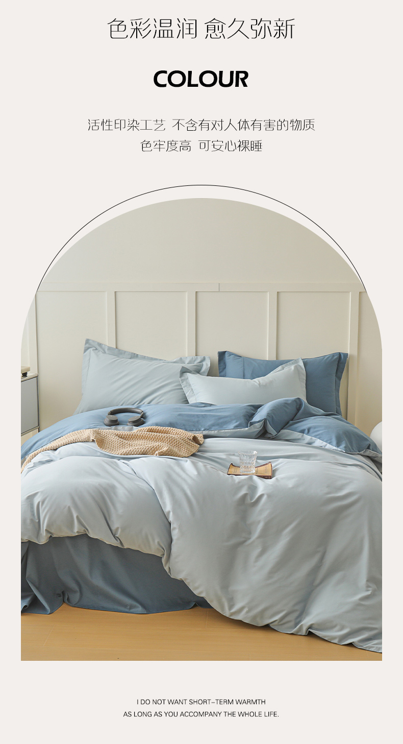 2023A类纯色纯棉磨毛单被套 秋波蓝+宾利蓝