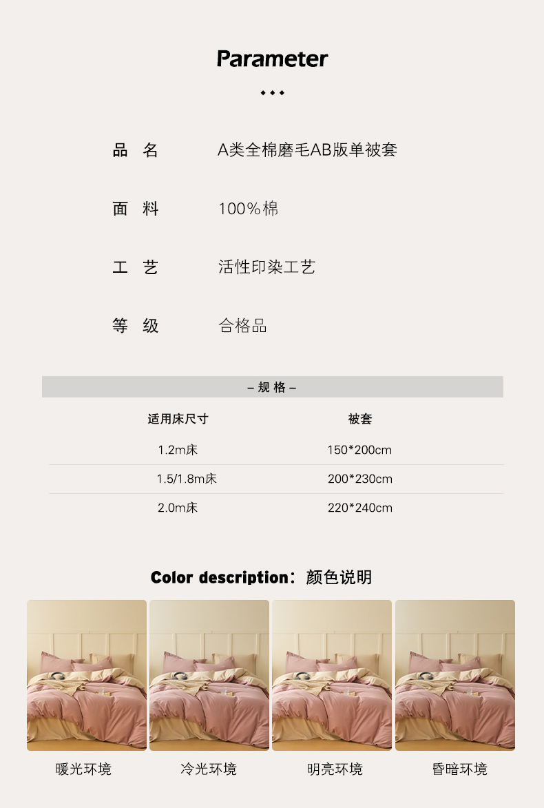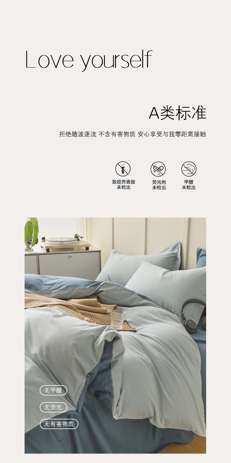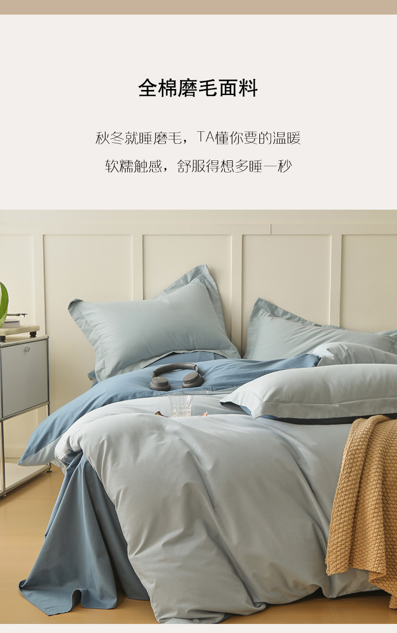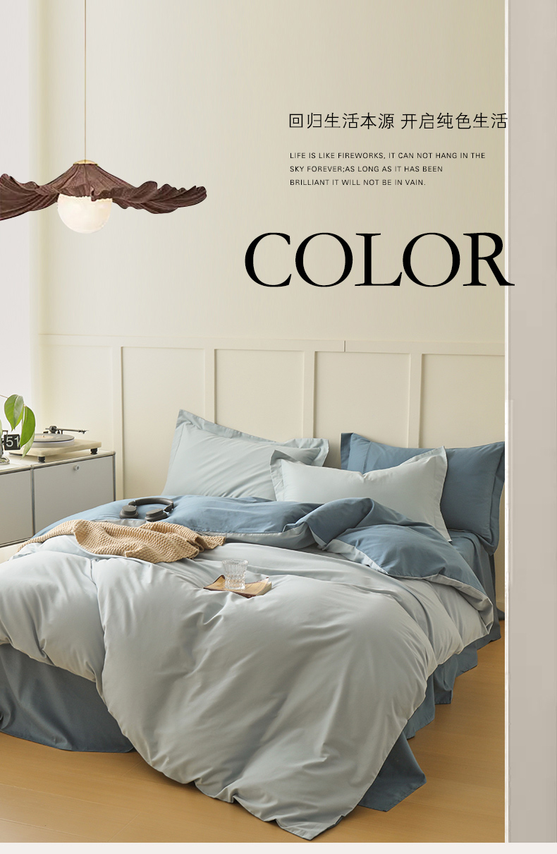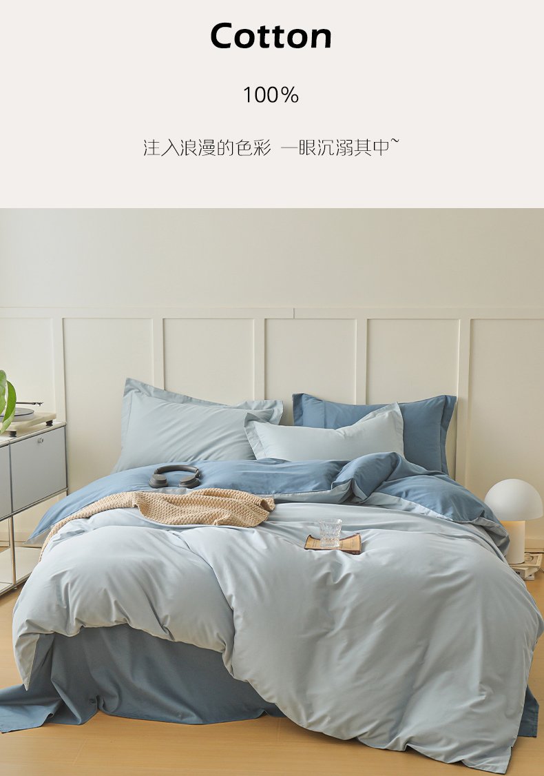 商品名称:2023A类纯色纯棉磨毛单被套 秋波蓝+宾利蓝