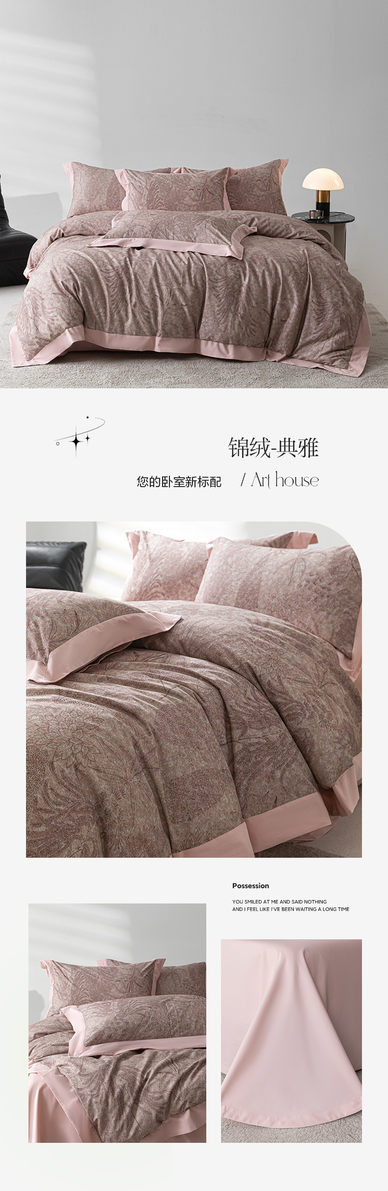栩裕纺织 2023新款50支长绒棉贡缎磨毛数码印花四件套-锦绒 锦绒-典雅