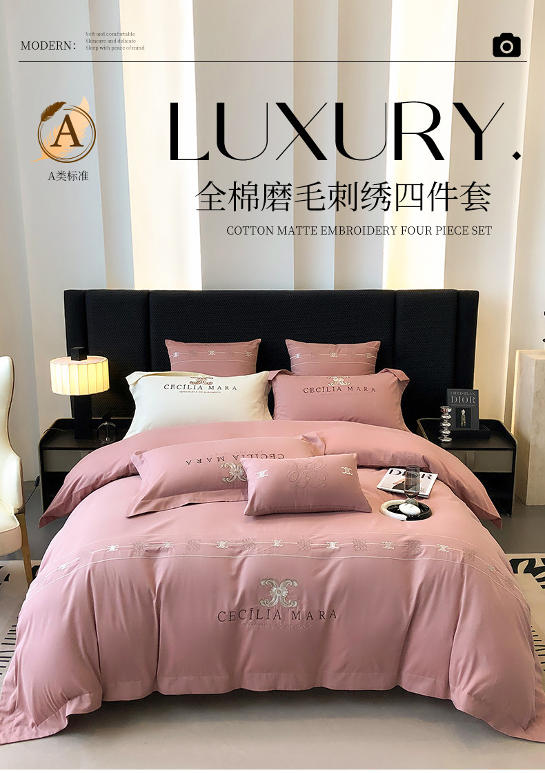 (总)家居1号家纺 2025新款全消光牛奶绒刺绣圣玛丽四件套,圣玛丽-粉豆沙,圣玛丽-果绿,圣玛丽-晴蓝,圣玛丽-绅士灰,圣玛丽-香槟金