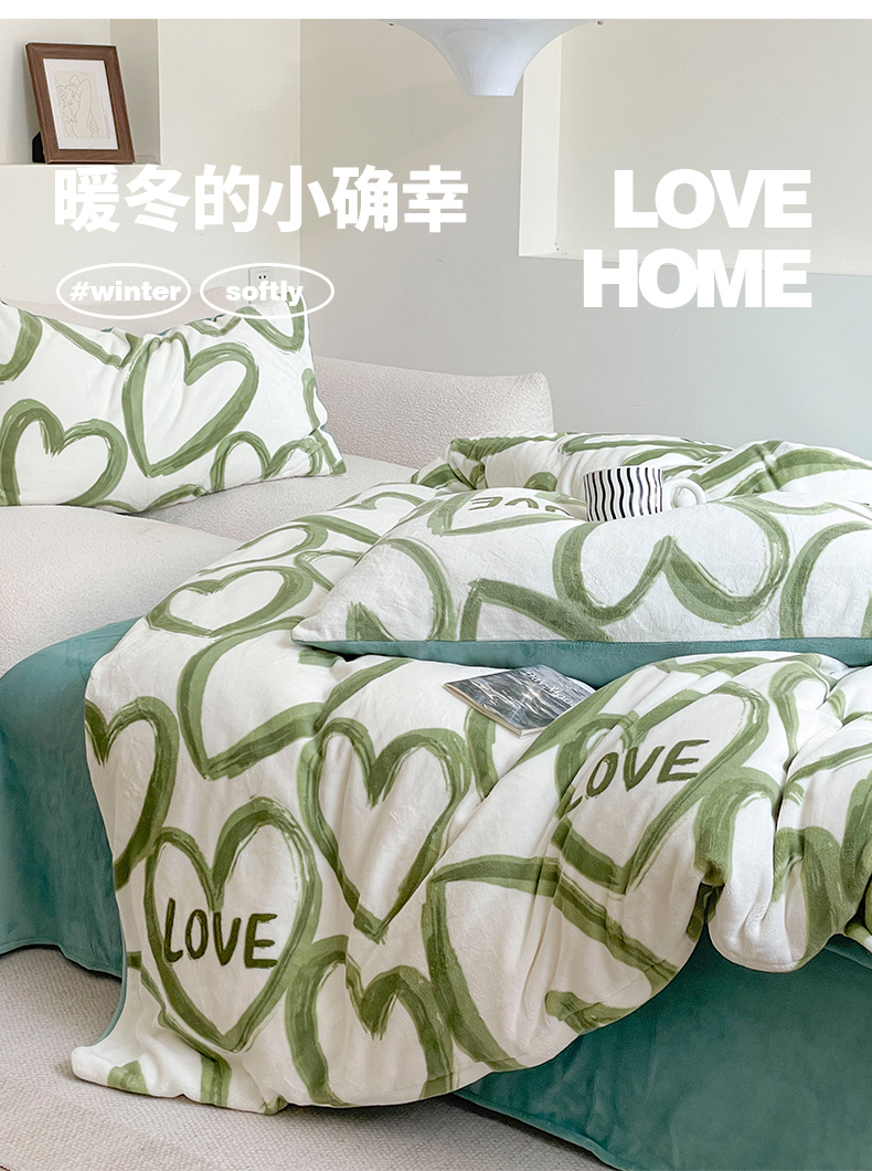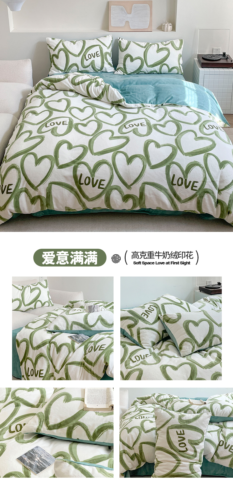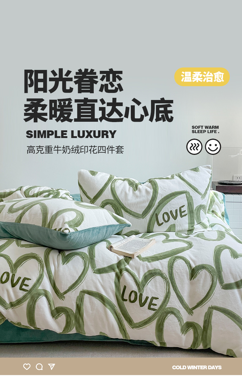 窝米 2023冬季新品高克重牛奶绒四件套系列 爱意满满