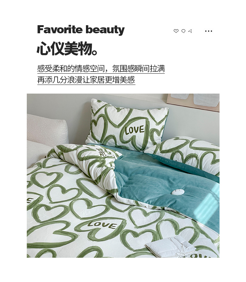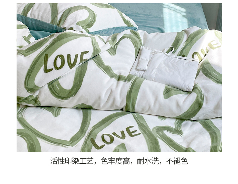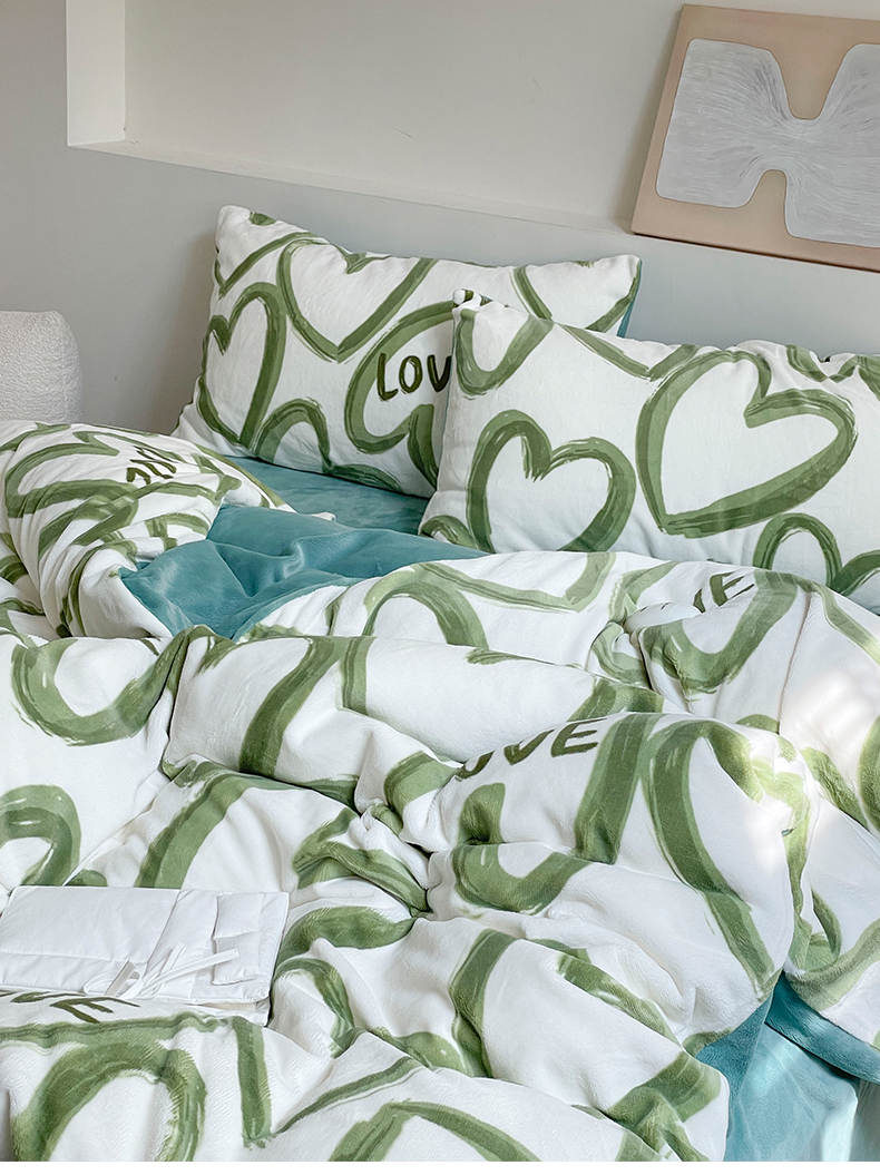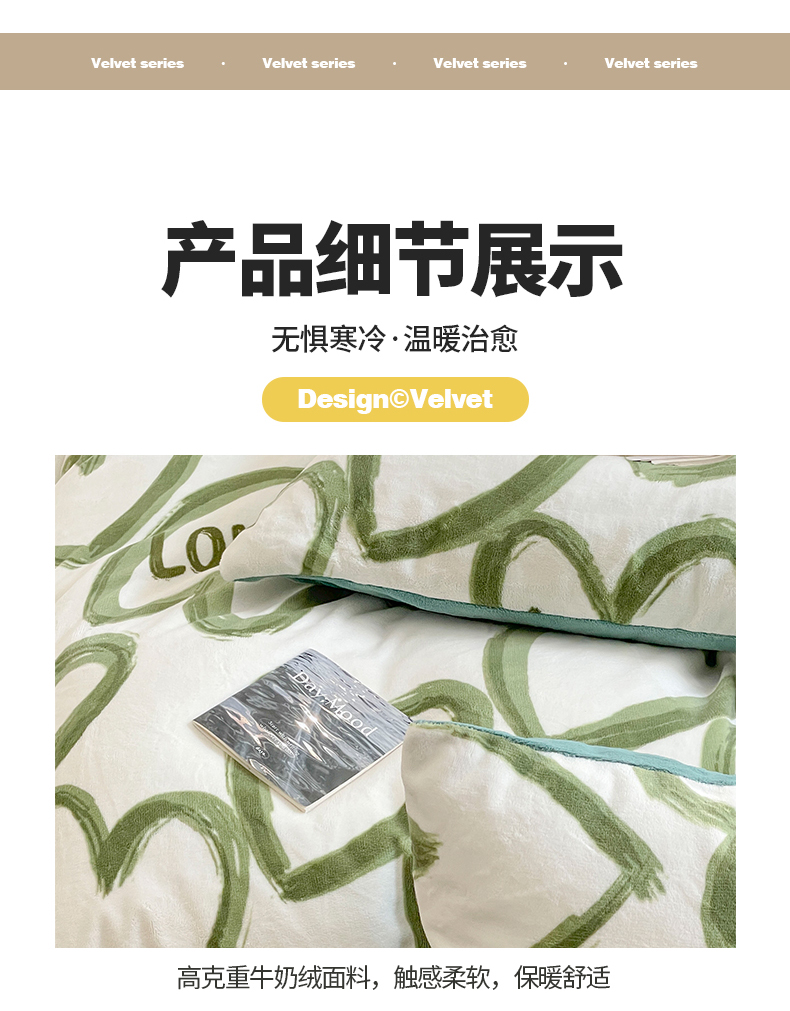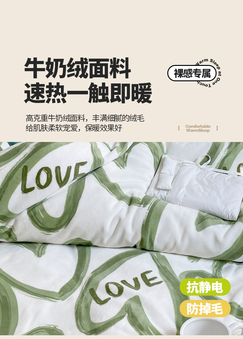 窝米 2023冬季新品高克重牛奶绒四件套系列 爱意满满