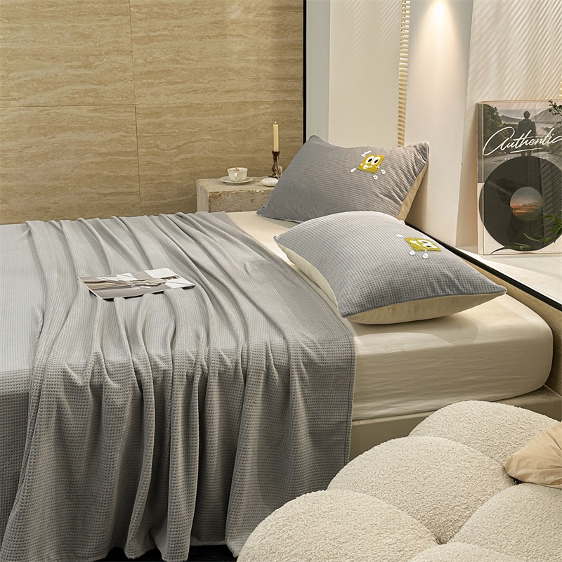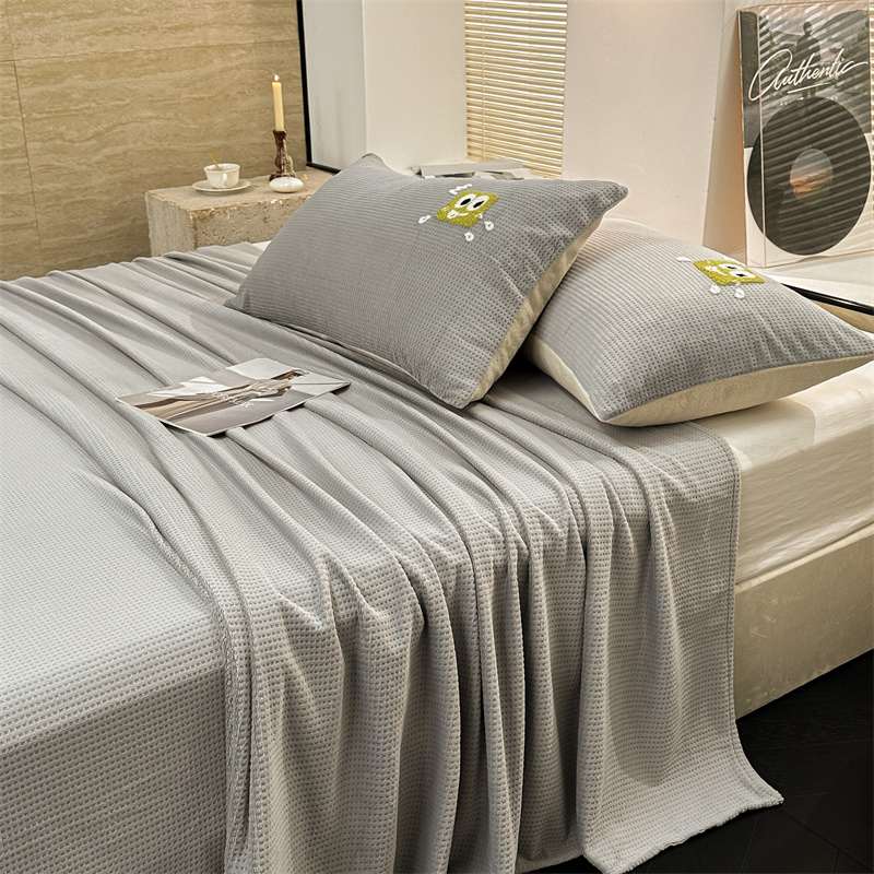 商品名称:洋铭区(原狠狠爱) 2023新款华夫格单品绒床单 华夫格-暖灰