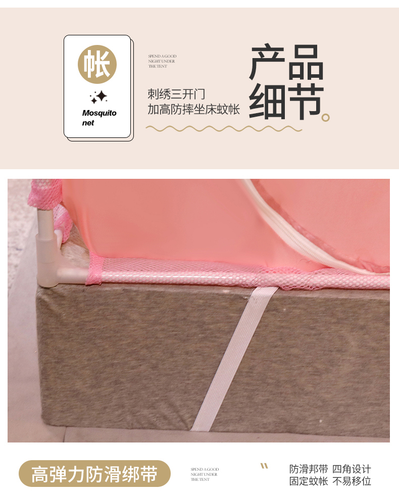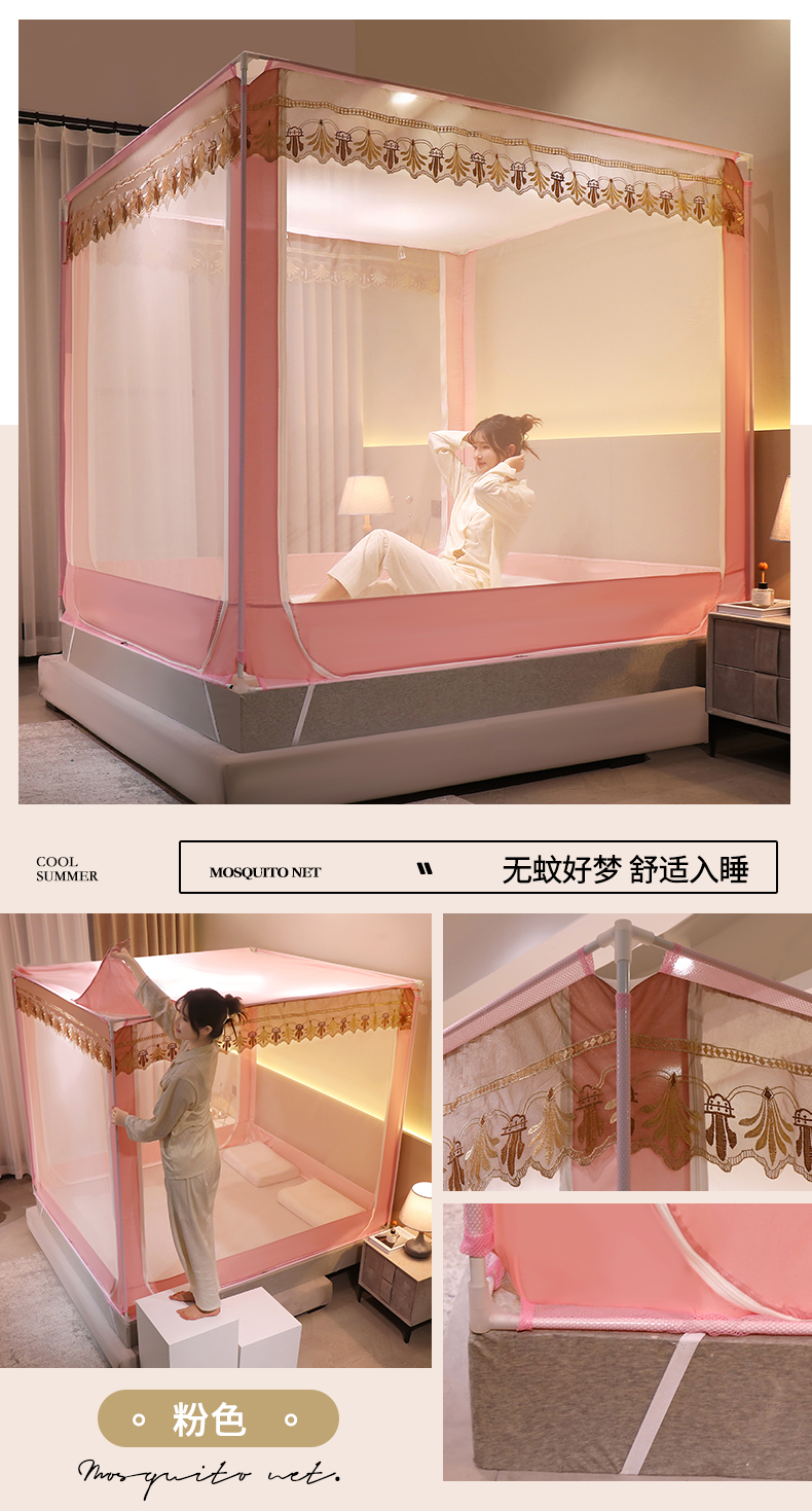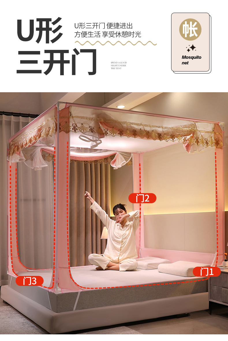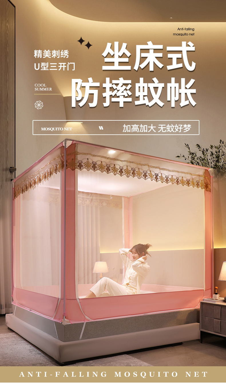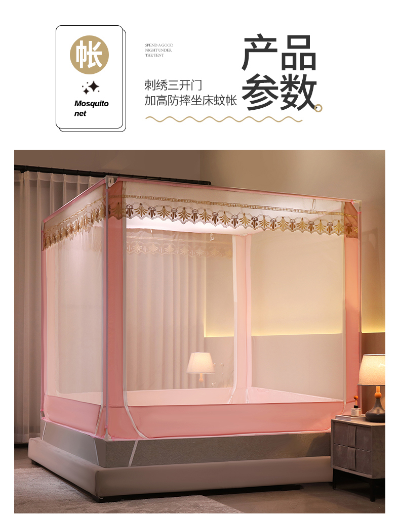 当前位置: 91家纺网 > 商品网购 > 床上用品 > 蚊帐 > 坐床式蚊帐 > 伊而梦蚊帐 2023新款U型刺绣三开门加高防摔坐床蚊帐 粉色