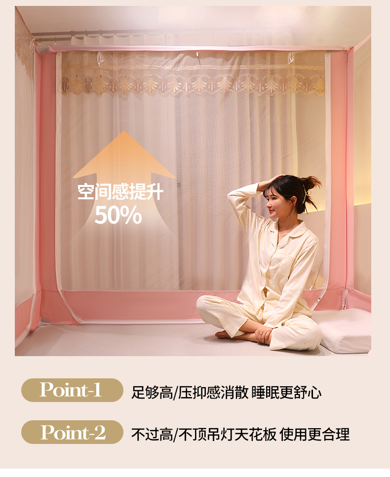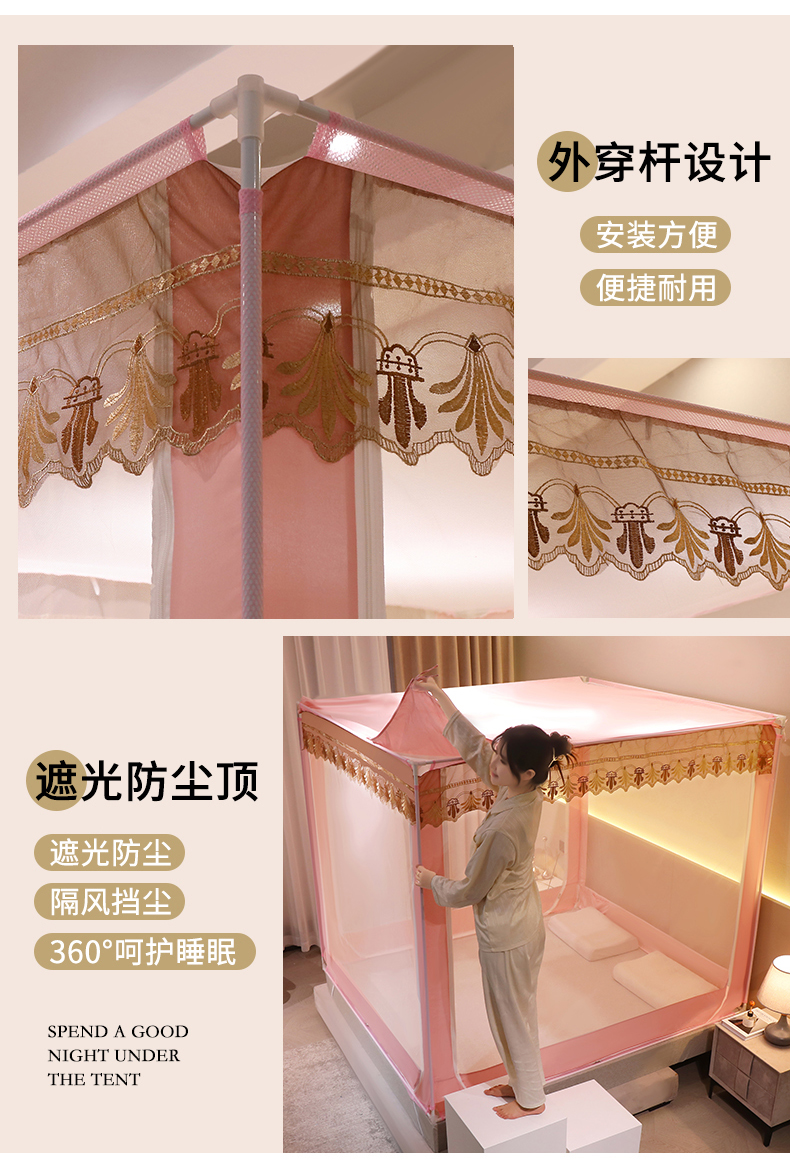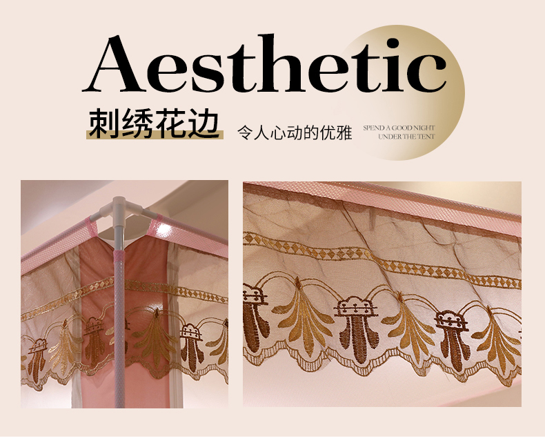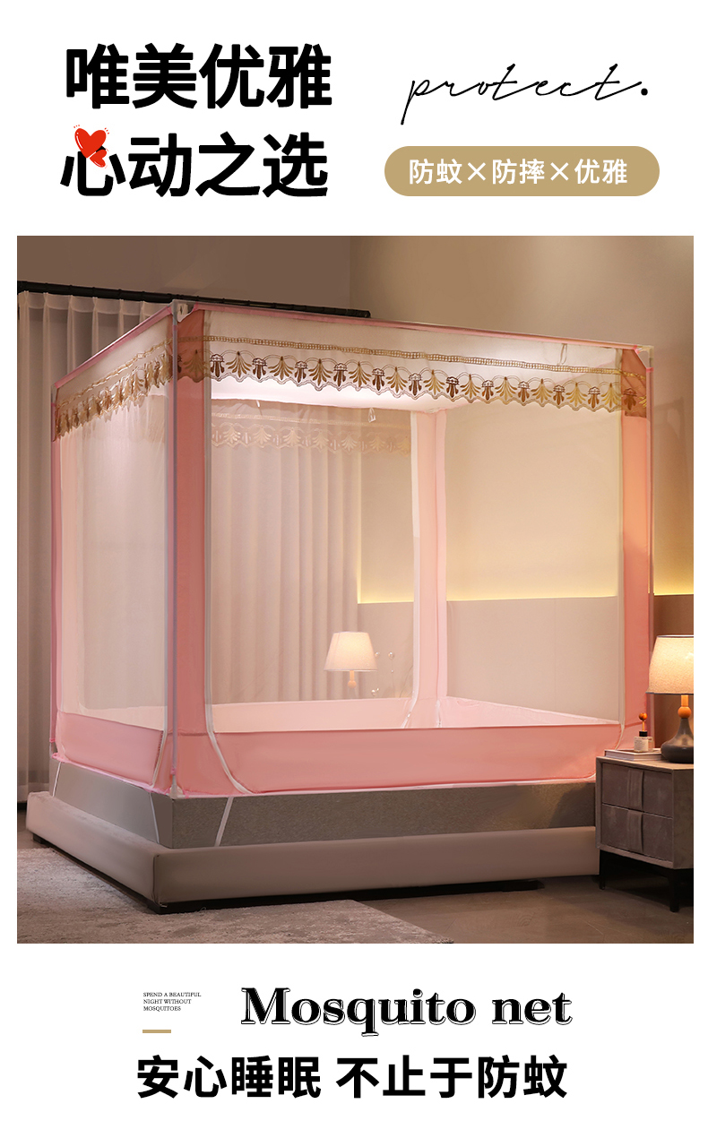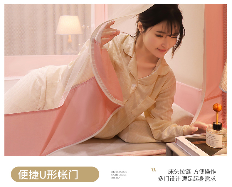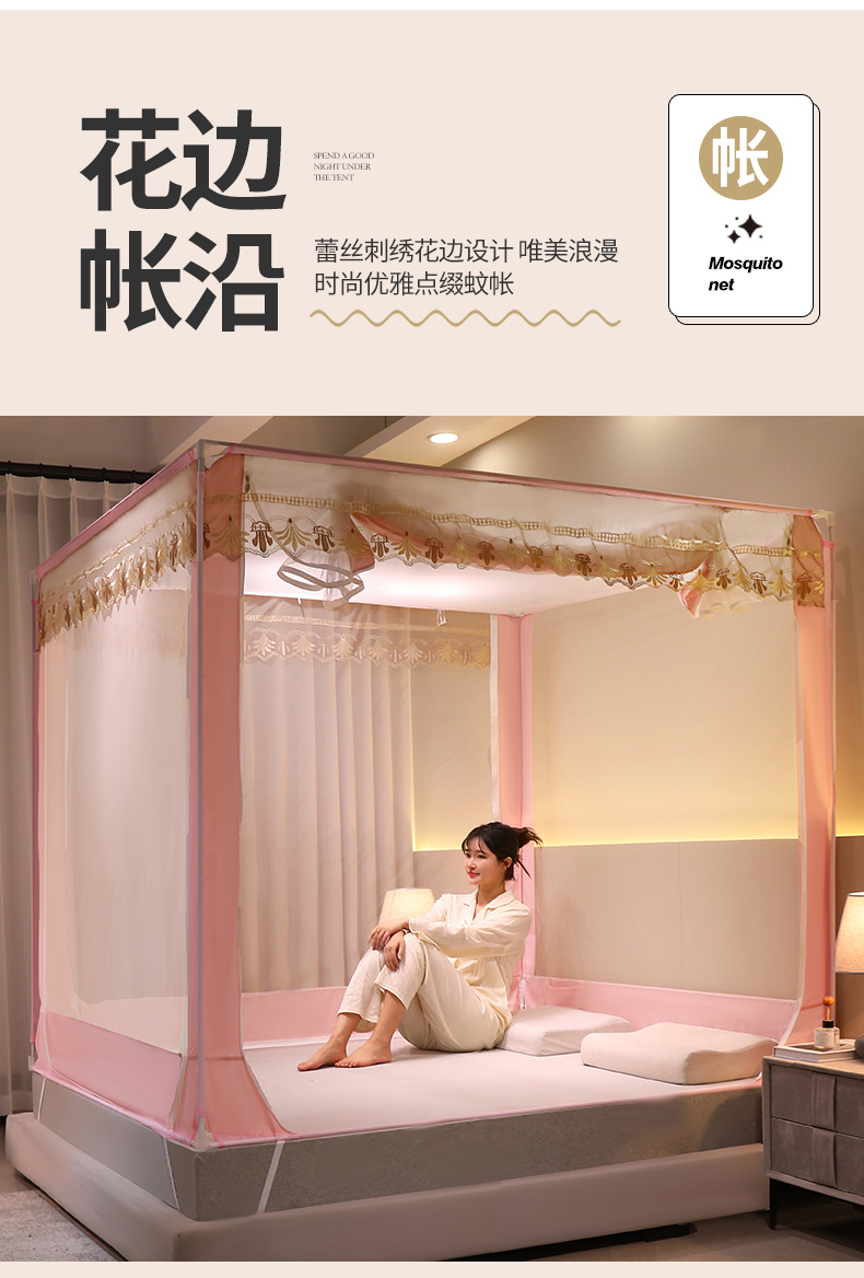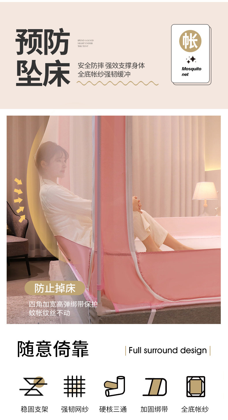 当前位置: 91家纺网 > 商品网购 > 床上用品 > 蚊帐 > 坐床式蚊帐 > 伊而梦蚊帐 2023新款U型刺绣三开门加高防摔坐床蚊帐 粉色
