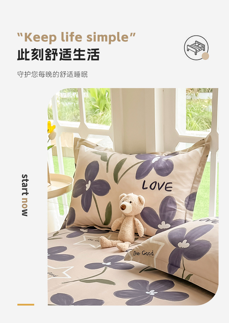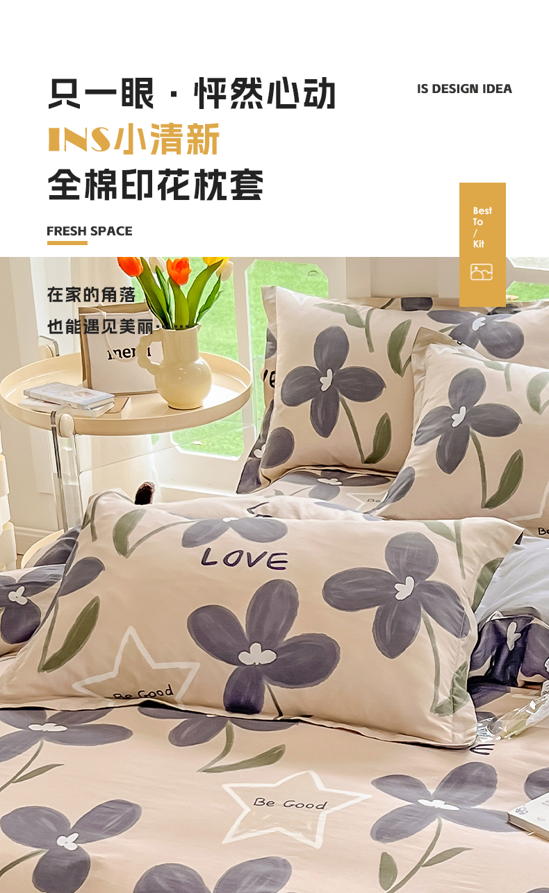 绵庭家纺 2023新款12868系列全棉小清新印花单枕套 雅卉