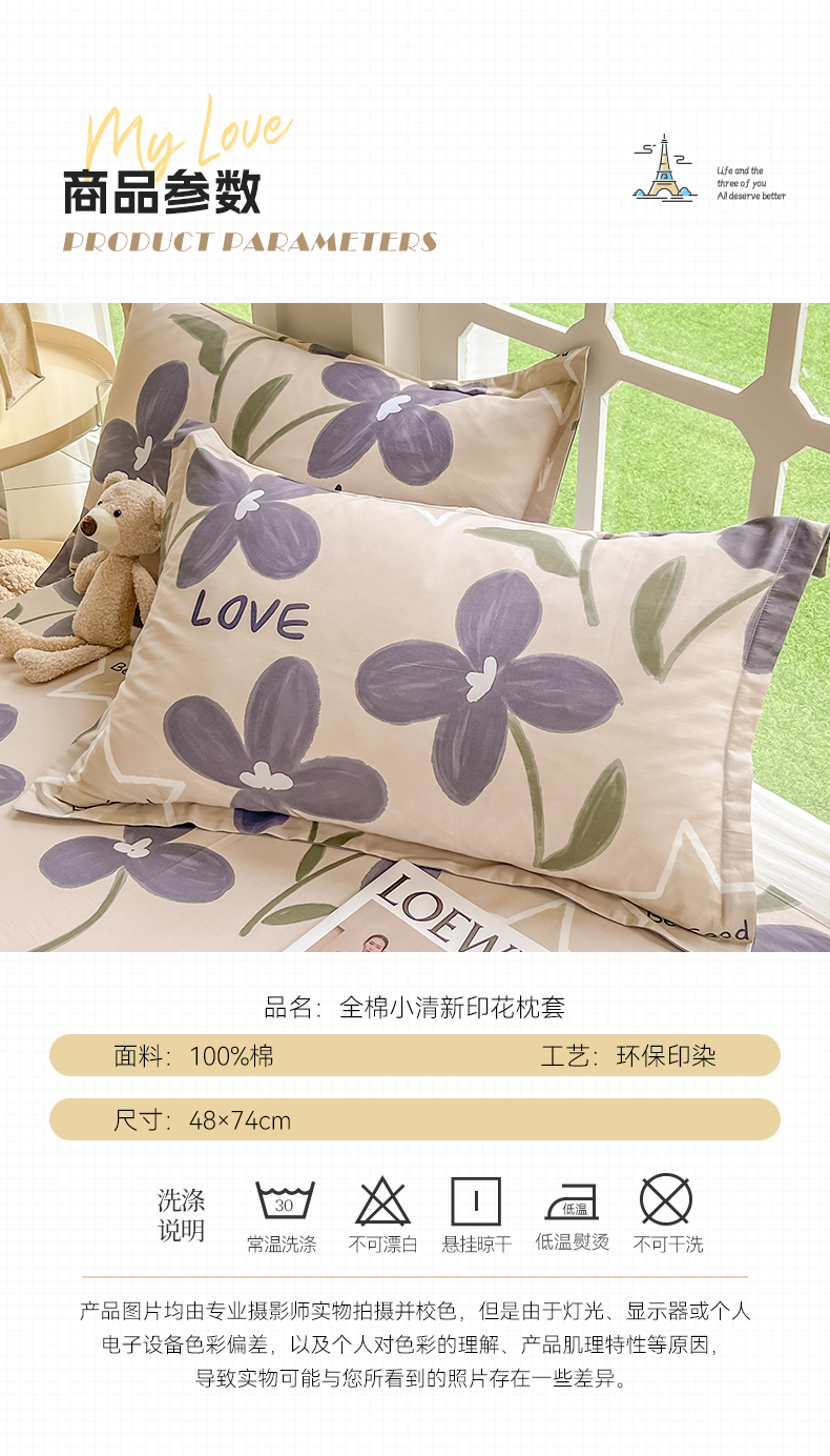 商品名称:绵庭家纺 2023新款12868系列全棉小清新印花单枕套 雅卉