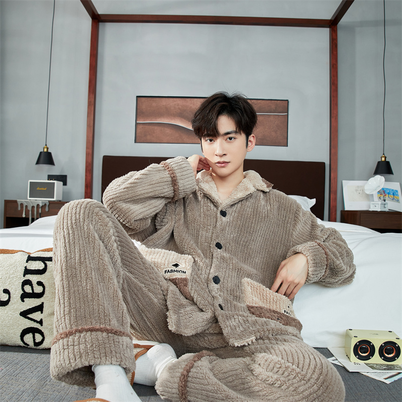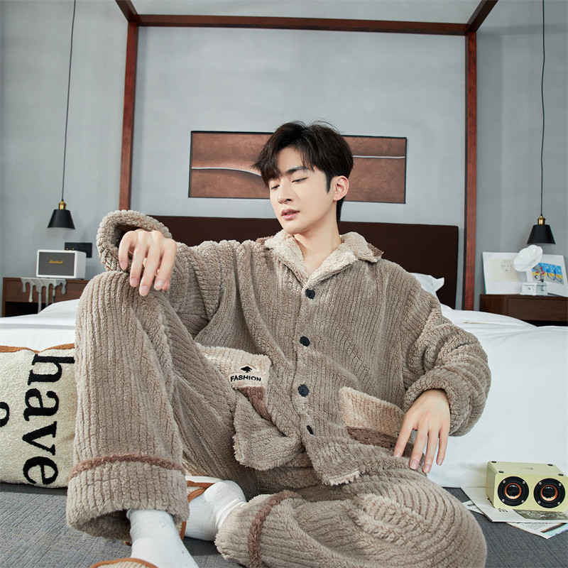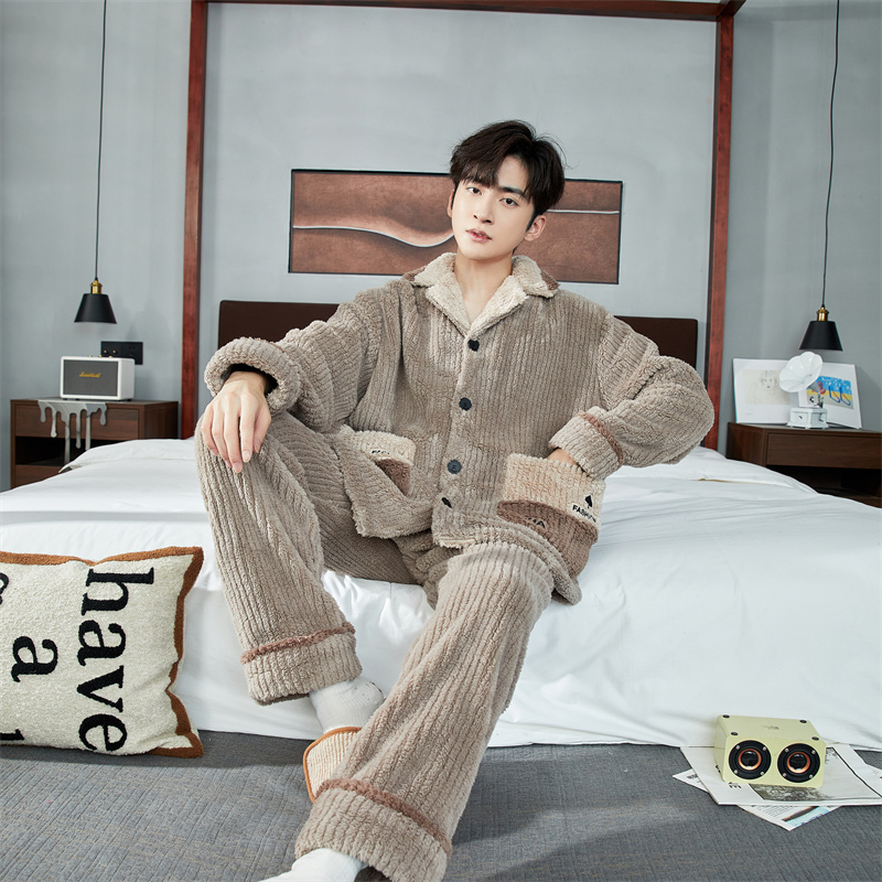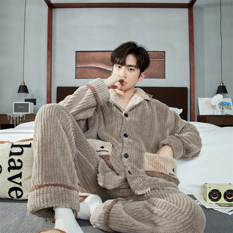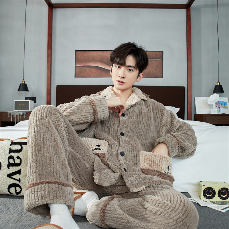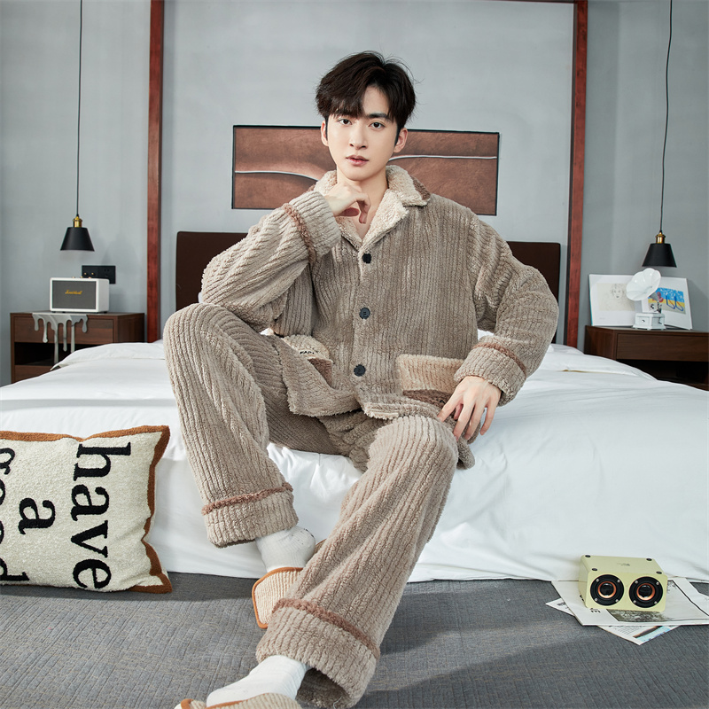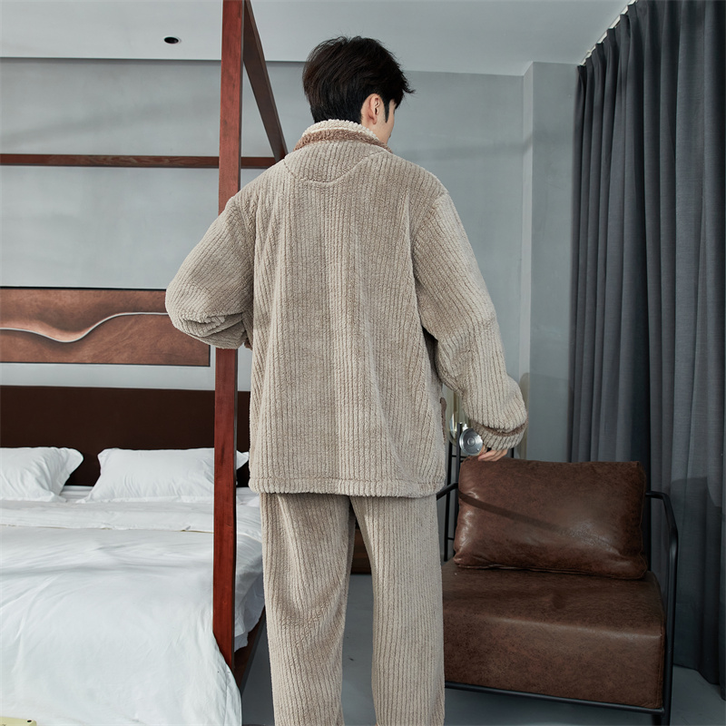 (总)洛兰沙家居馆 2024新款睡衣女秋冬季素色三层夹棉珊瑚绒加厚保暖两件套女士可外穿加绒家居服,紫色,咖色,橘色,绿色,蓝色,米色