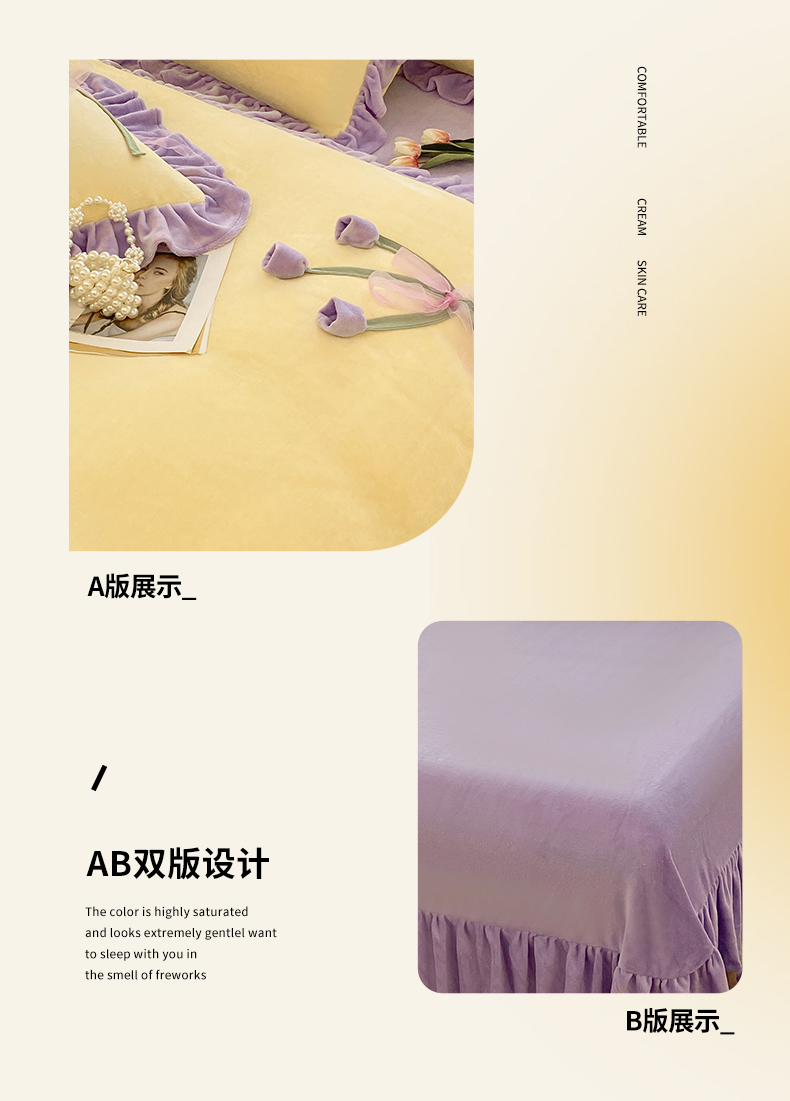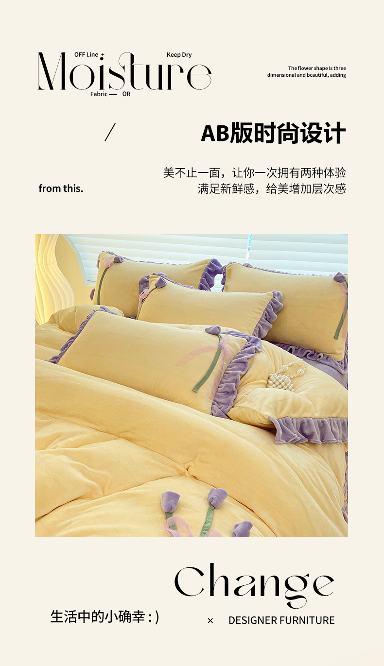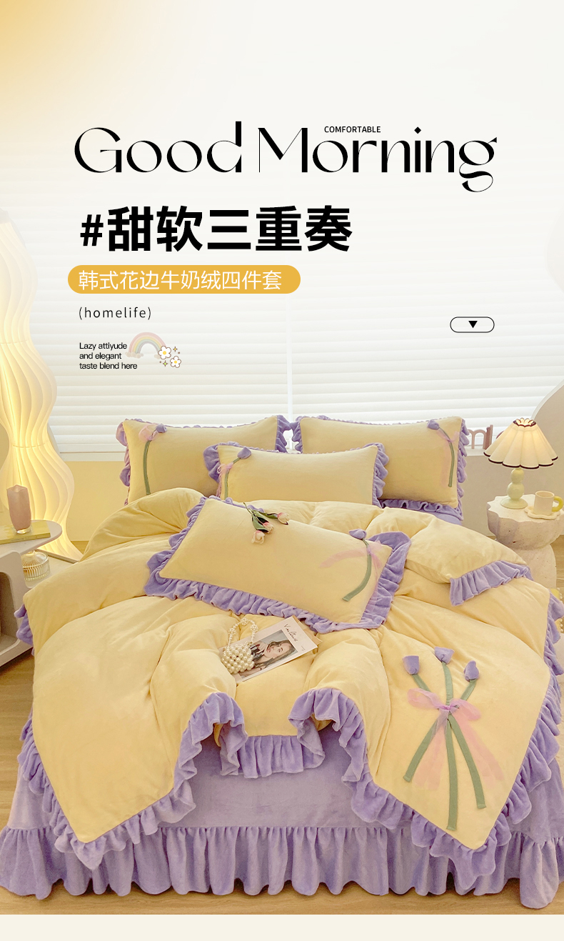 (总)言熙居家纺 2025新款A类兔毛绒韩版卡通花边四件套,蝴蝶结,幻蝶,墨枝,休闲一刻,映春,花眠