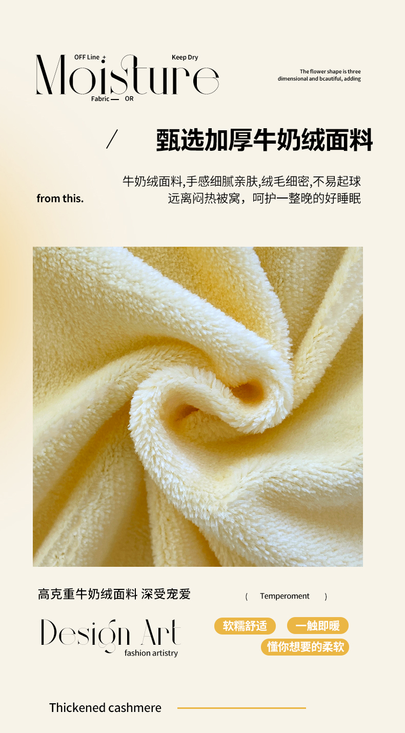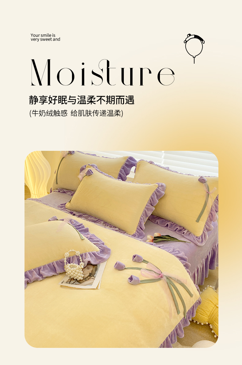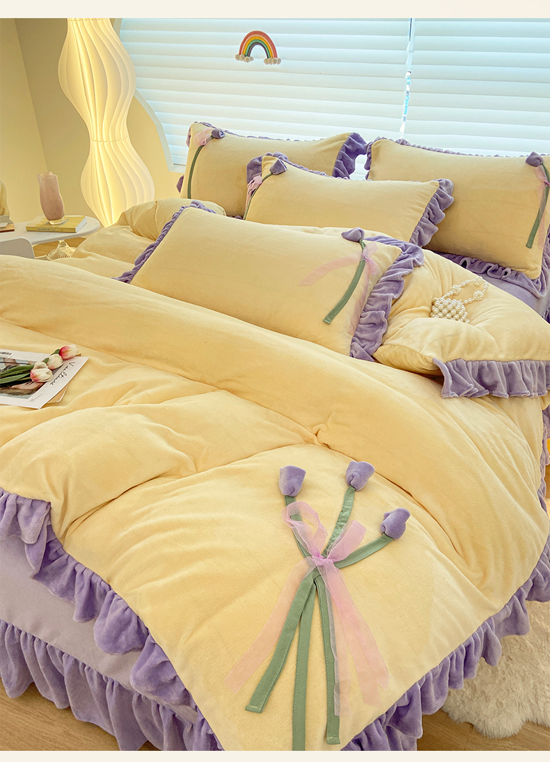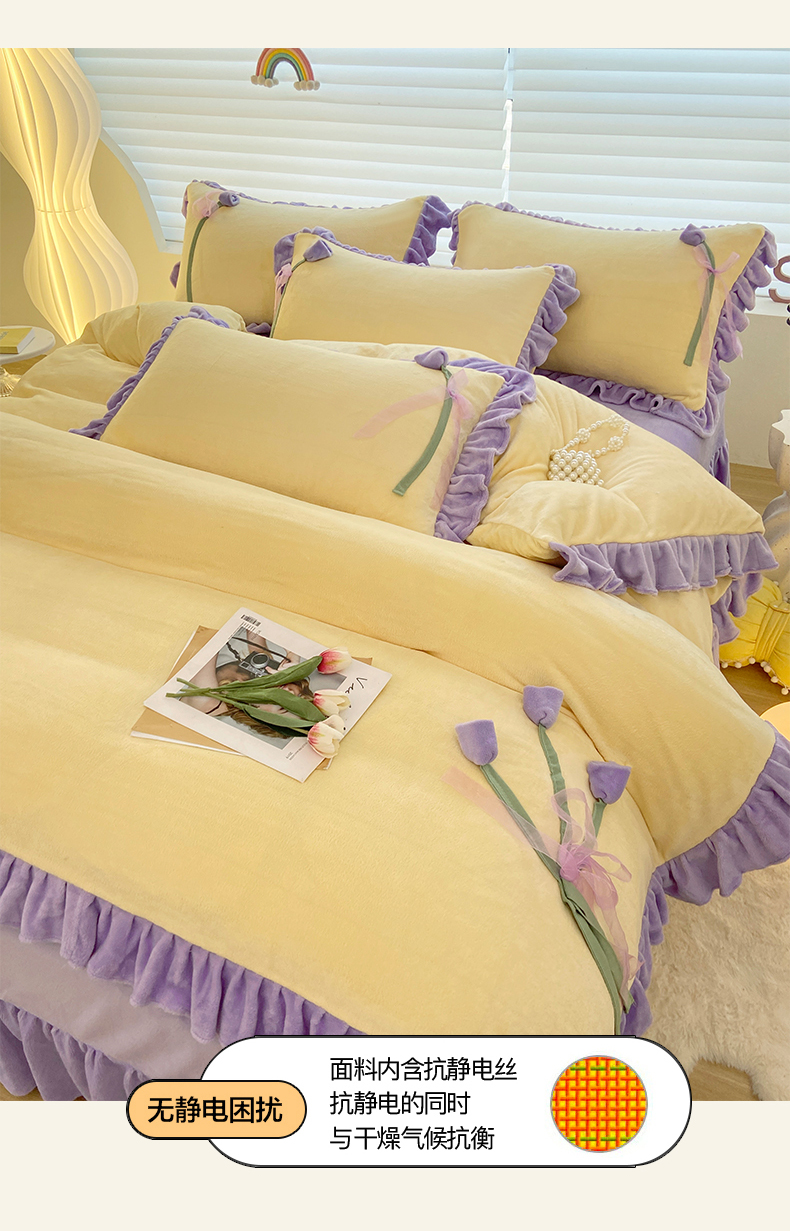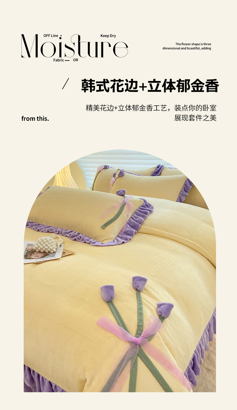 商品名称:言熙居 2024新款法莱绒牛奶绒高克重郁金香系列韩版四件套 郁金香黄