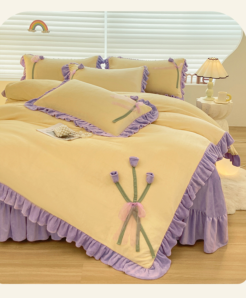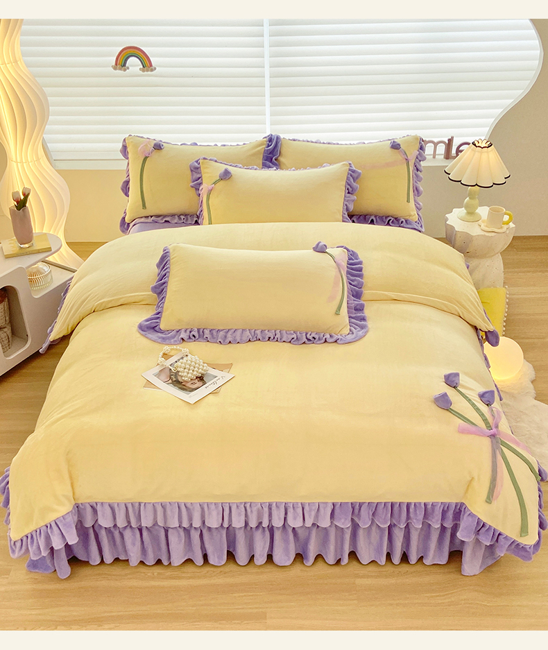 言熙居 2024新款法莱绒牛奶绒高克重郁金香系列韩版四件套 郁金香黄