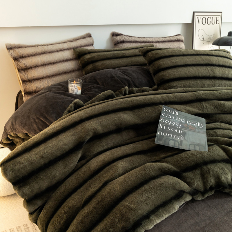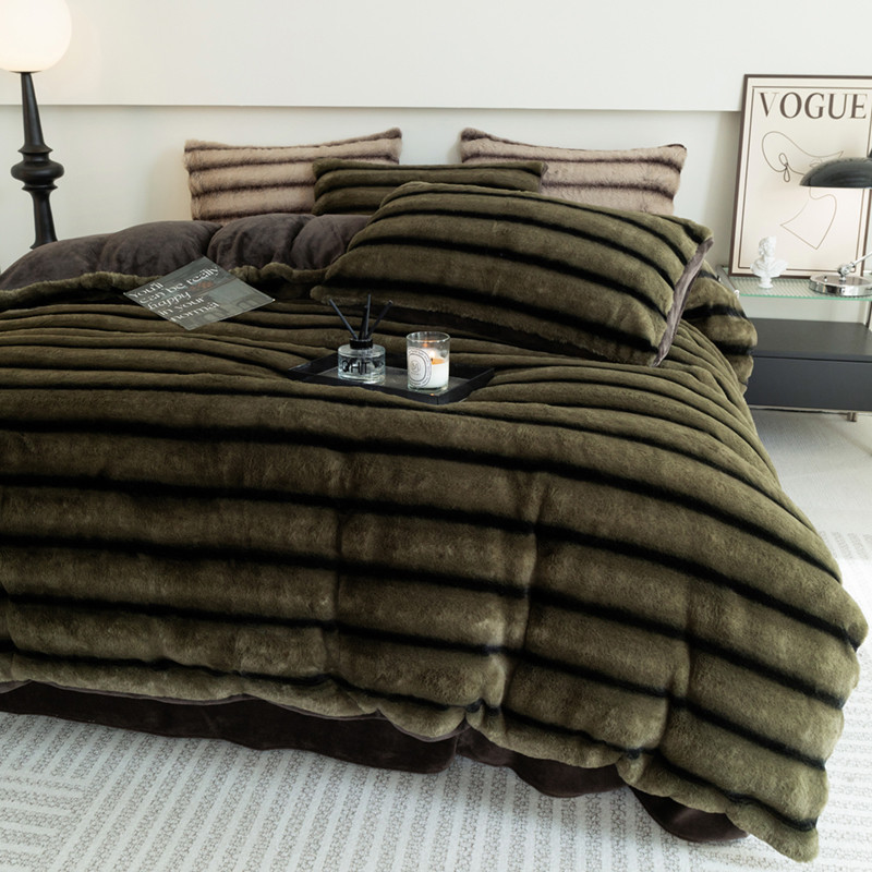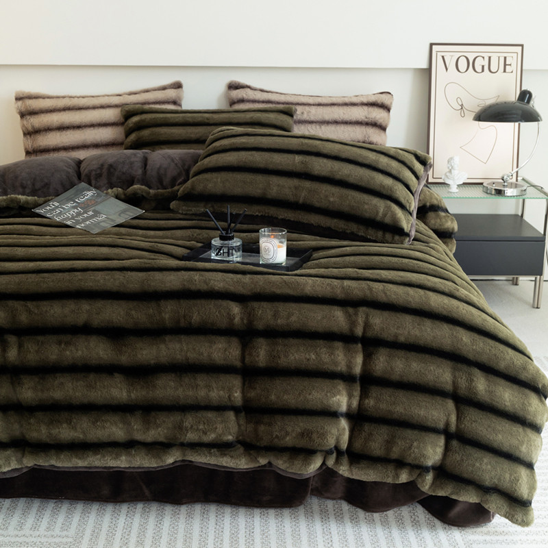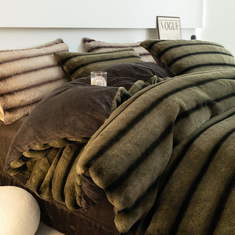 商品名称:满座 2025新款全消光牛奶绒兔兔绒仿兔毛双面印丹麦貂美拉德系列四件套 墨绿