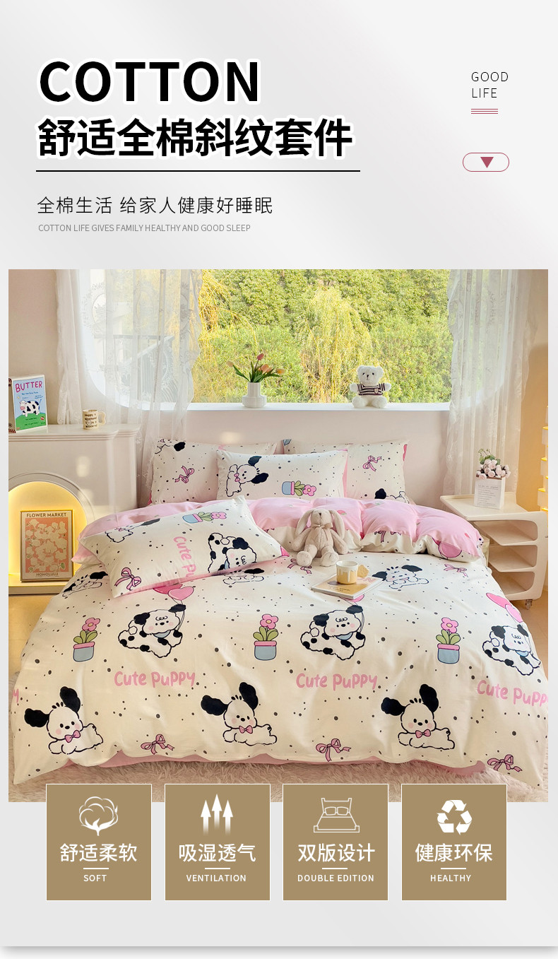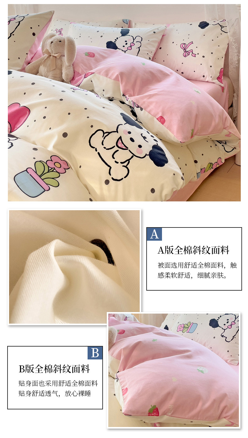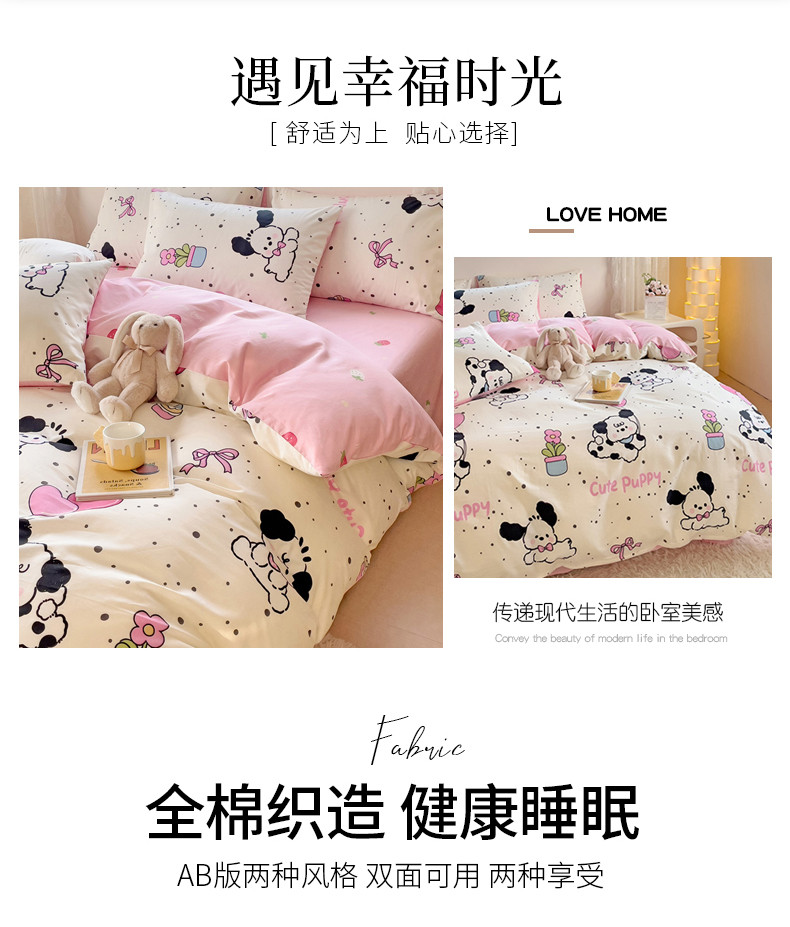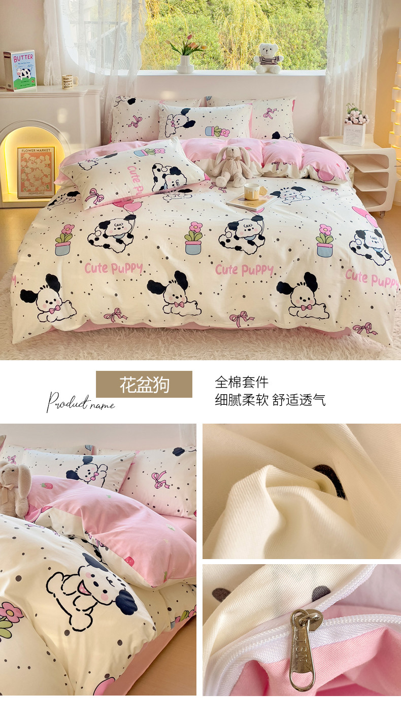 当前位置: 91家纺网 > 商品网购 > 床品套件 > 四件套 > 全棉普通四件套 > 金丝鸟 2023新款全棉可爱卡通印花小清新四件套-第二批 花盆狗