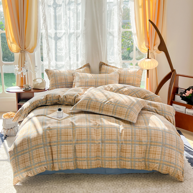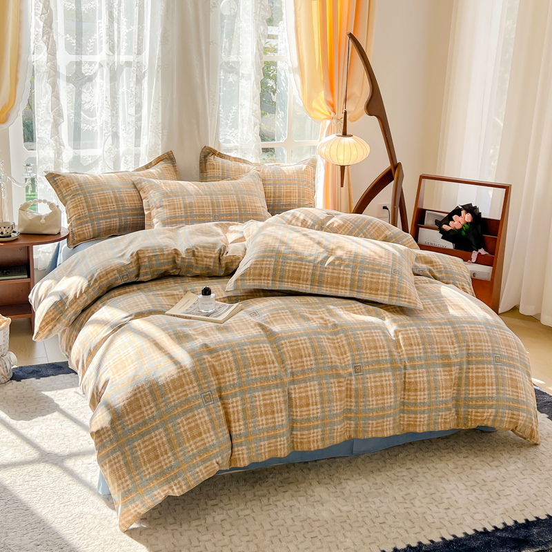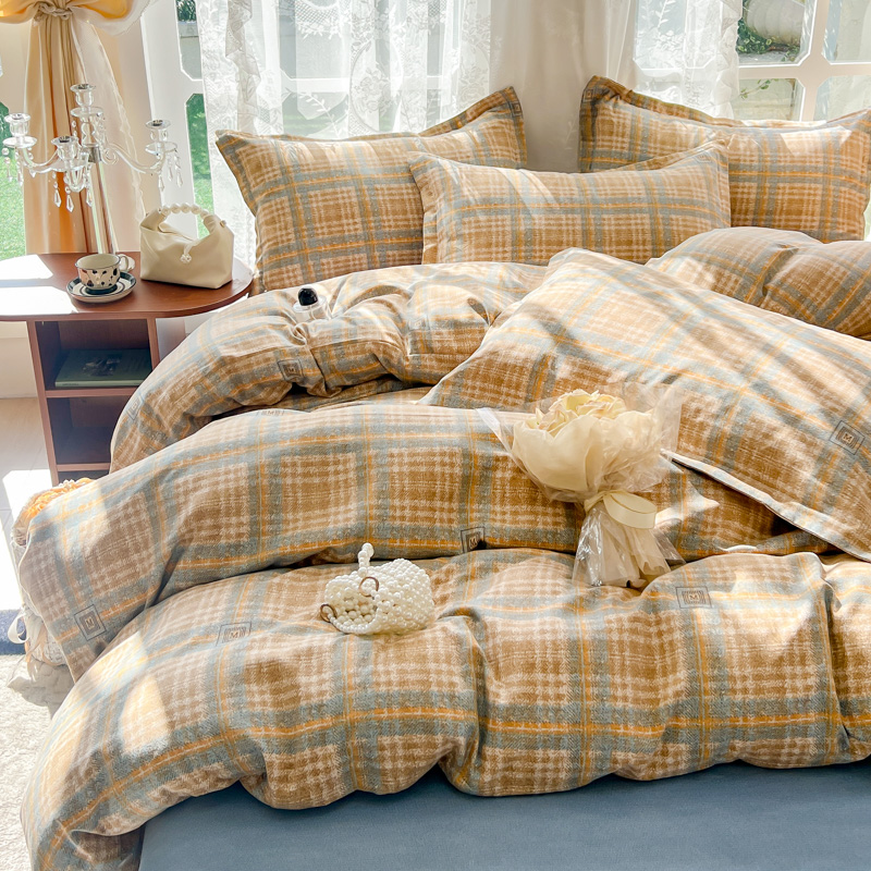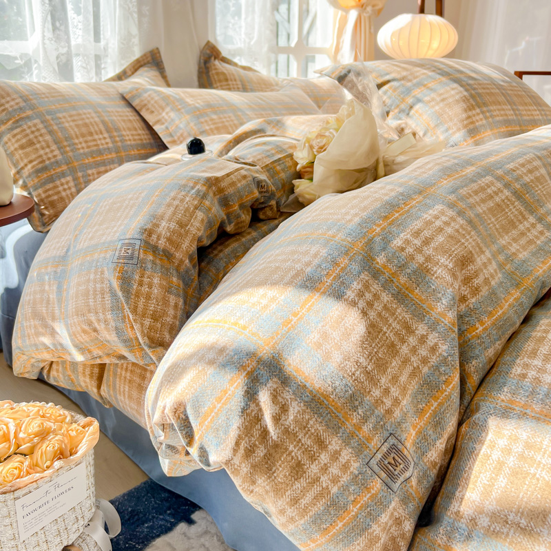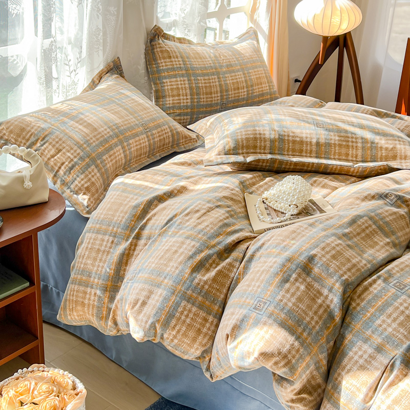 壹号库家纺 2024秋冬新品暖绒双层纱加厚磨毛四件套 摩洛格调