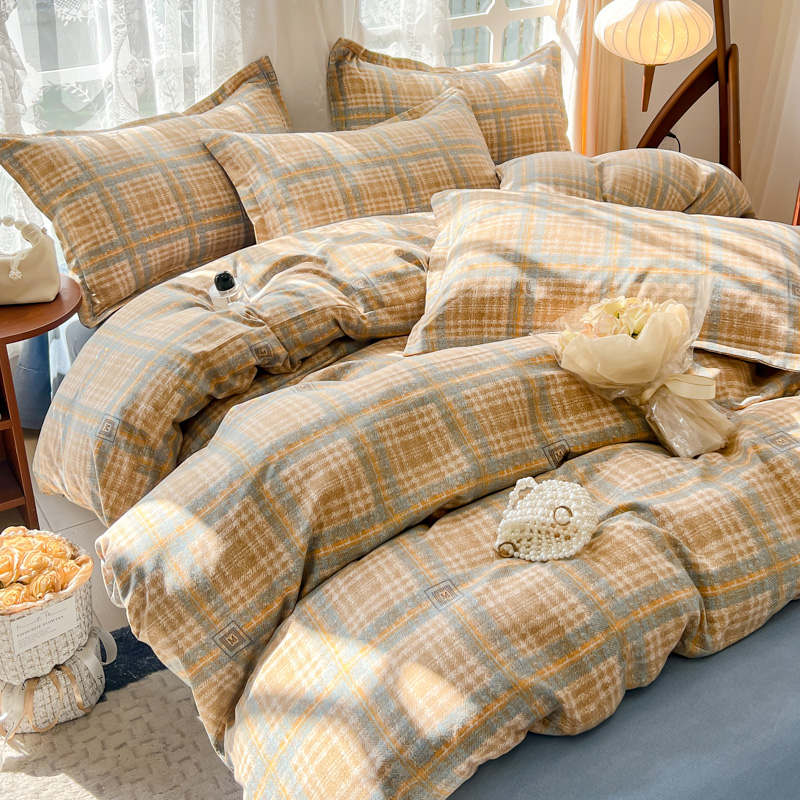 商品名称:壹号库家纺 2024秋冬新品暖绒双层纱加厚磨毛四件套 摩洛格调