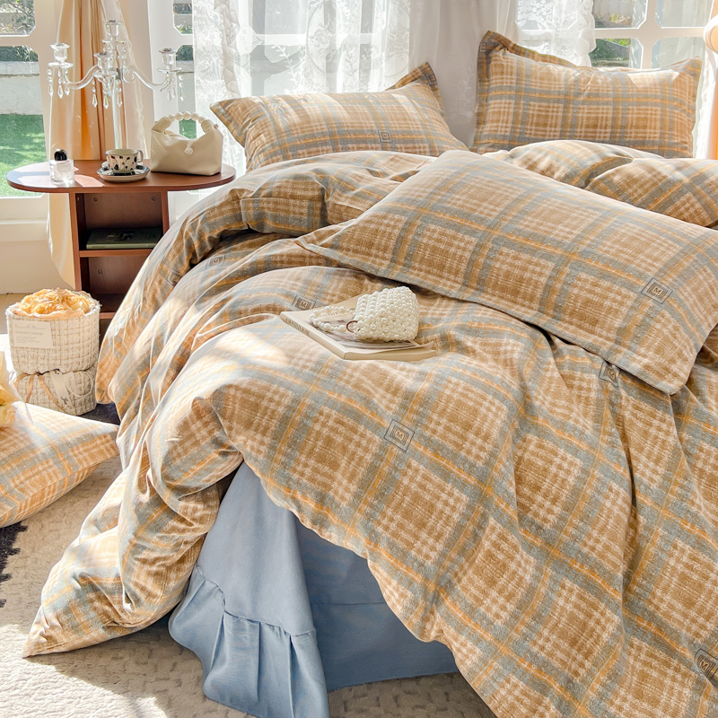(总)壹号库家纺 2025新款水洗皱皱纱四件套-简单款,白茶,兔巴巴,十里桃花,彩虹糖,梦露,无印兰格,丽莎,蕾丝小兔,甜茶,幸福里,快乐小象,西高地,豆蔻,草莓方糖,kiki猫,百福(兰),豹富-兰,芝士奶酪,春风里,豹富-粉,木兮绿