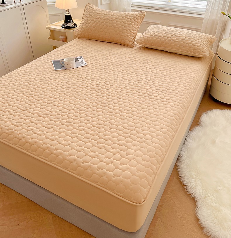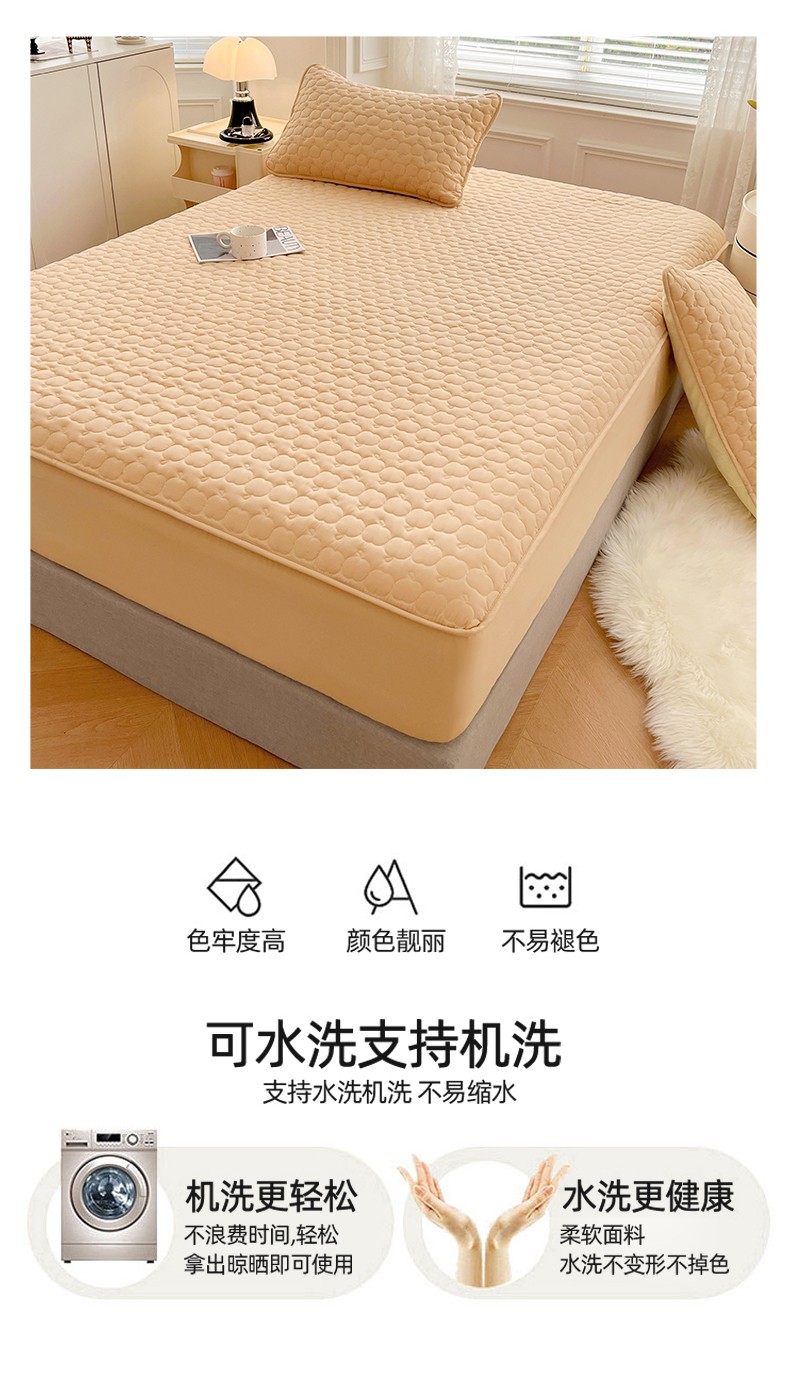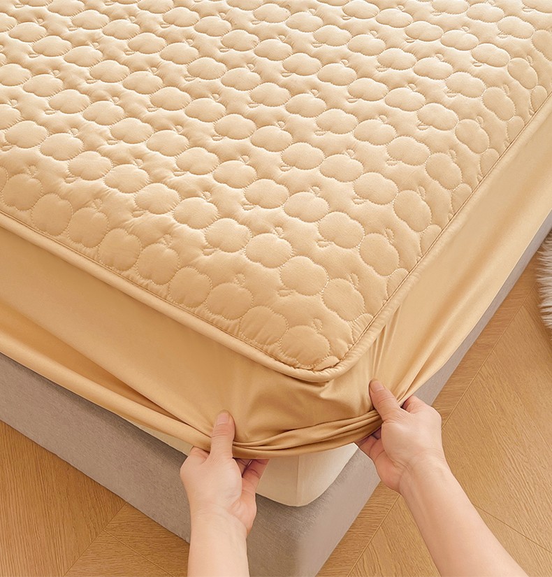 • 91家纺网 家纺一手货源 找家纺 梦舒羽 2025新款抗菌隔尿防水四季款夹棉加厚床笠床垫保护罩床垫套 苹果款-杏黄