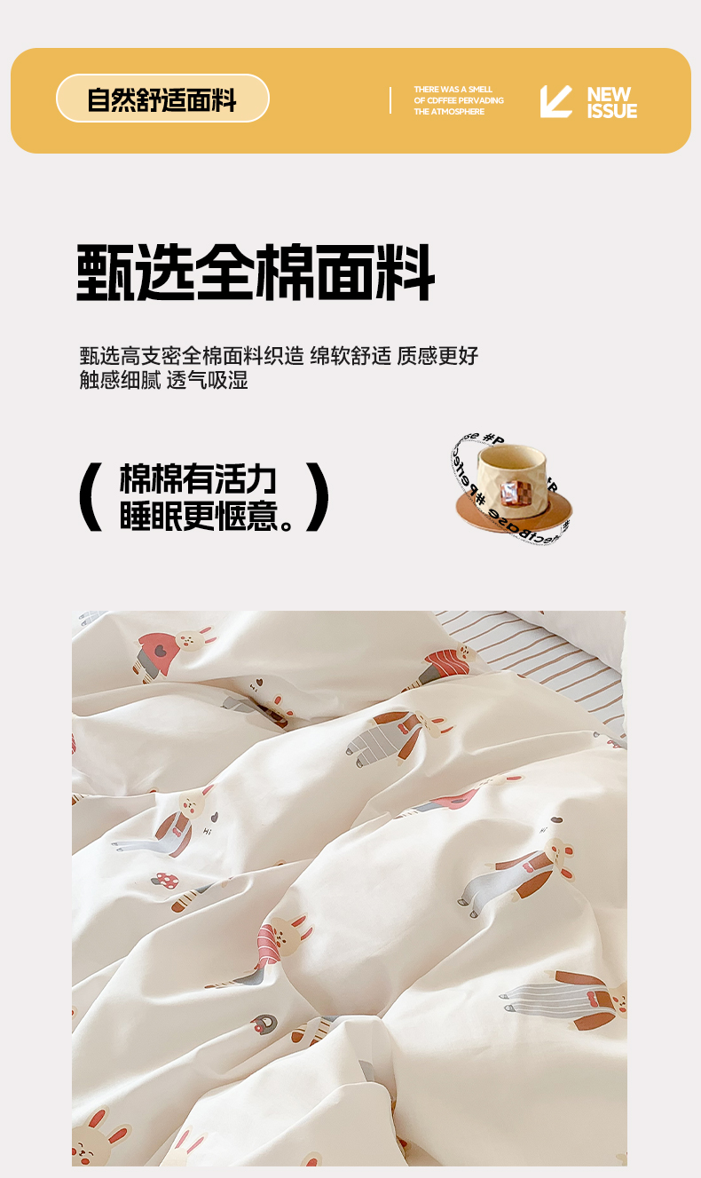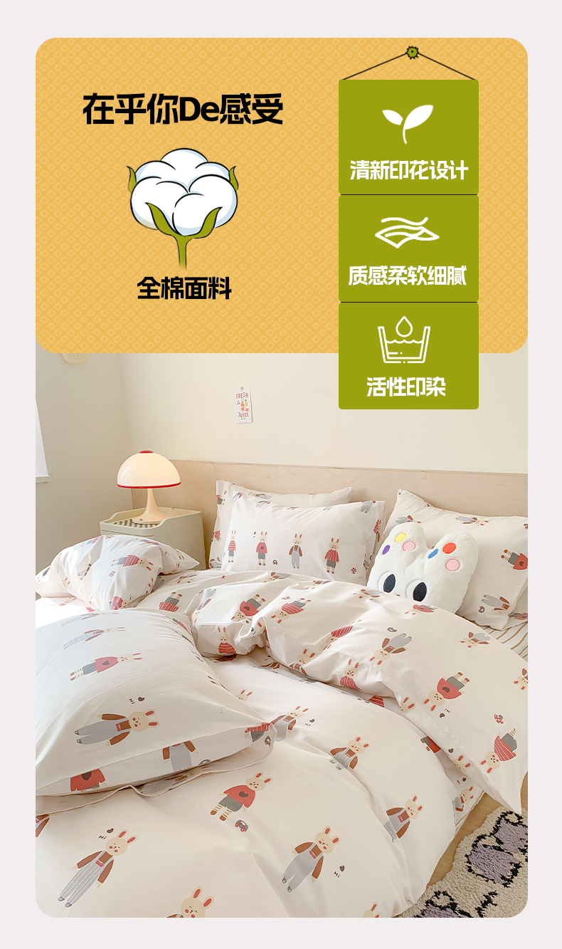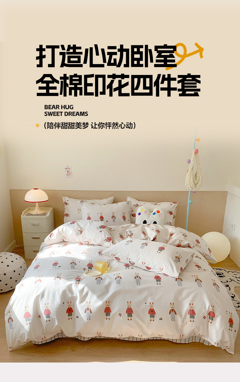 商品名称:澳萝拉 2024新款全棉印花亲肤舒适四件套 兔子酱