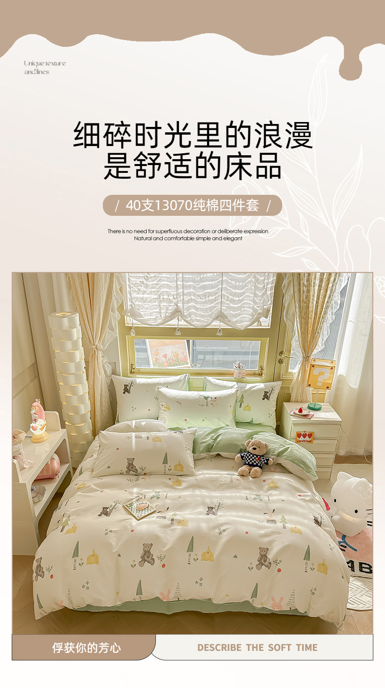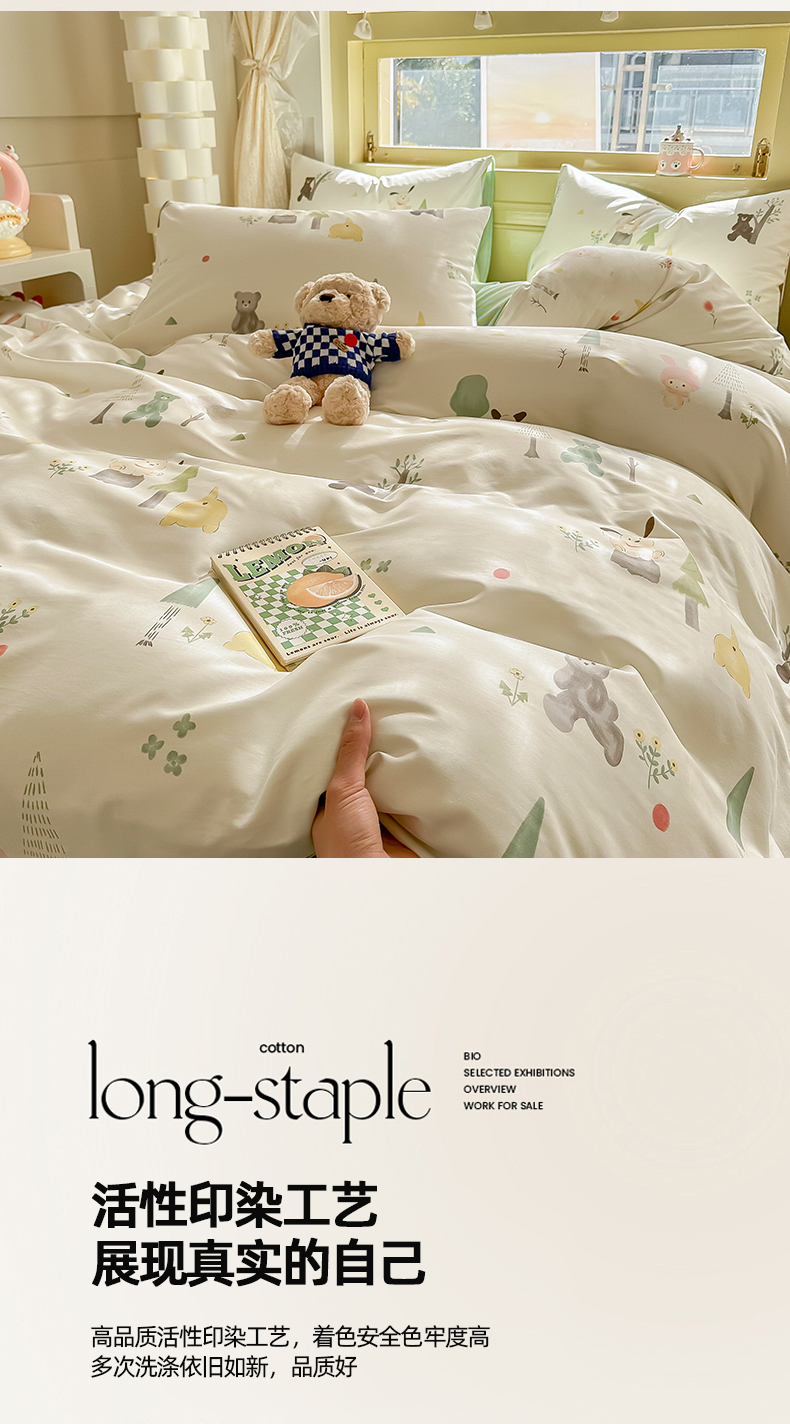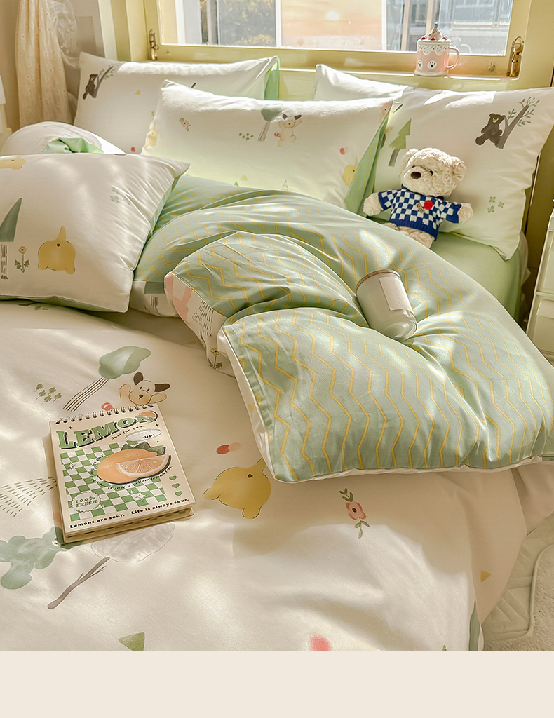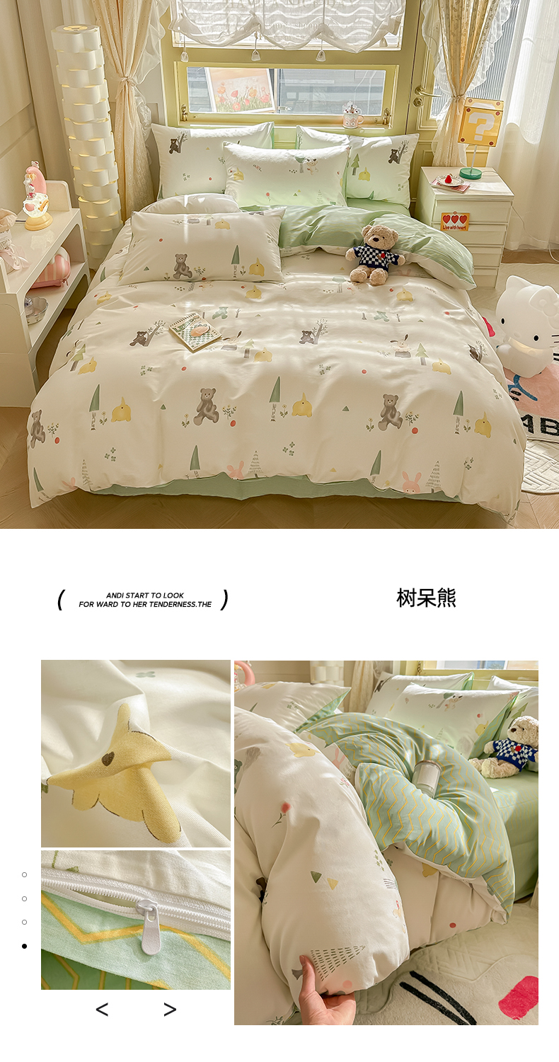 商品名称:简宜家居 2025新款40支13070全棉斜纹卡通系列四件套(系列二) 树呆熊