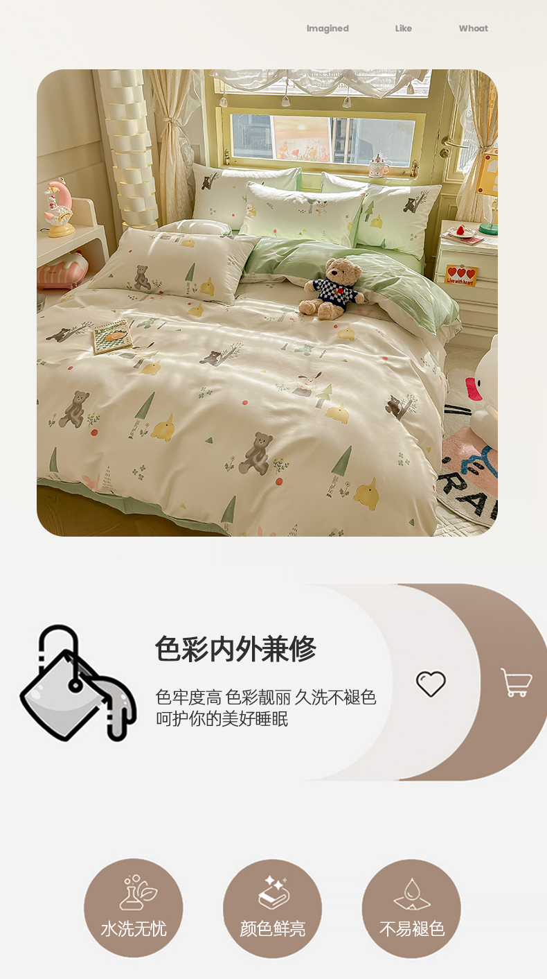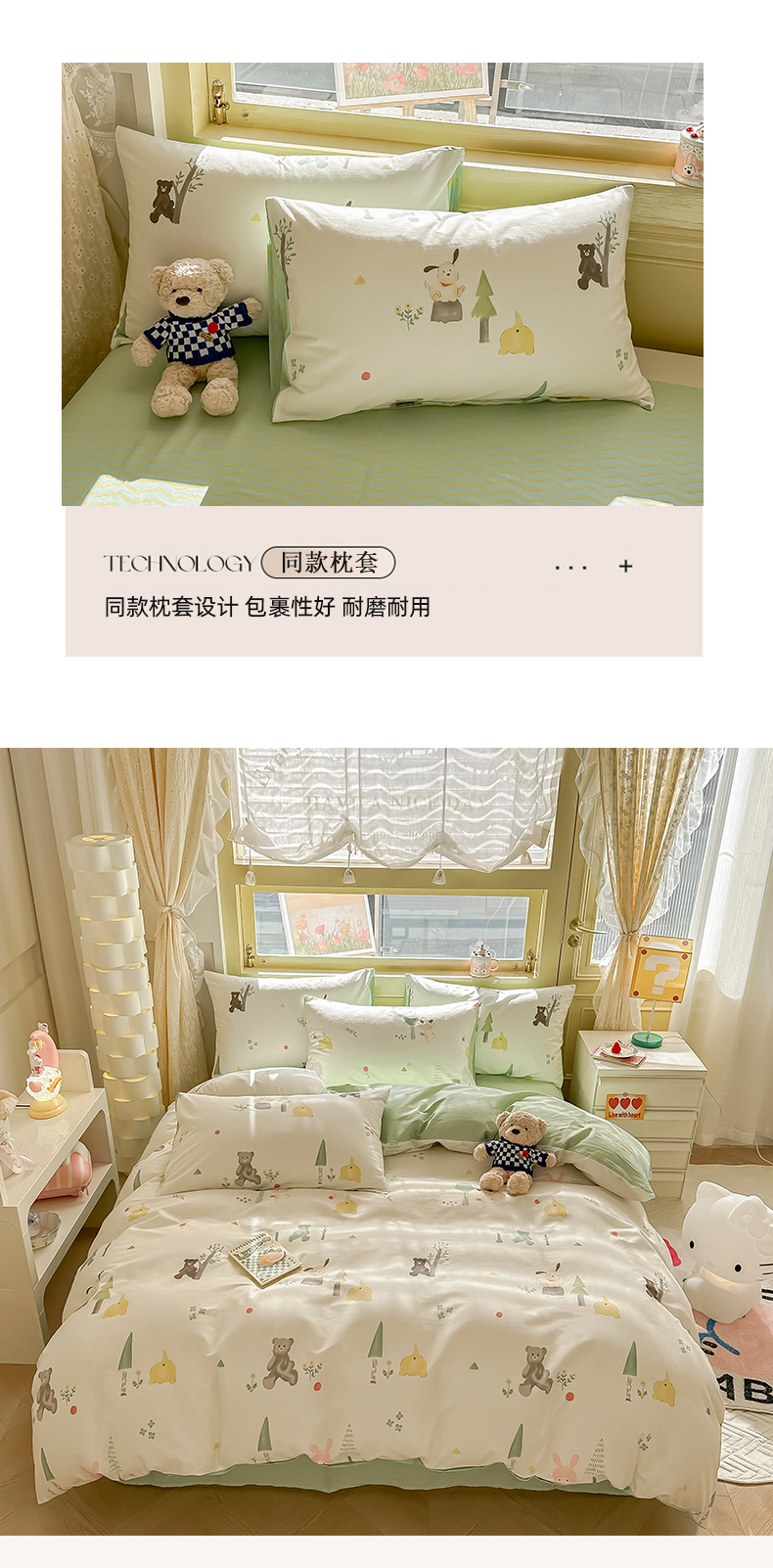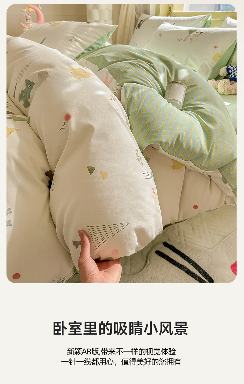 商品名称:简宜家居 2025新款40支13070全棉斜纹卡通系列四件套(系列二) 树呆熊