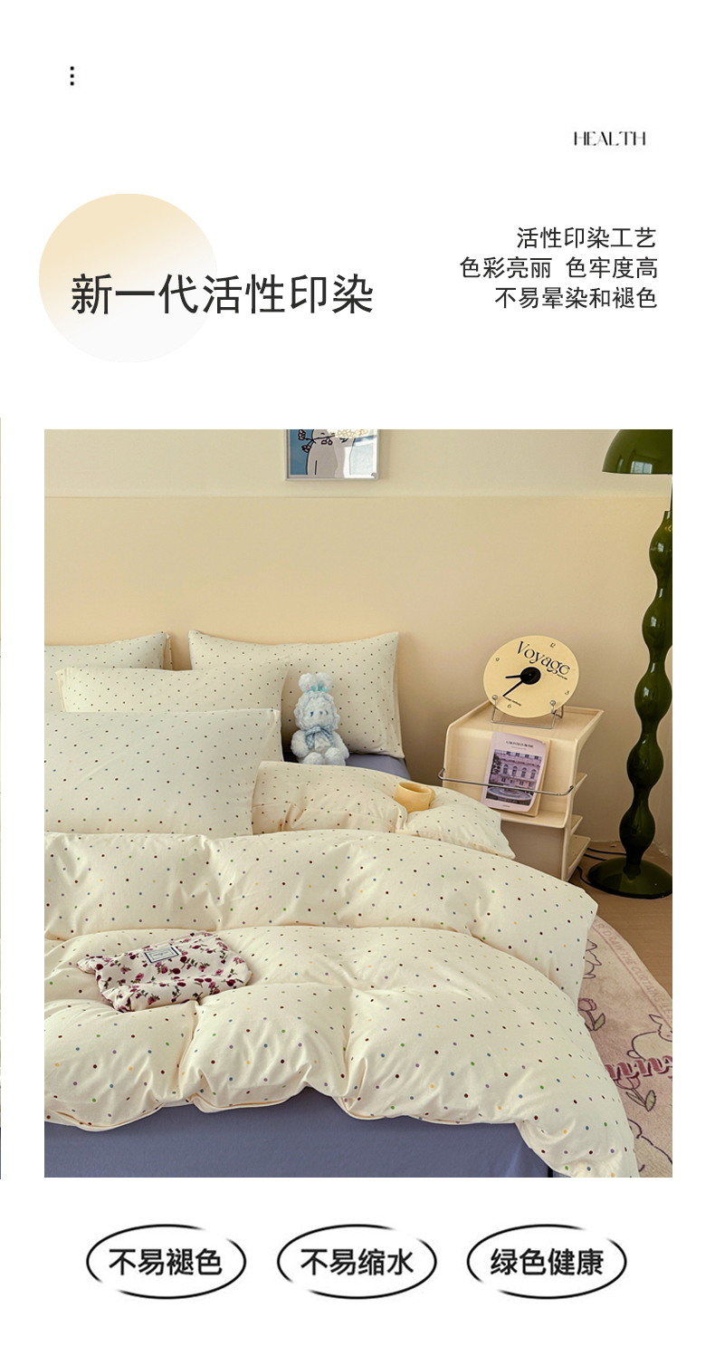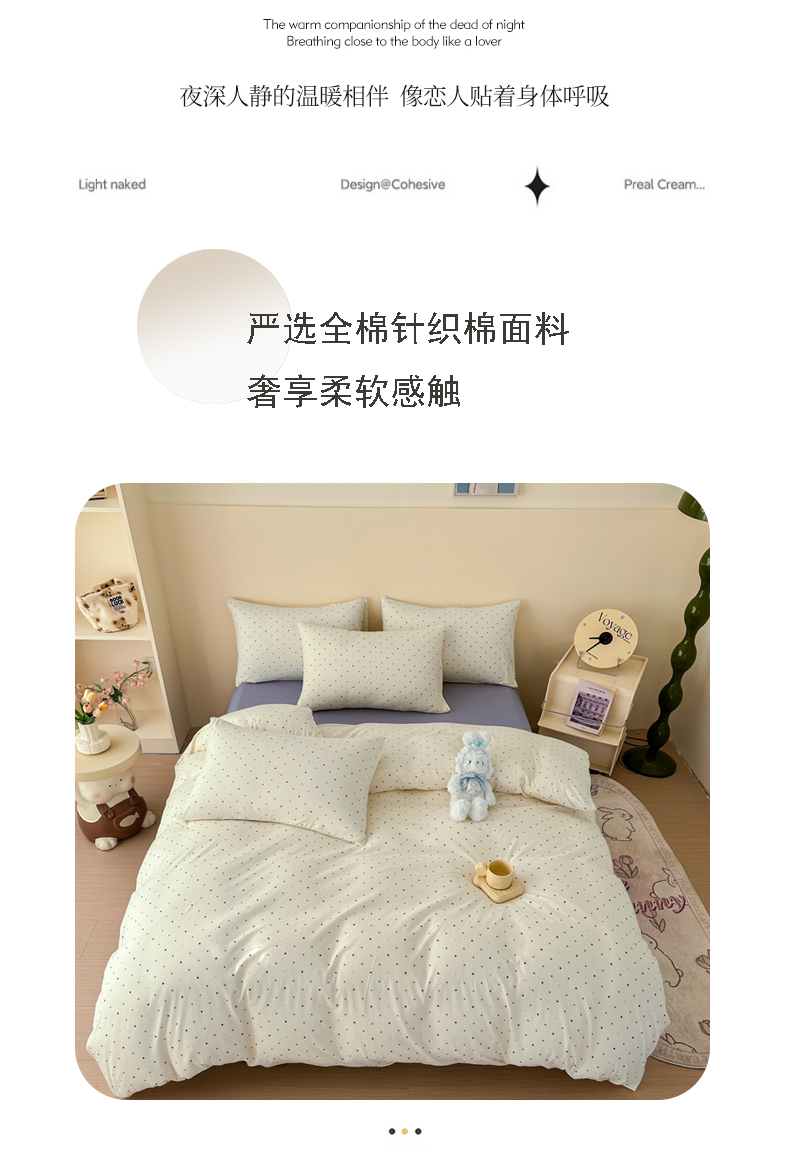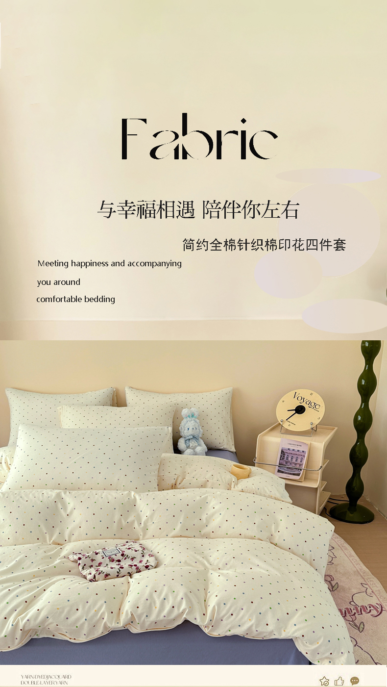 当前位置: 91家纺网 > 商品网购 > 床品套件 > 四件套 > 全棉普通四件套 > 爱思佳 2024新款全棉针织棉四件套 波点