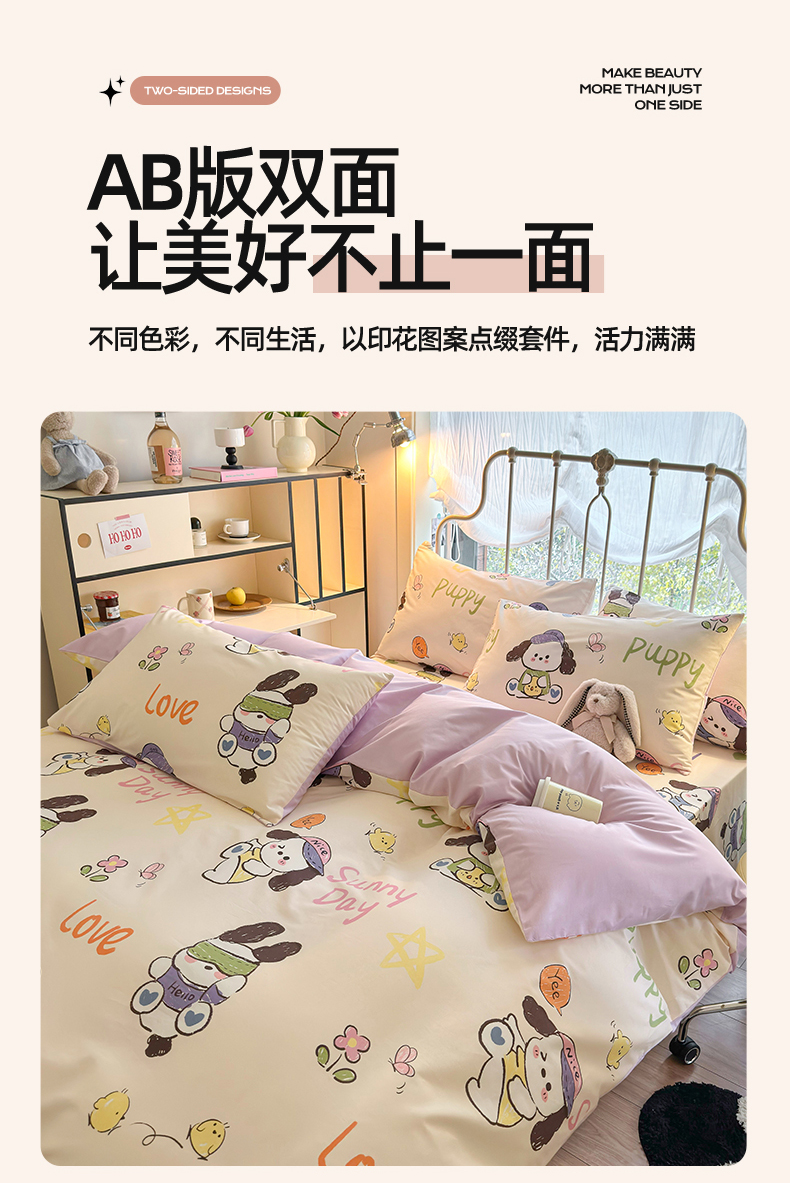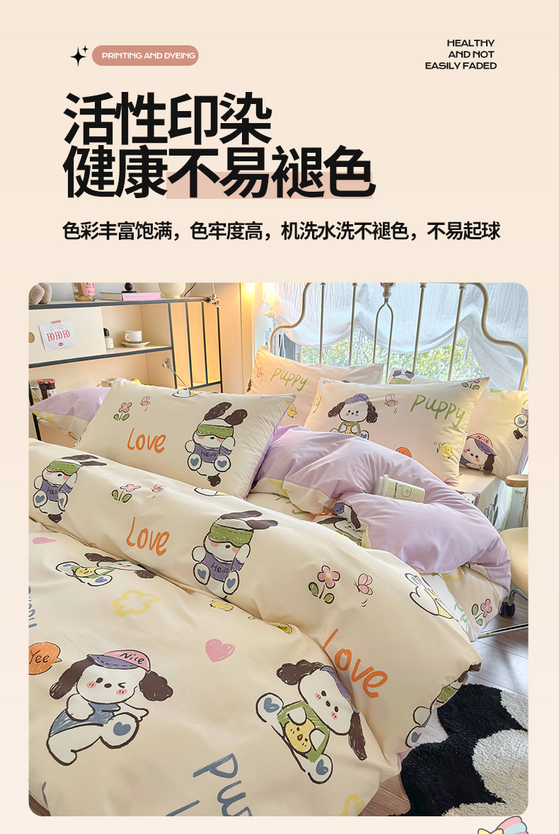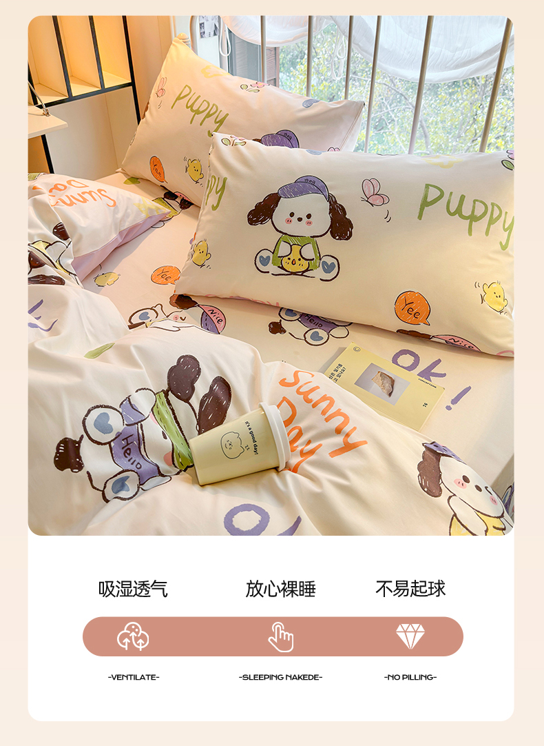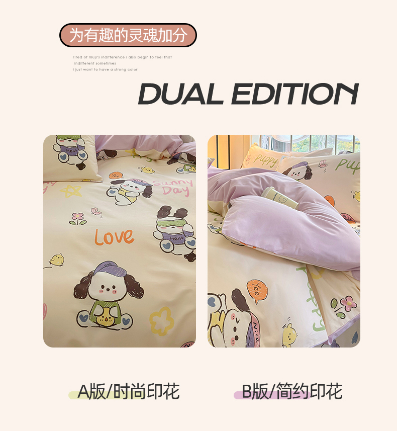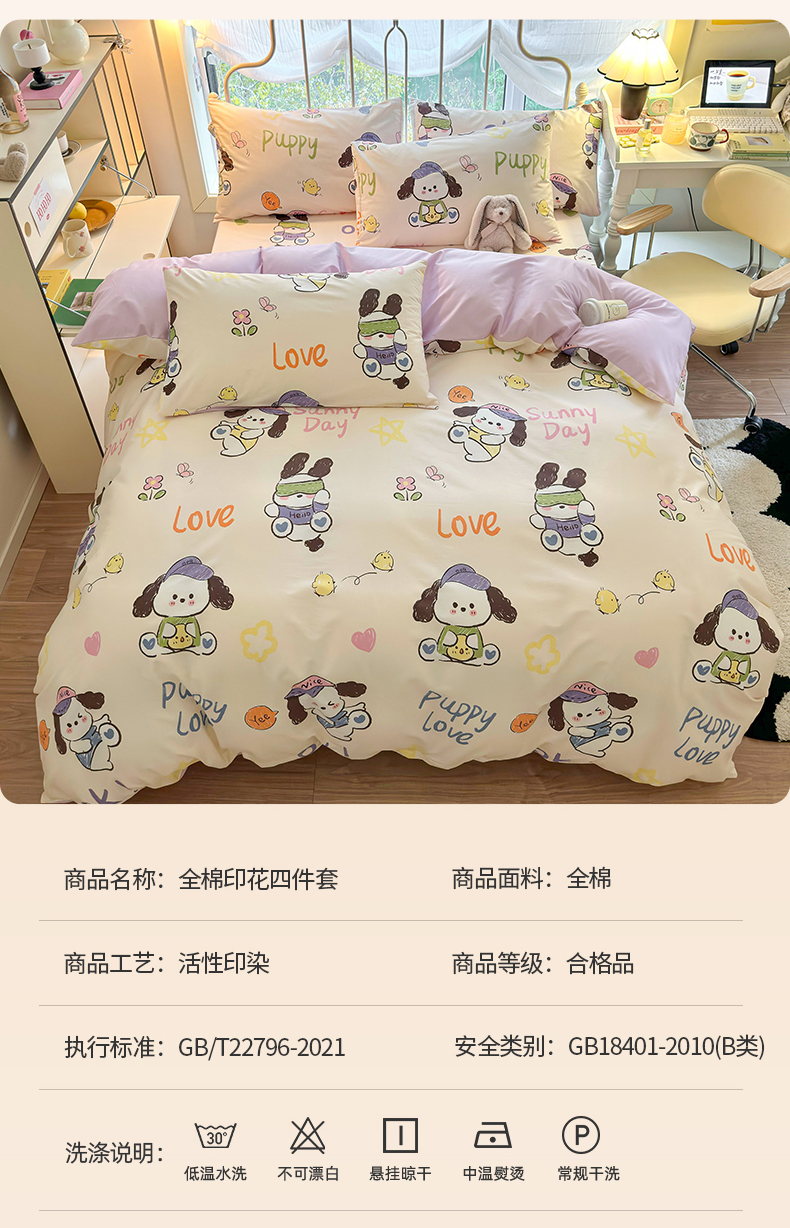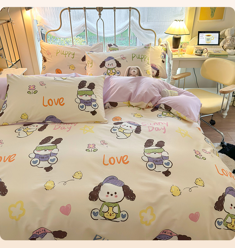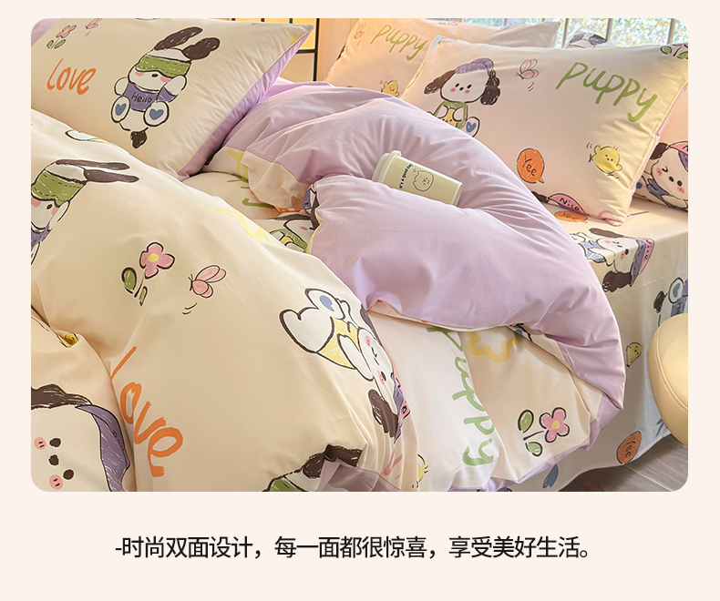 当前位置: 91家纺网 > 商品网购 > 床品套件 > 四件套 > 全棉普通四件套 > 名兮家居 2024新款卡通风系列全棉四件套 潮流小狗