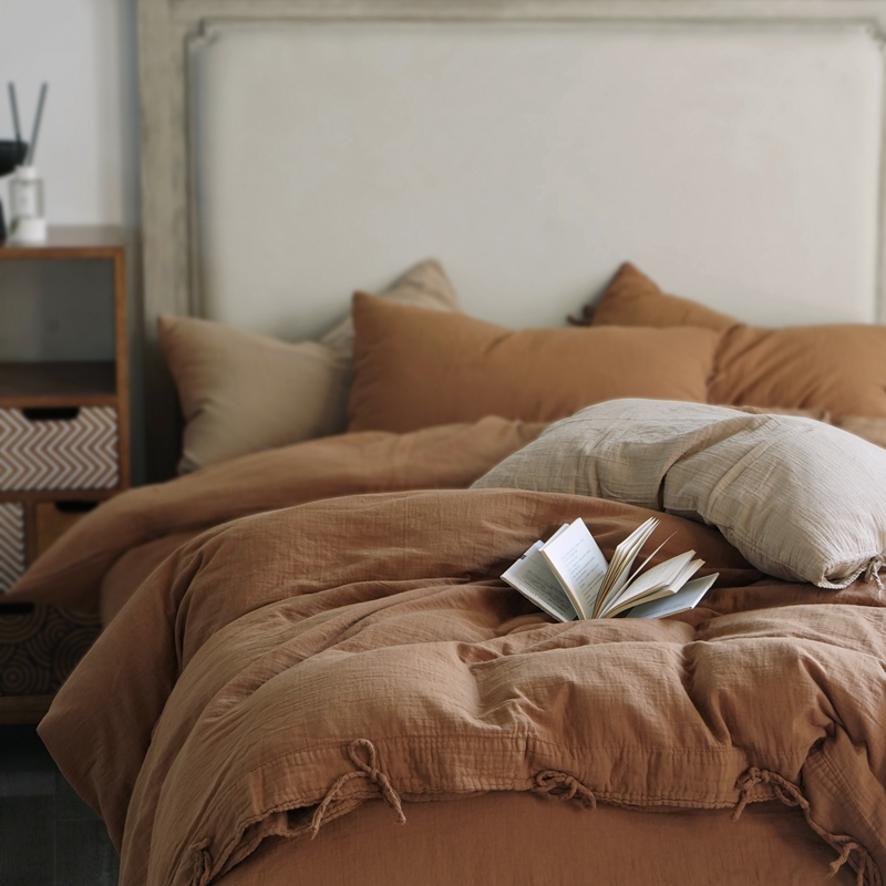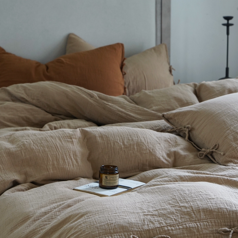 (总)子和家居 2024新款全棉美拉德皱皱纱成品染四件套