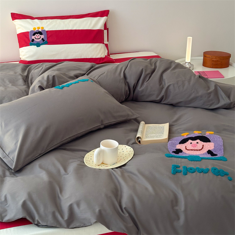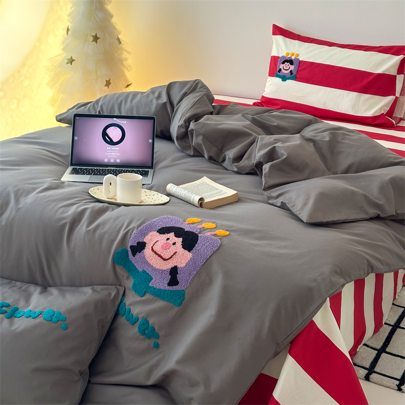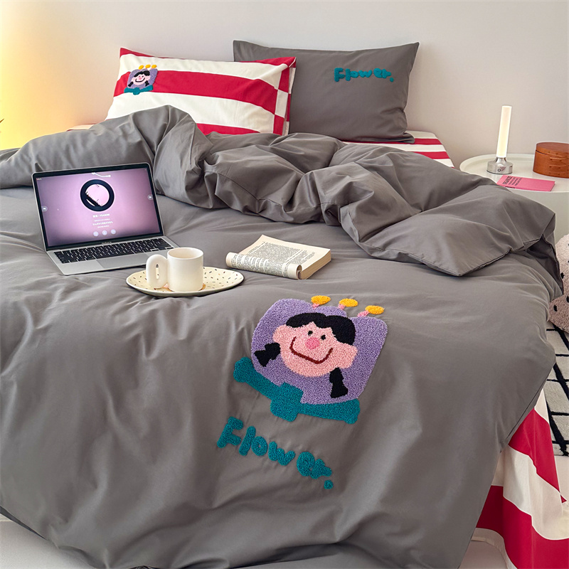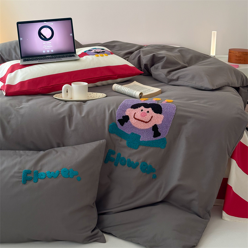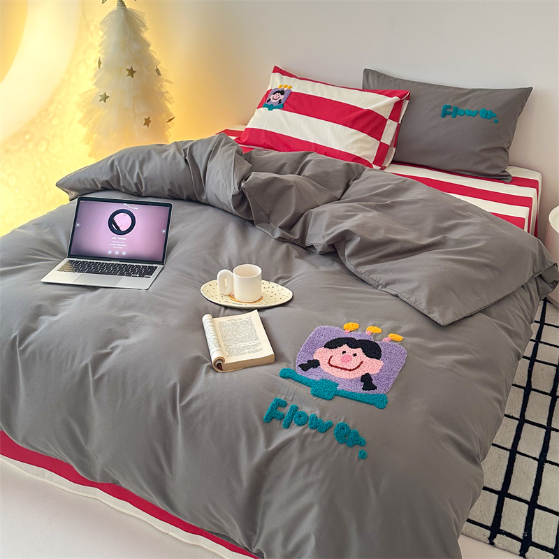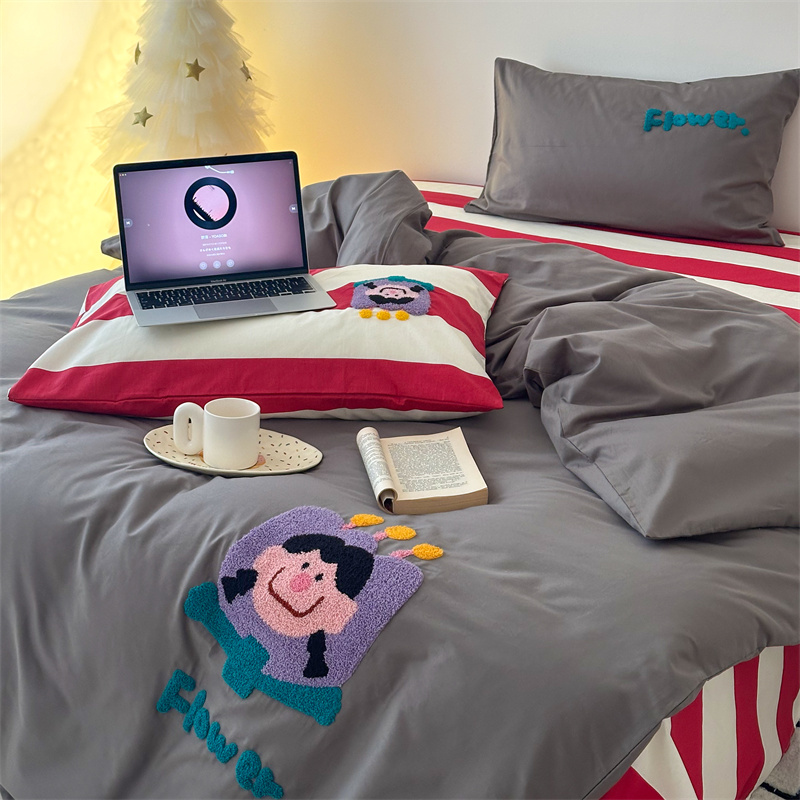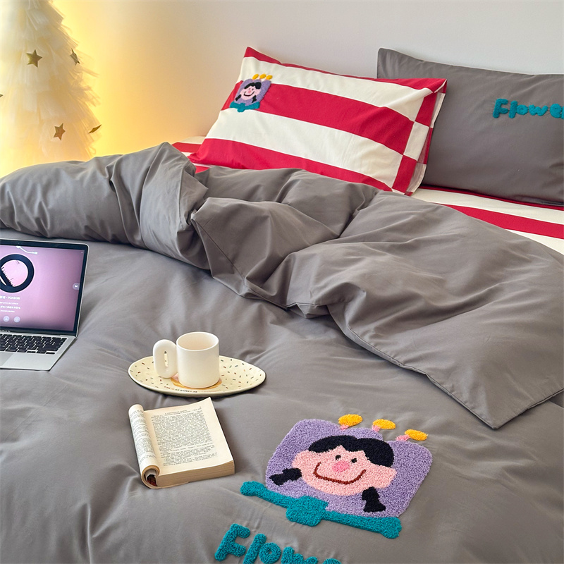 珺柔家纺 2024新款13372全棉印加绣毛巾绣四件套系列 可爱女孩