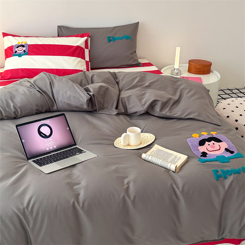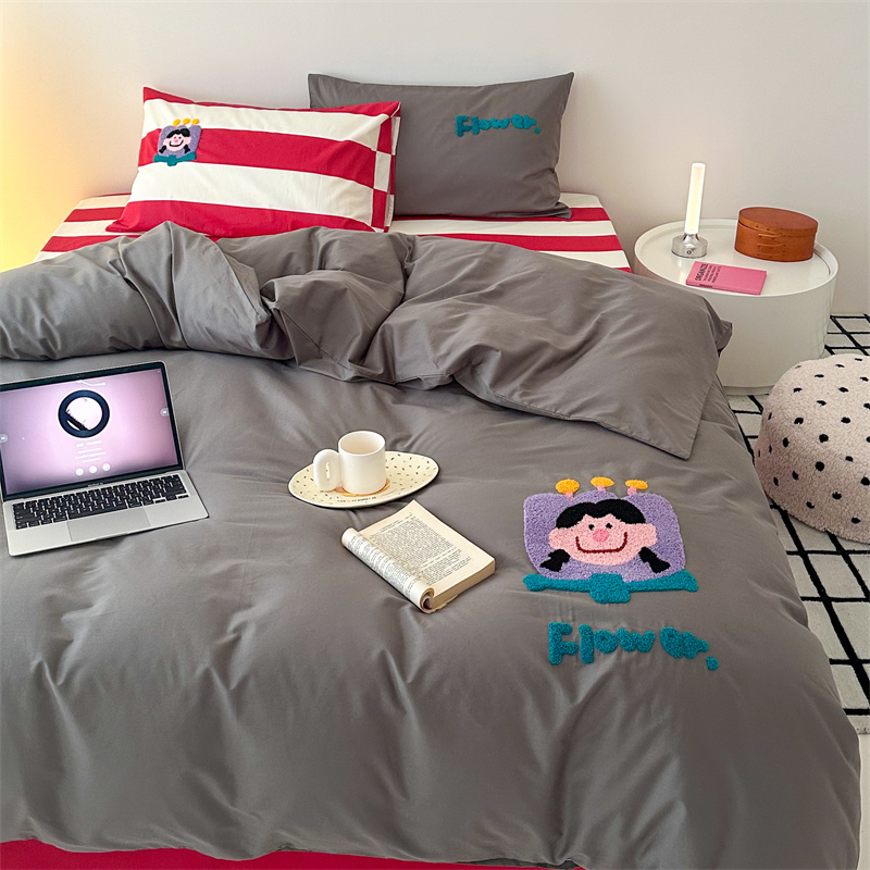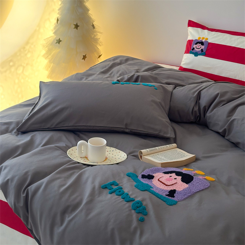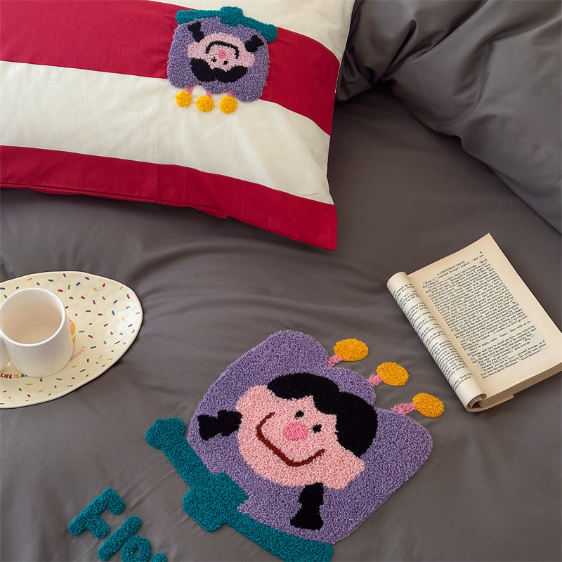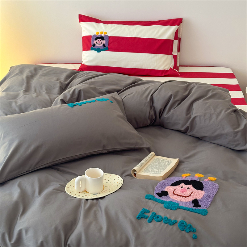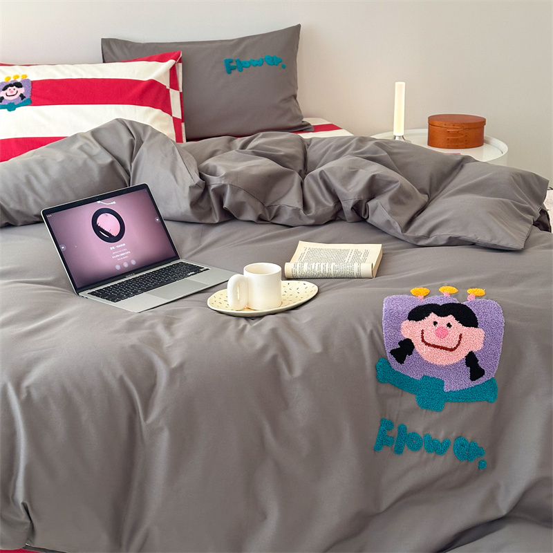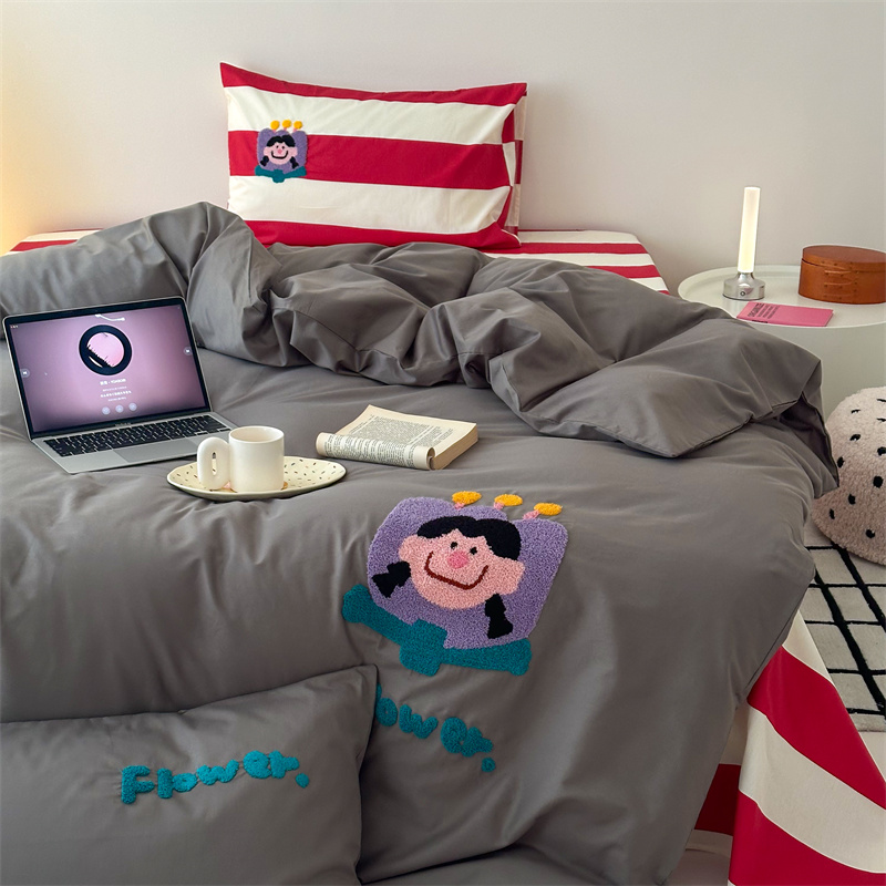 珺柔家纺 2024新款13372全棉印加绣毛巾绣四件套系列 可爱女孩