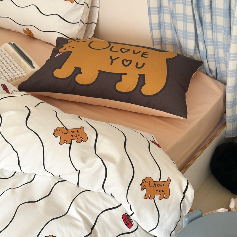(总)桃喜 2025新款牛奶绒线条系列四件套 【会员-5】,黑白小狗,咖色线条狗勾