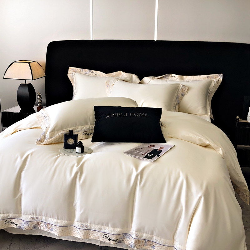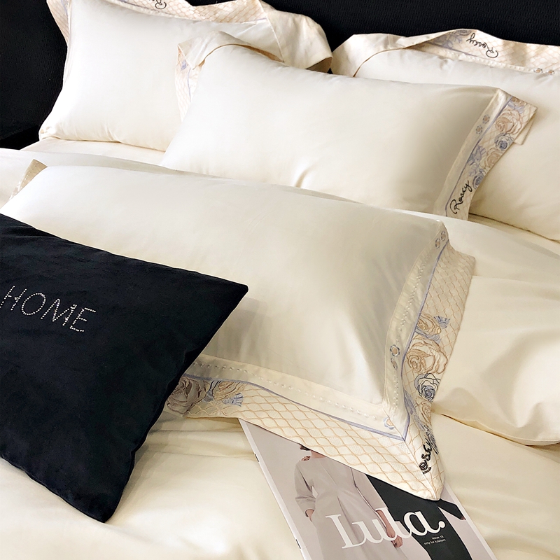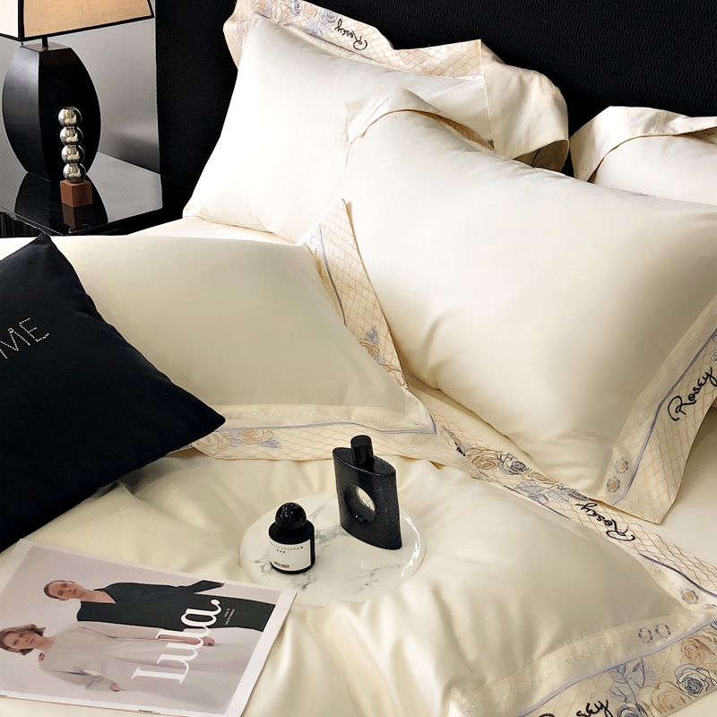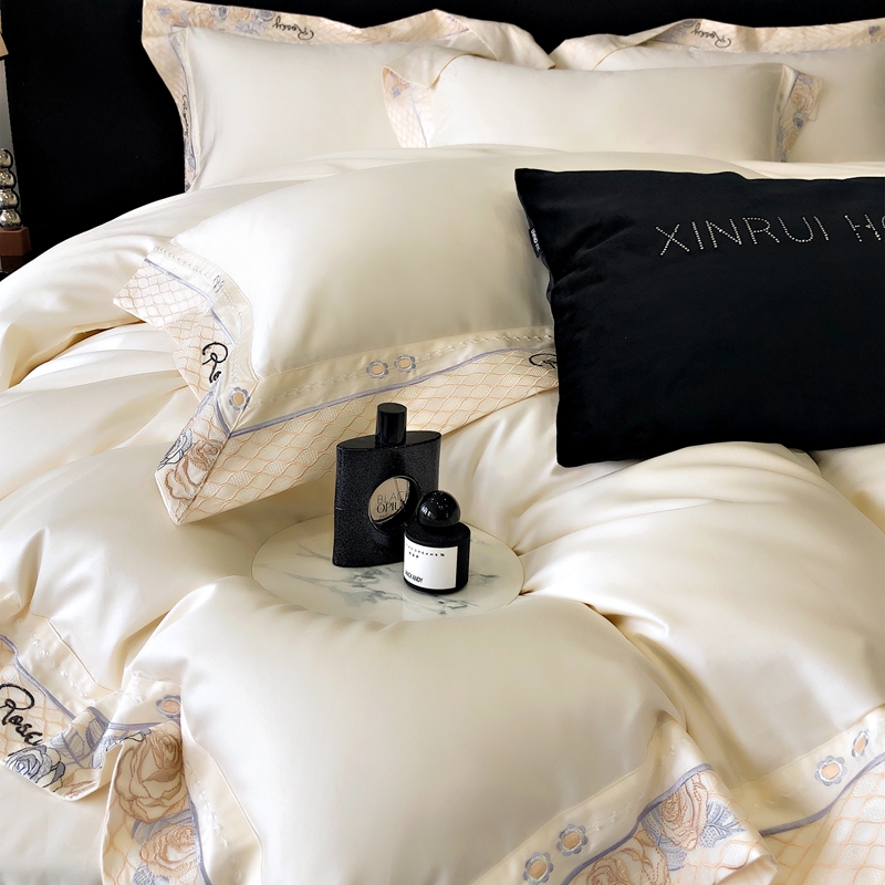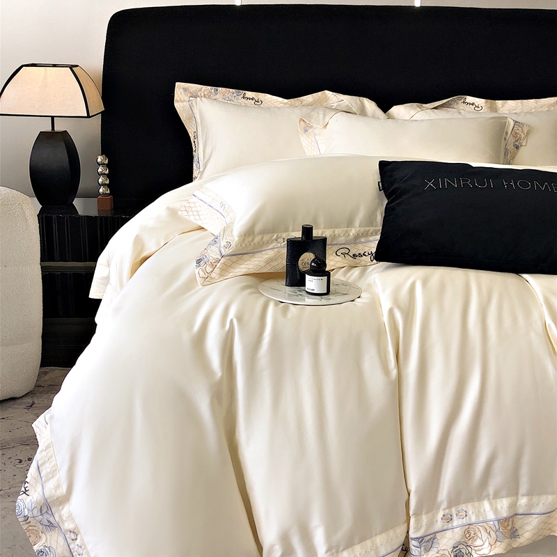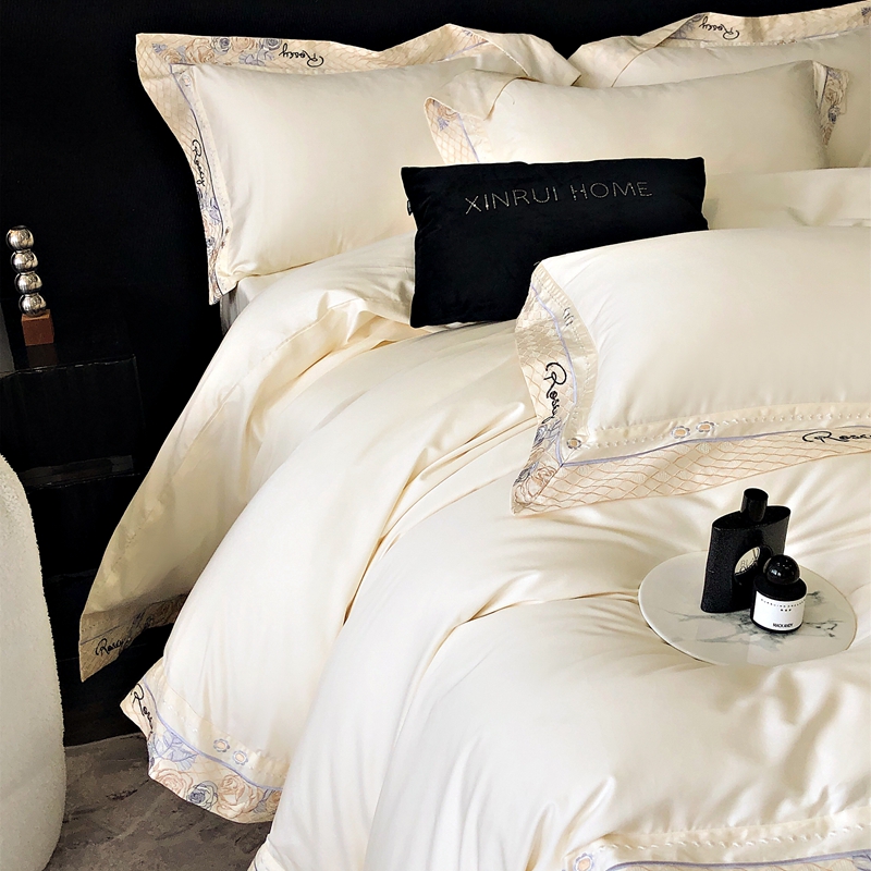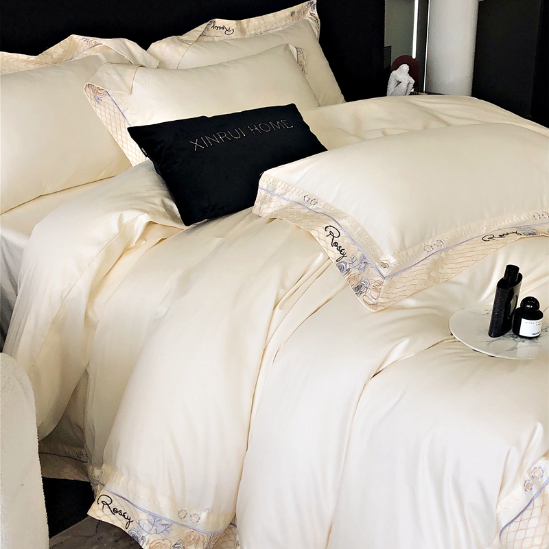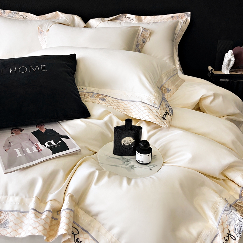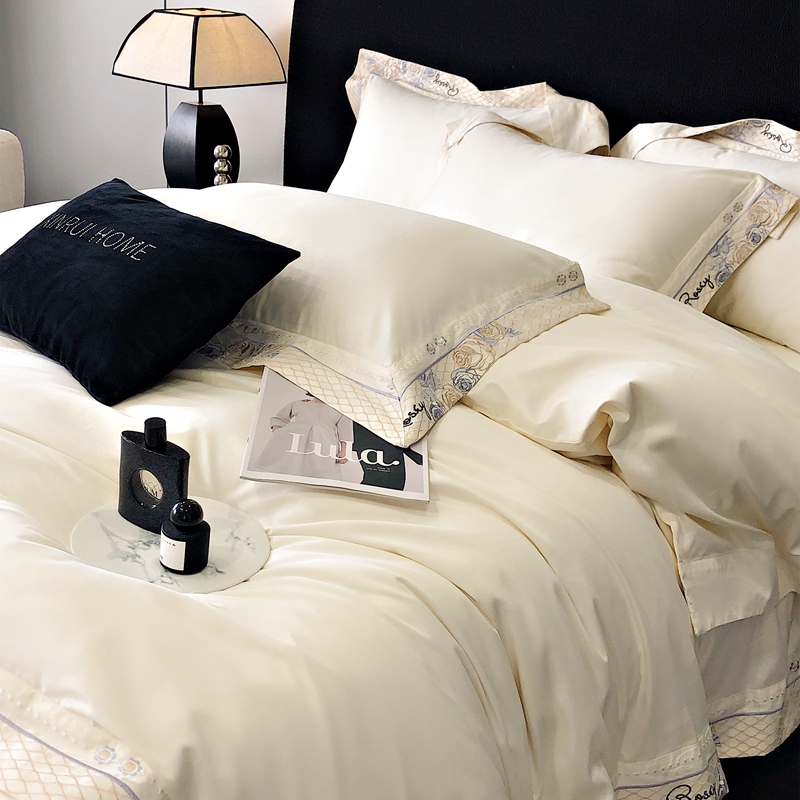馨蕊家居 2024新款100支进口长绒棉全棉四件套-欧若拉 欧若拉-月光白