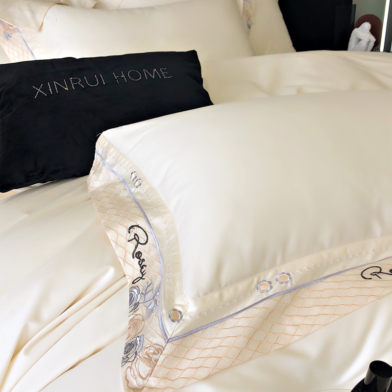 商品名称:馨蕊家居 2024新款100支进口长绒棉全棉四件套-欧若拉 欧若拉-月光白