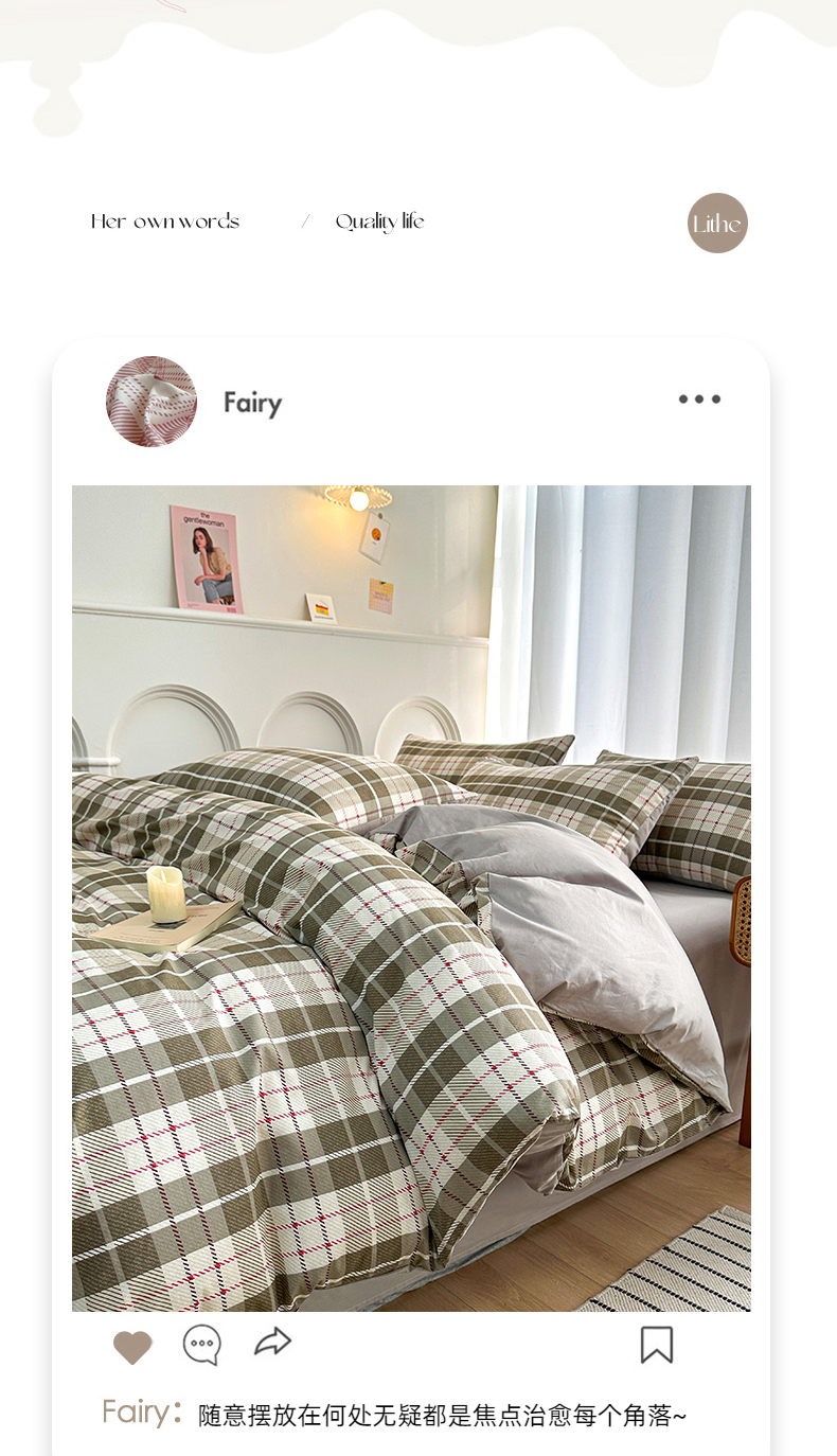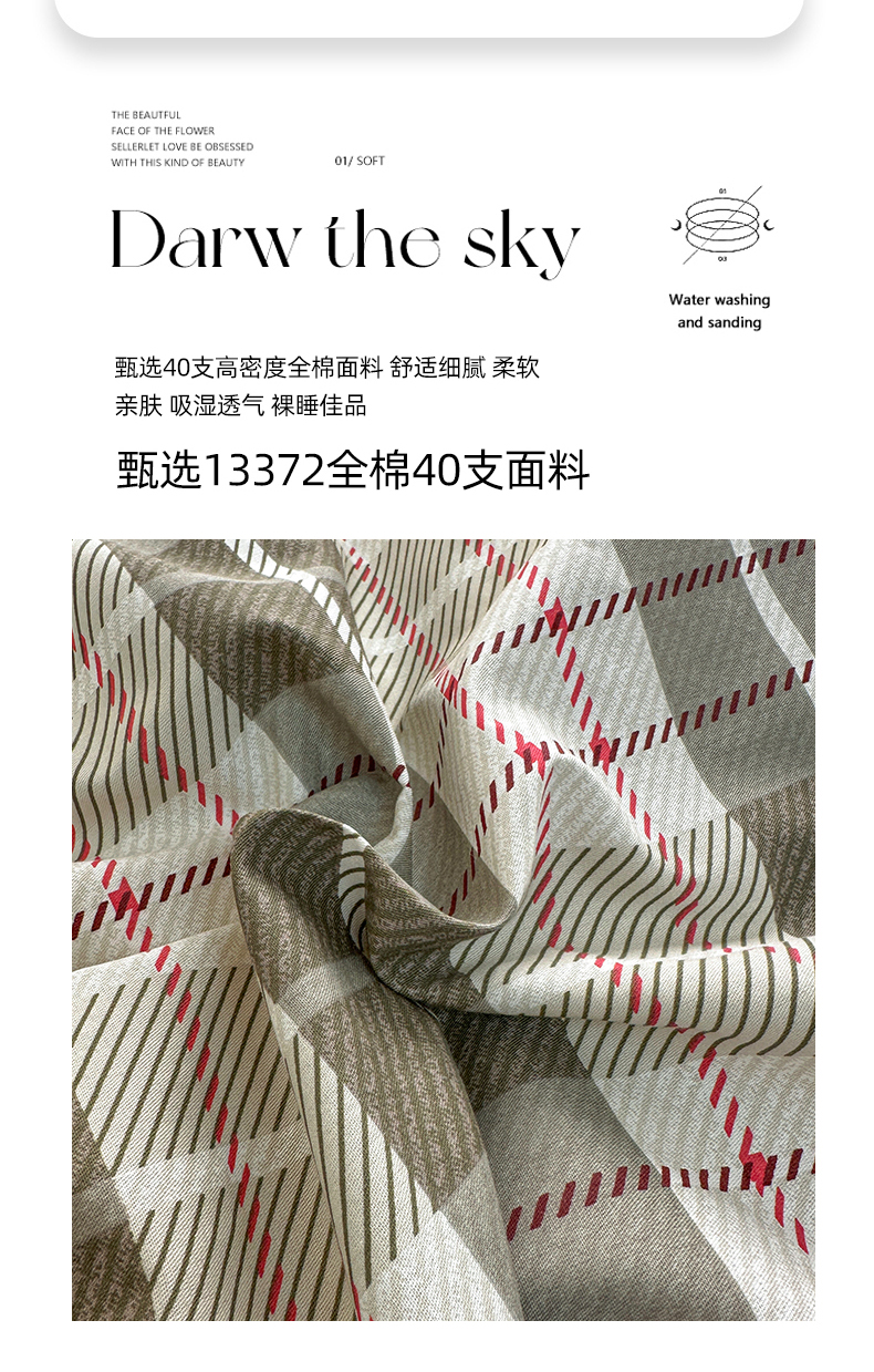 商品名称:潮邦创意家居 2025新款全棉13070多风格纯棉四件套 温情格语