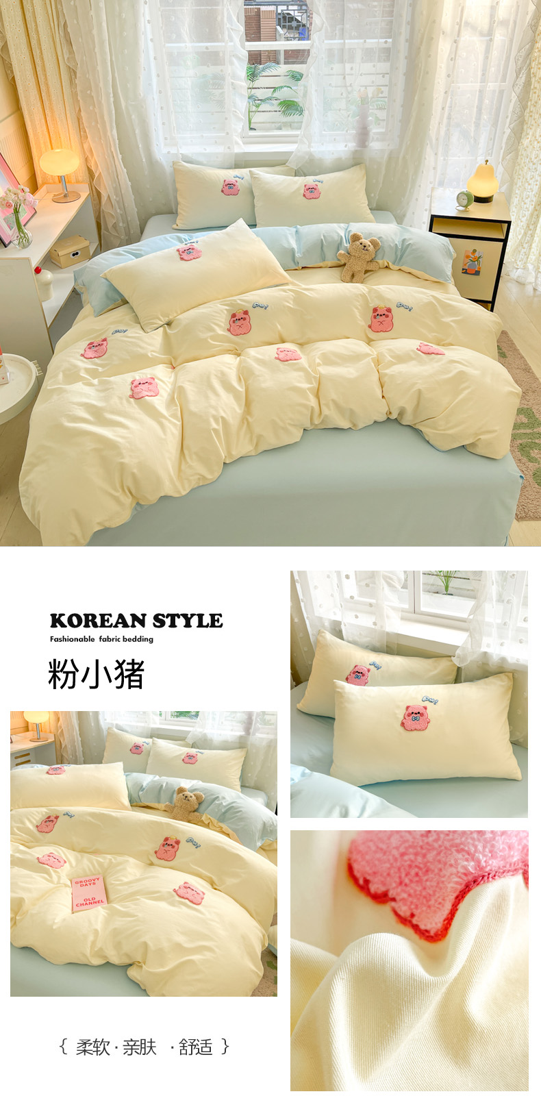 商品名称:丽涵家纺 2025新品全棉纯色毛巾绣可爱卡通四件套 散版-粉小猪