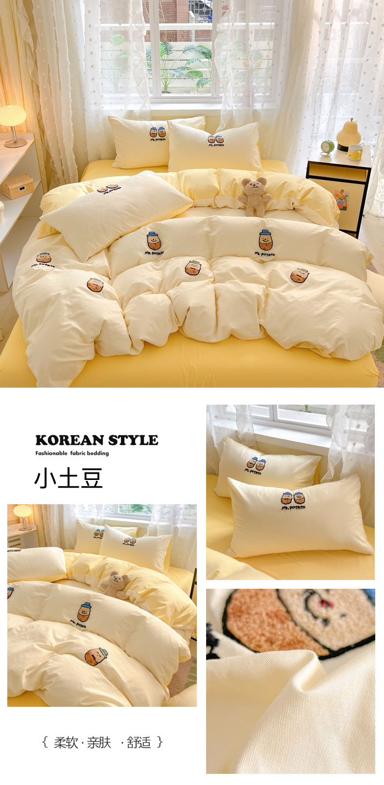 商品名称:丽涵家纺 2025新品全棉纯色毛巾绣可爱卡通四件套 散版-小土豆