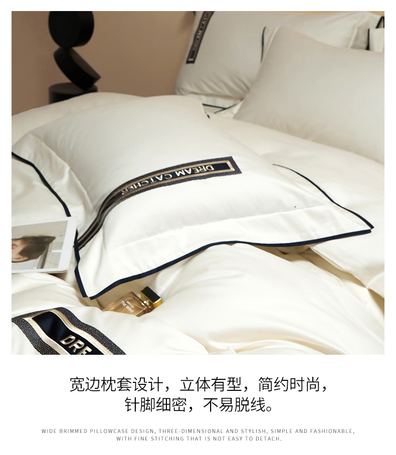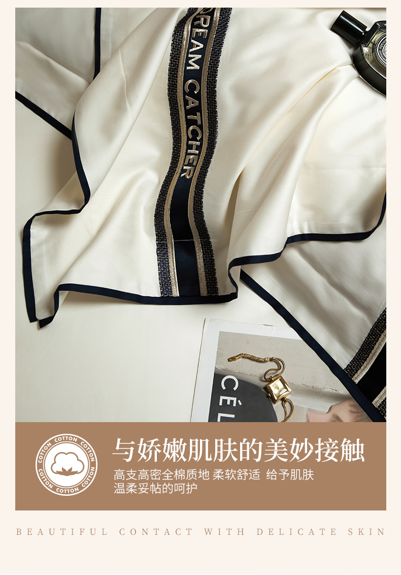 商品名称:(总)爱缦 2024新款100支澳棉CR工艺极简轻奢刺绣四件套-茹伊 风格一