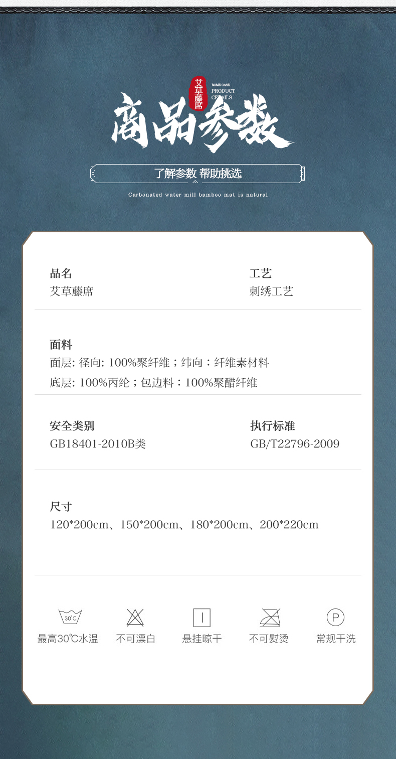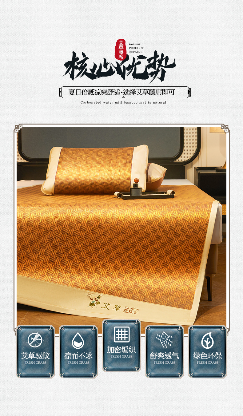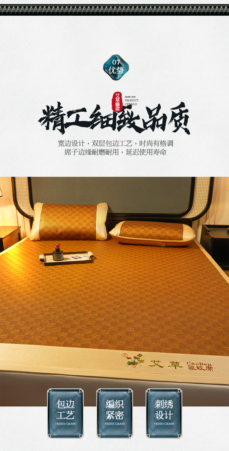 商品名称:(总)大元 2026新款凉席刺绣艾草藤席