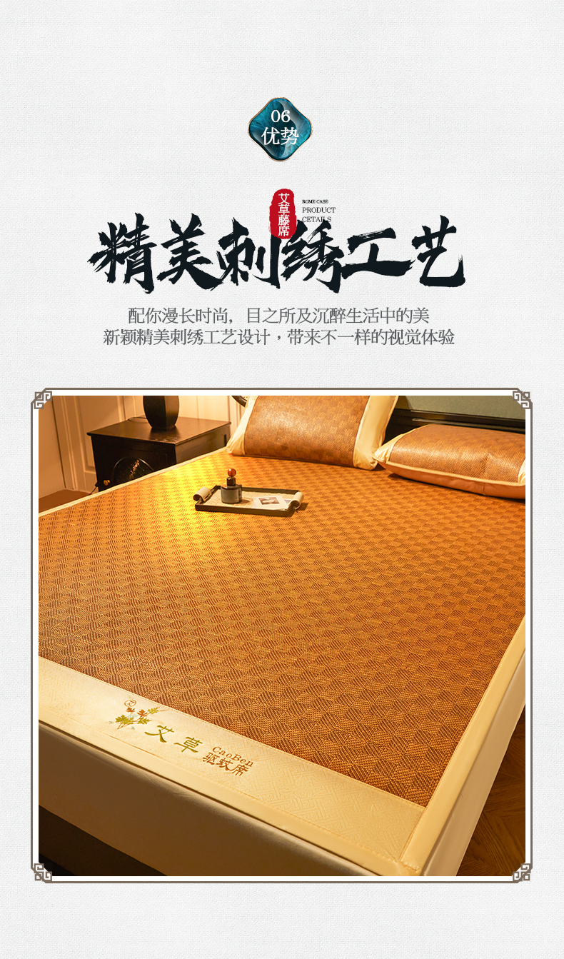(总)大元 2026新款凉席刺绣艾草藤席