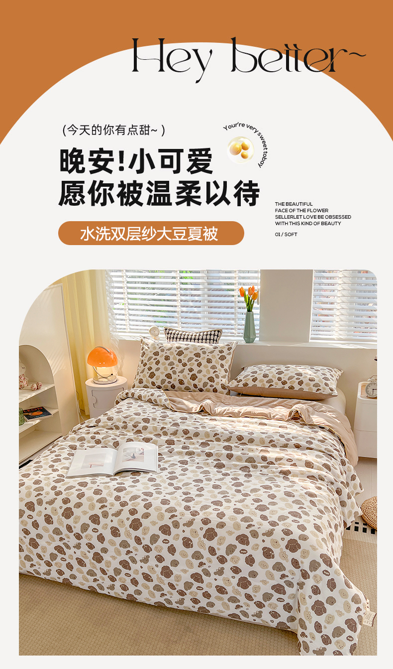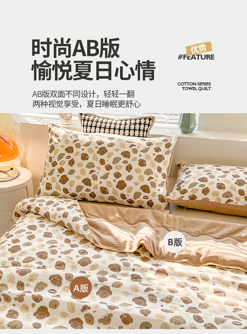 商品名称:艺菲阁家纺 2024新款大豆蛋白水洗双层纱夏被 萌萌狗