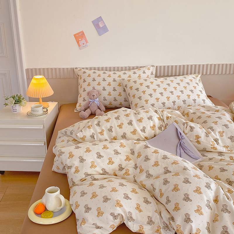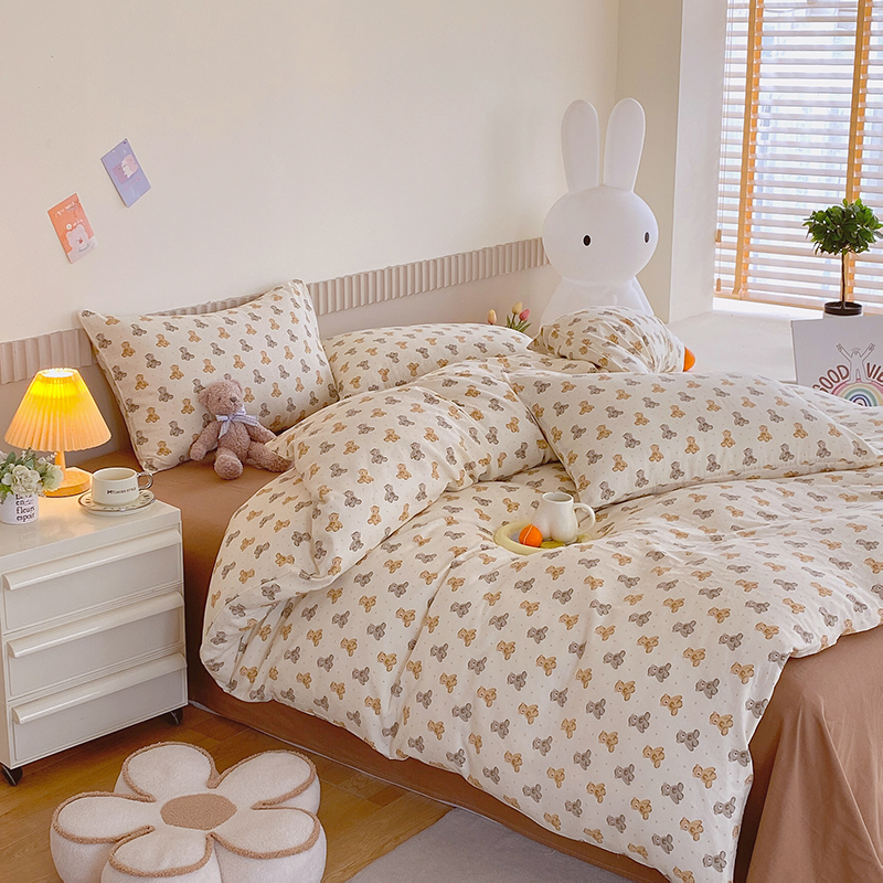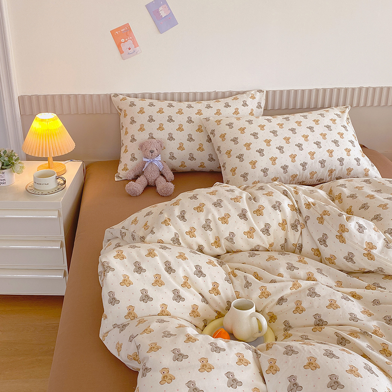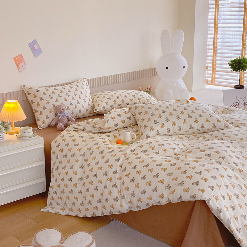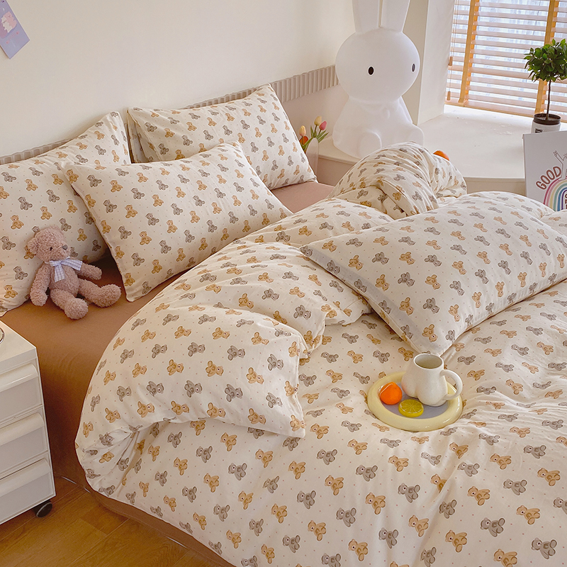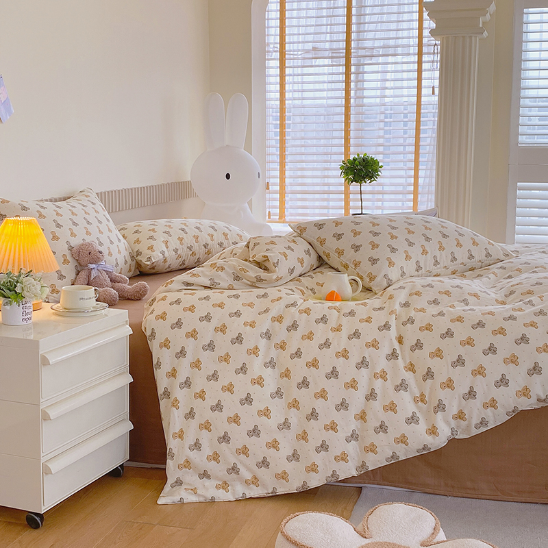 于果 2024新款全棉双层纱四件套 波点玩偶熊