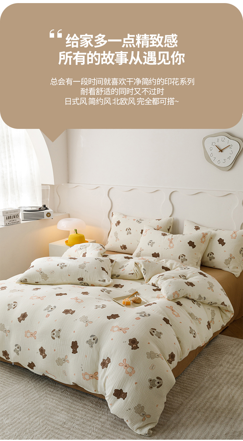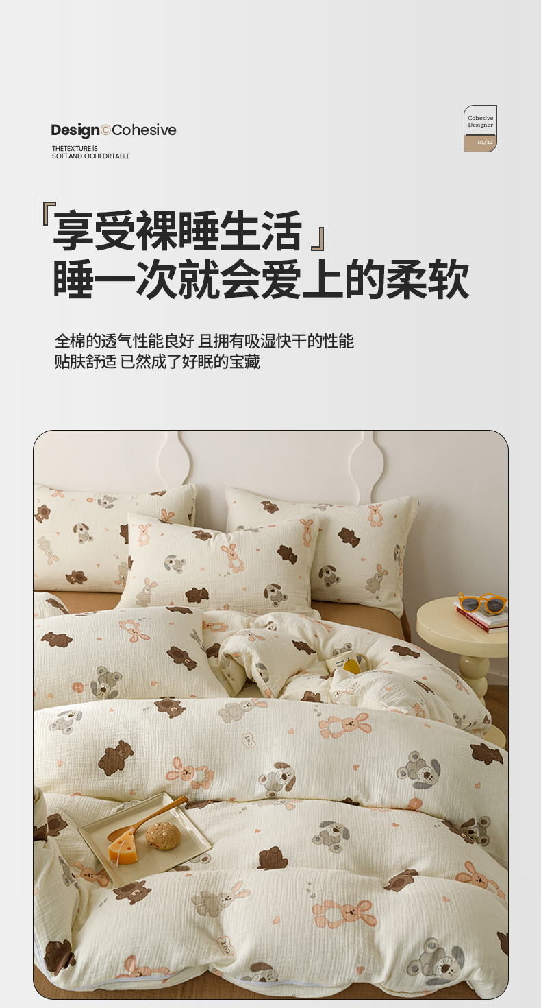 商品名称:(总)蜜柚 2024新款全棉双层皱皱纱四件套